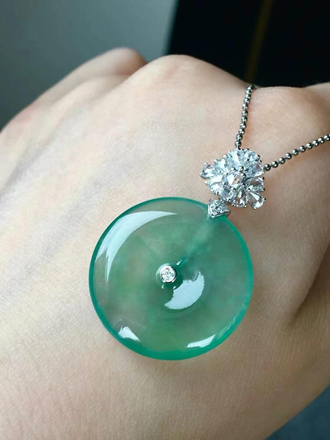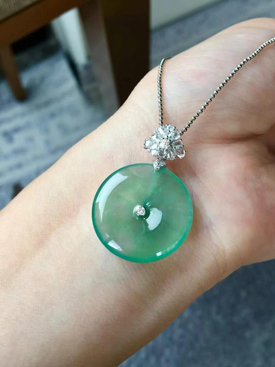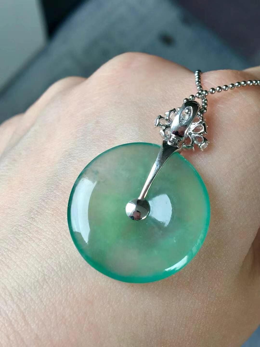 • 翡翠平安扣吊墜 (22mm直徑),天然翡翠A玉, 緬甸玉, Jade, Jadeite