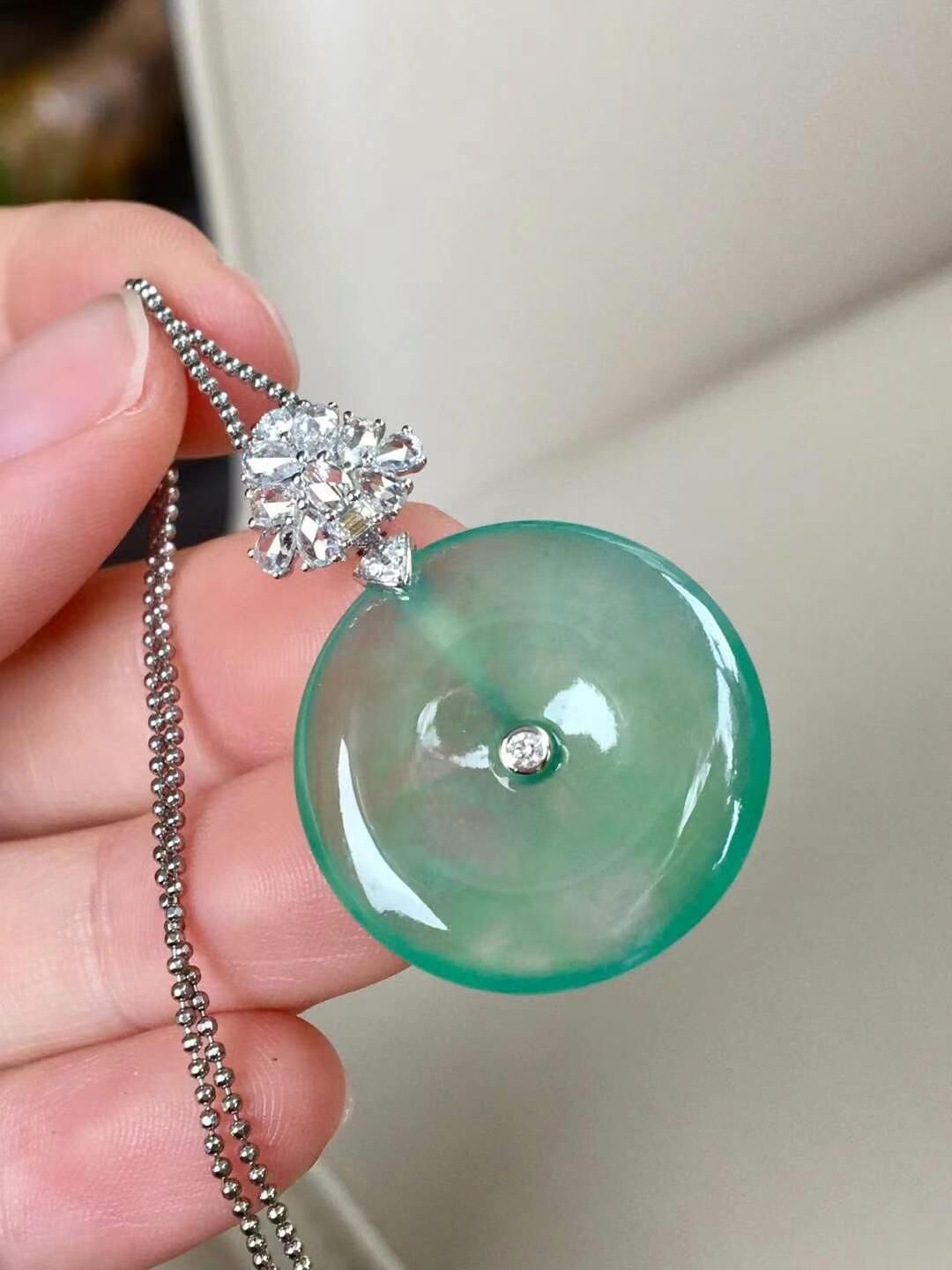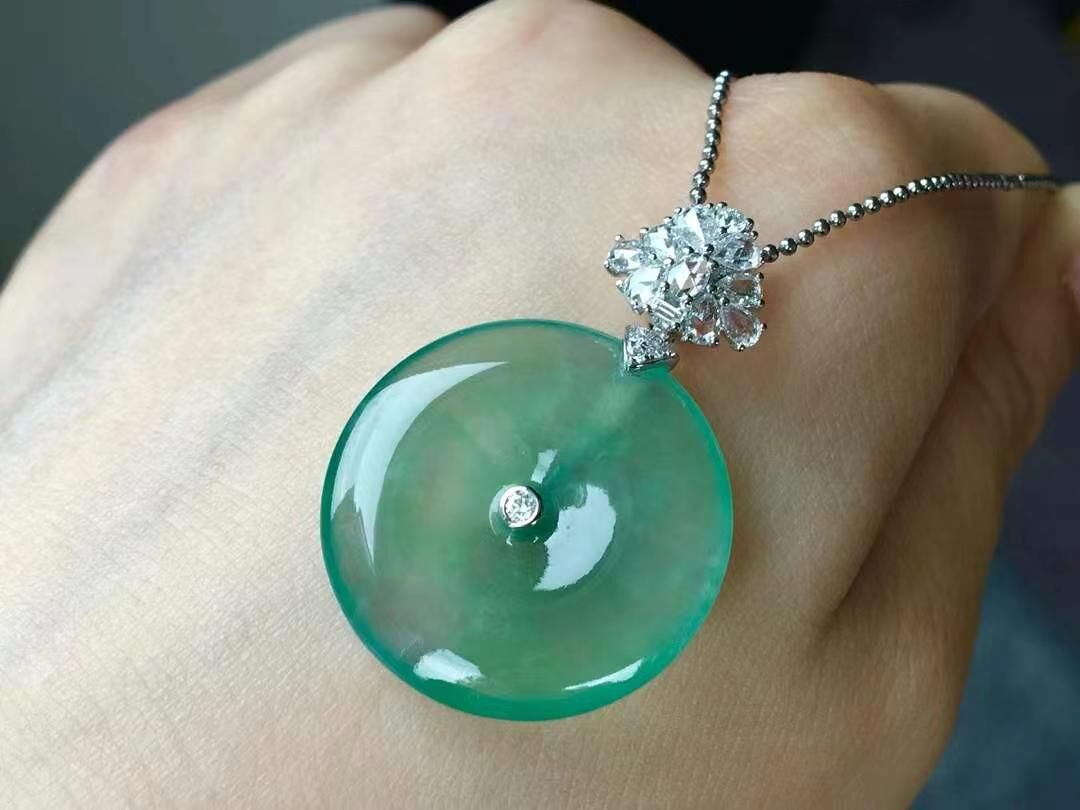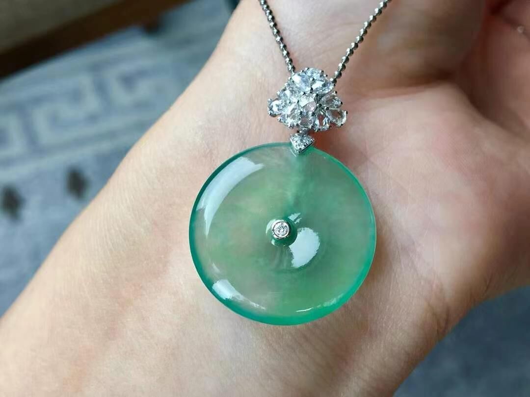• 翡翠平安扣吊墜 (22mm直徑),天然翡翠A玉, 緬甸玉, Jade, Jadeite