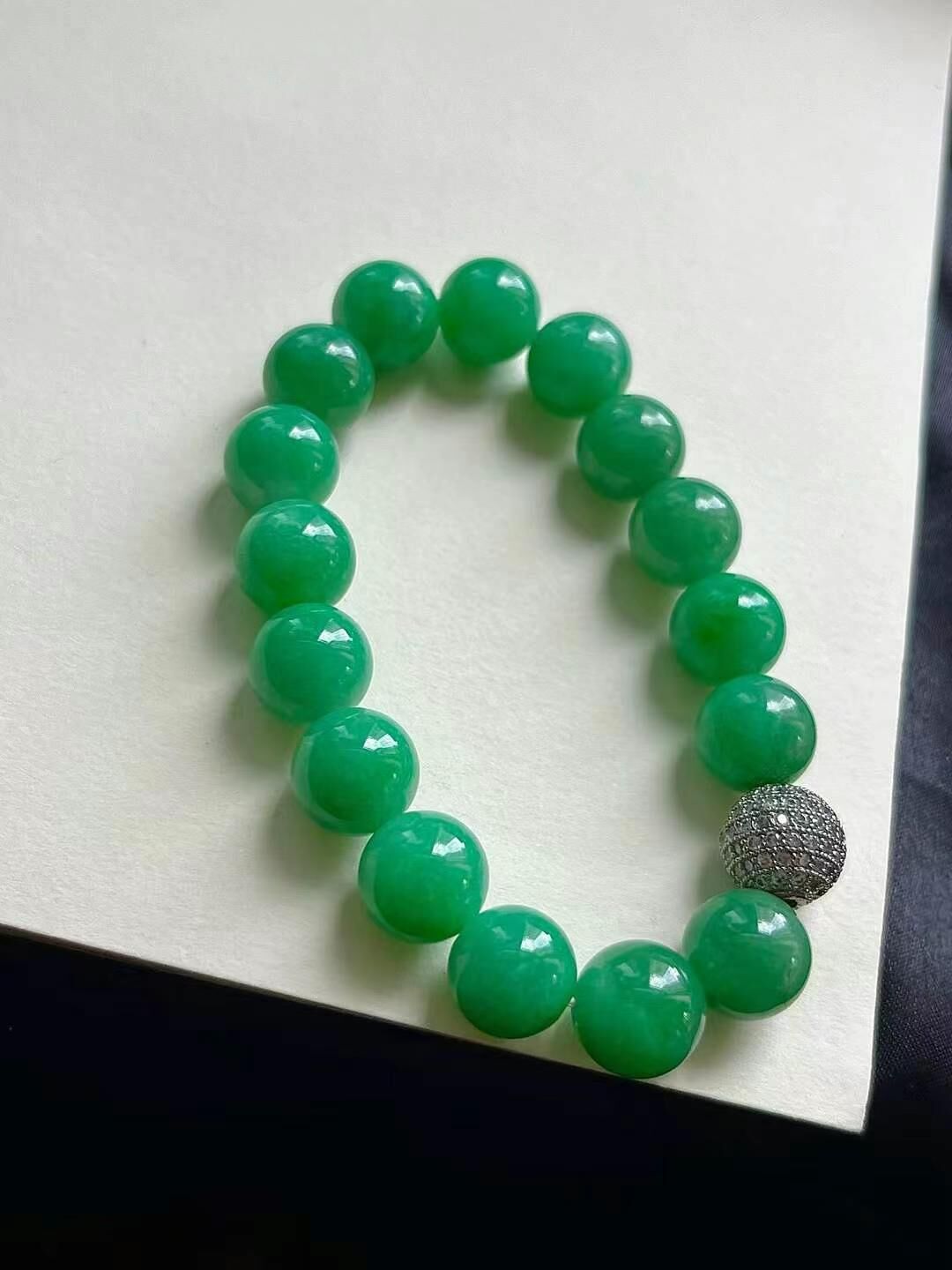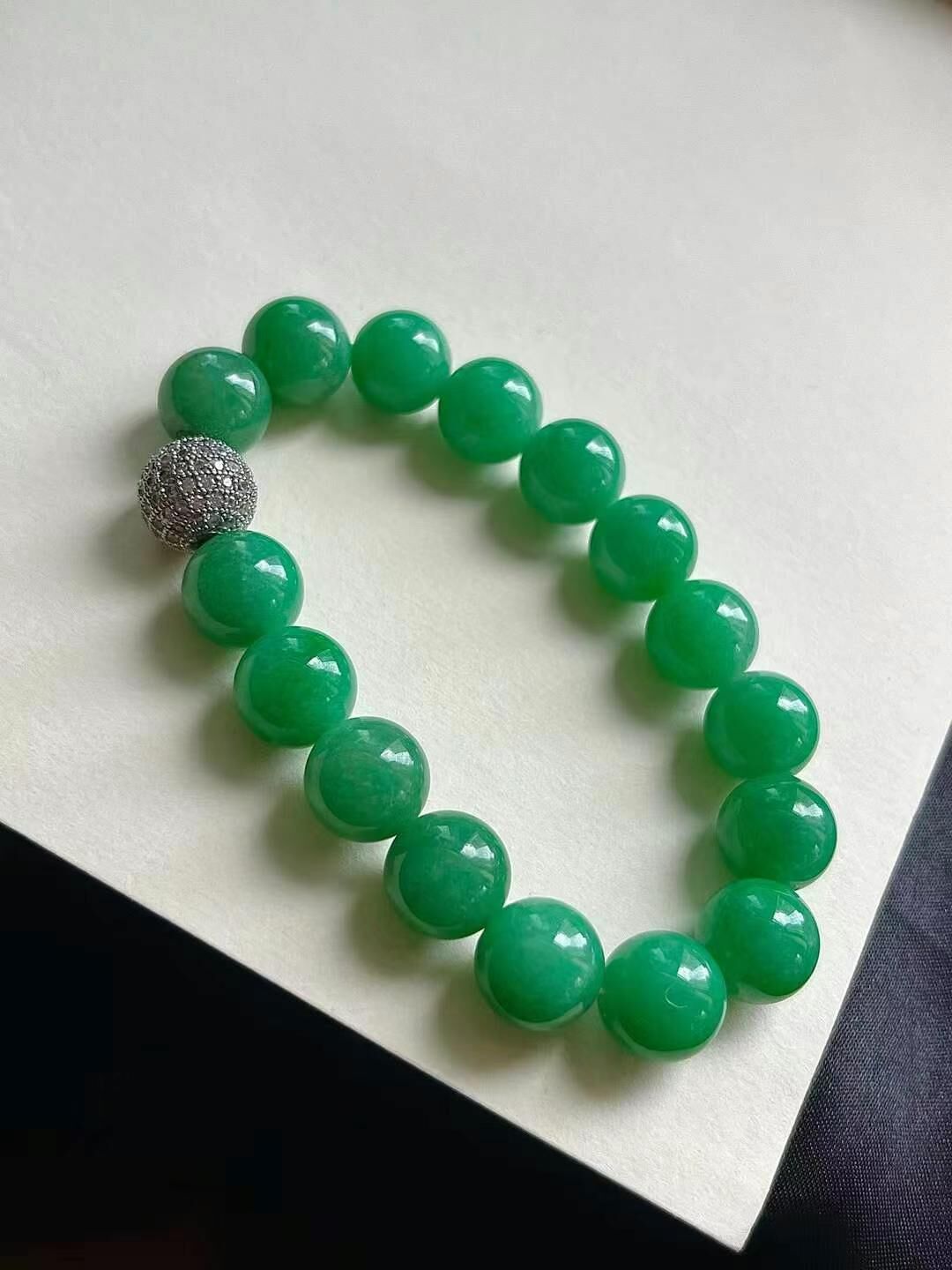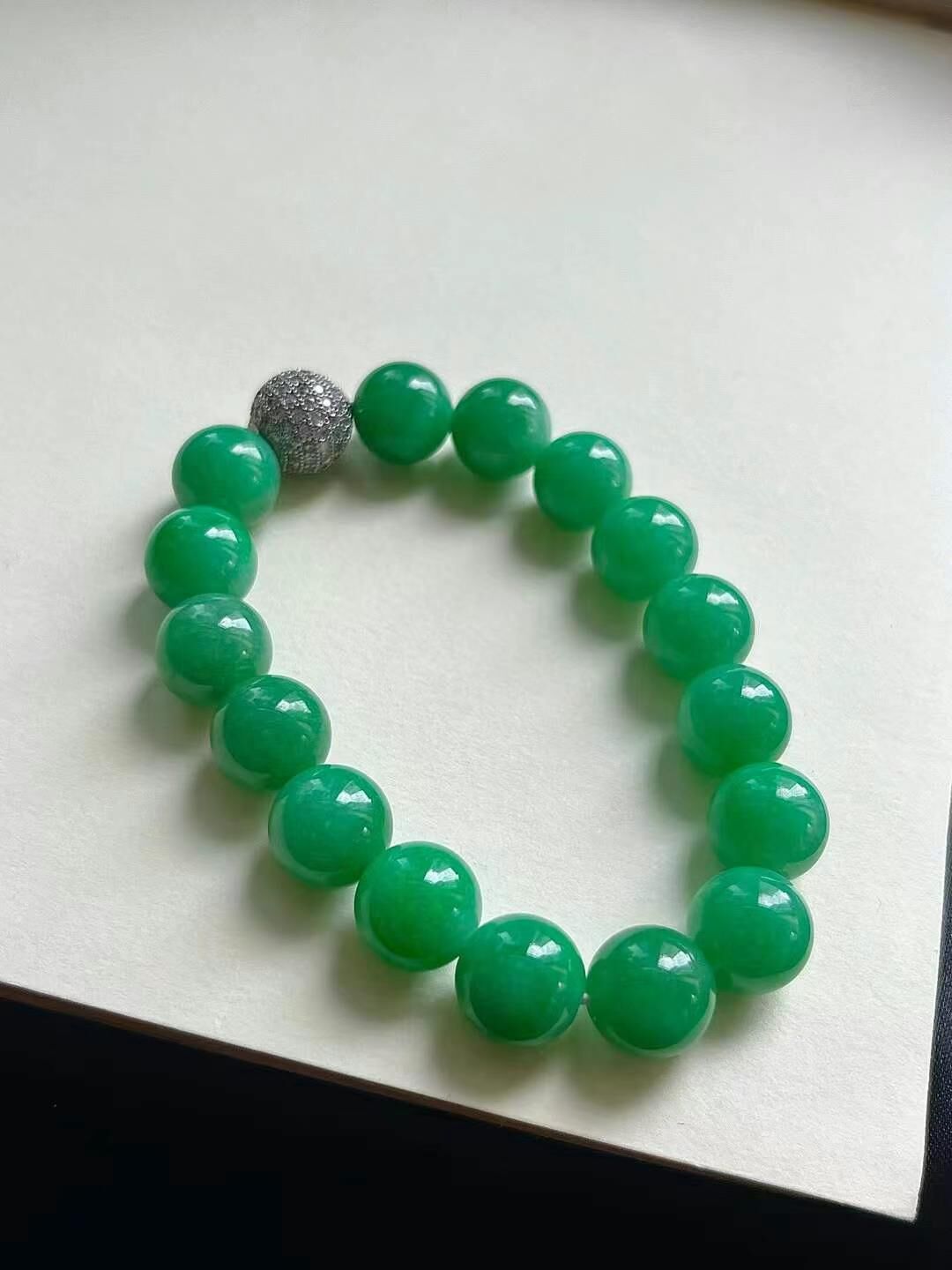 • 翡翠珠子手串 (11.9mm直徑),天然翡翠A玉, 緬甸玉, Jade, Jadeite