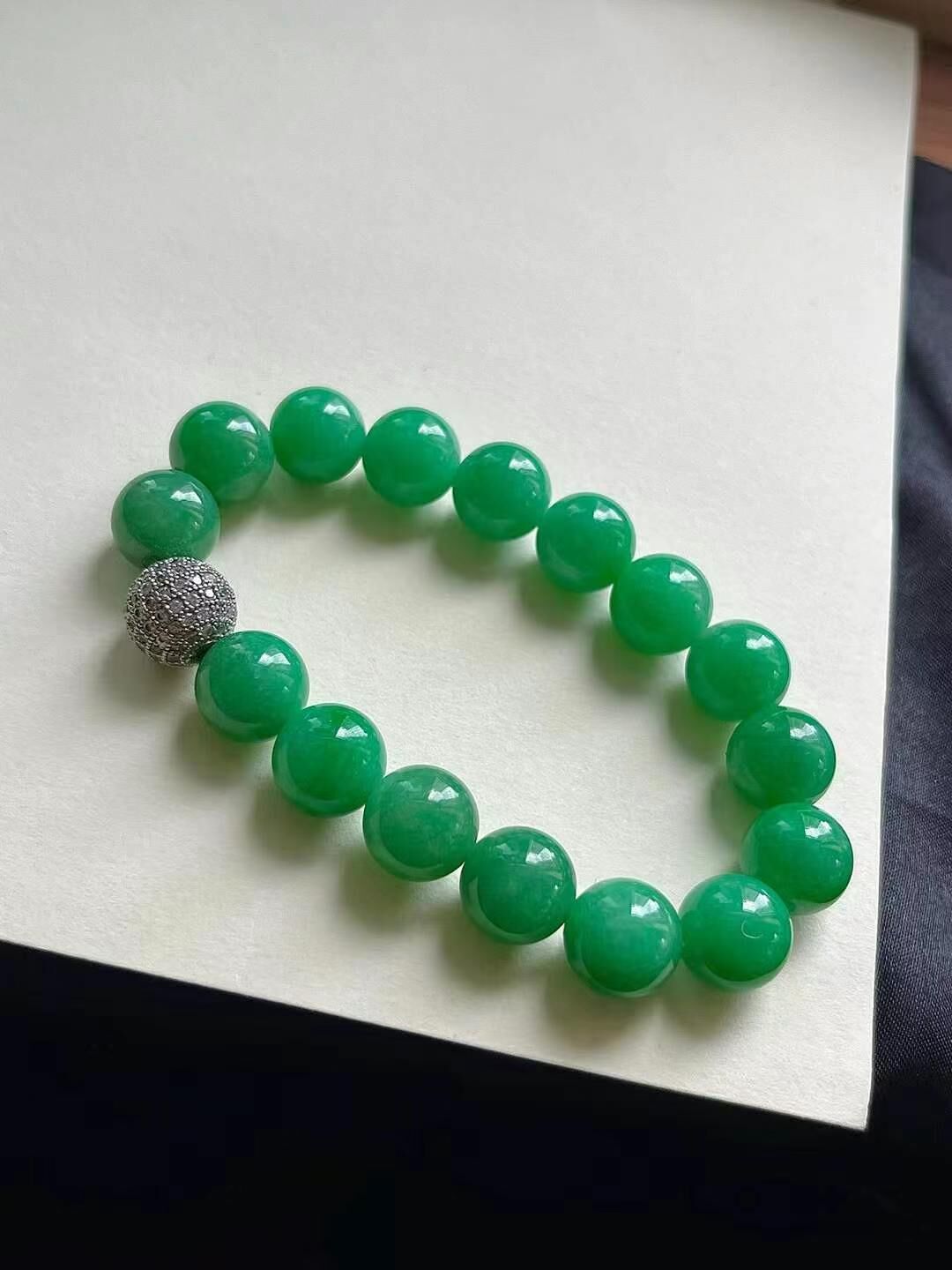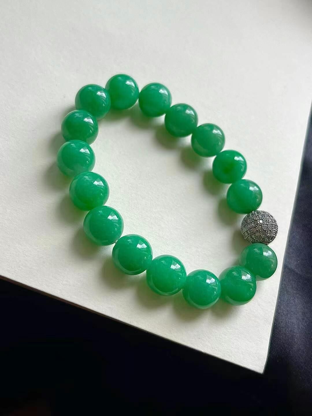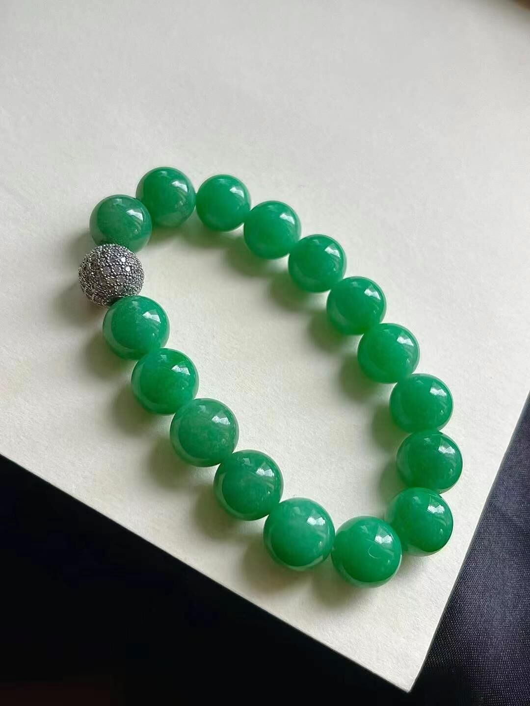 • 翡翠珠子手串 (11.9mm直徑),天然翡翠A玉, 緬甸玉, Jade, Jadeite
