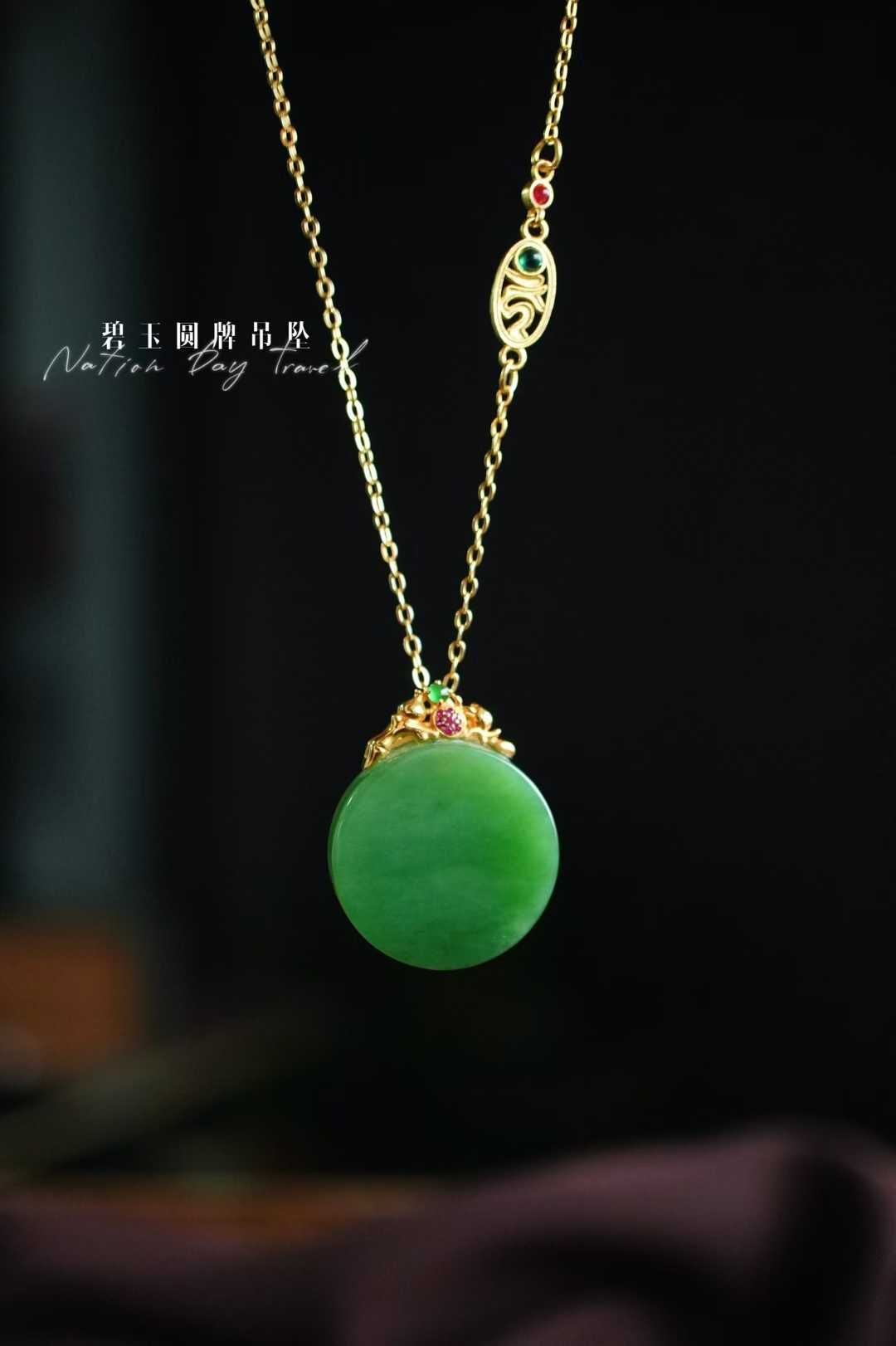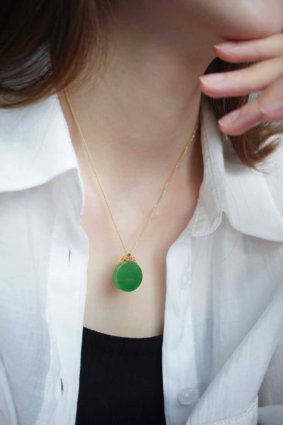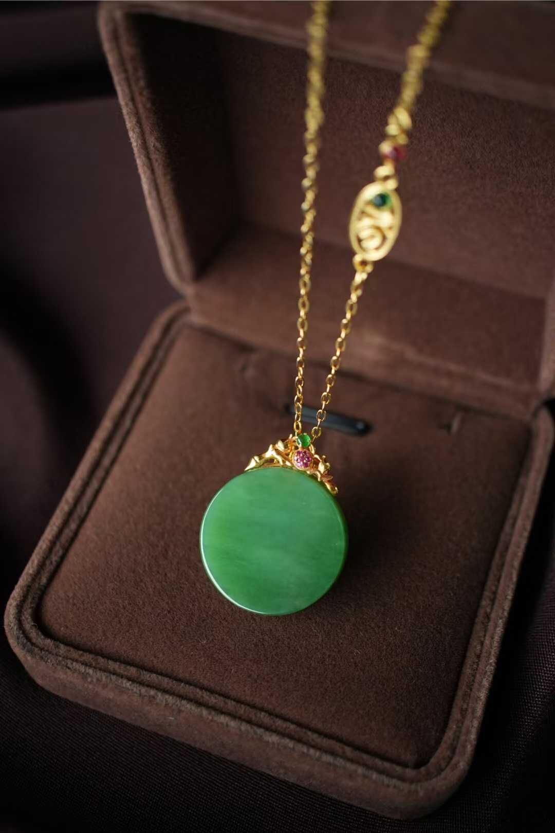 519424 和田玉碧玉濃郁果綠圓牌吊墜
