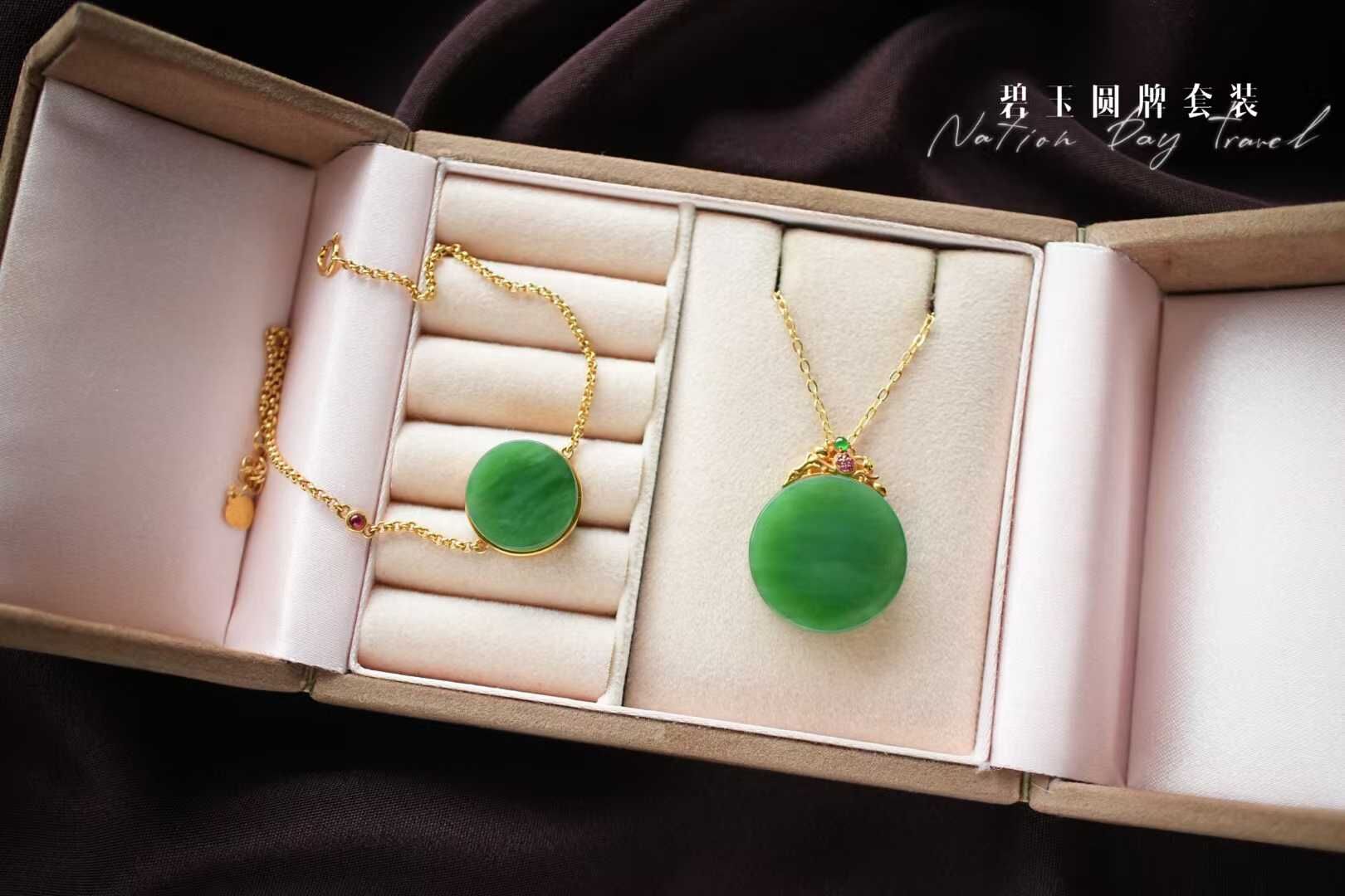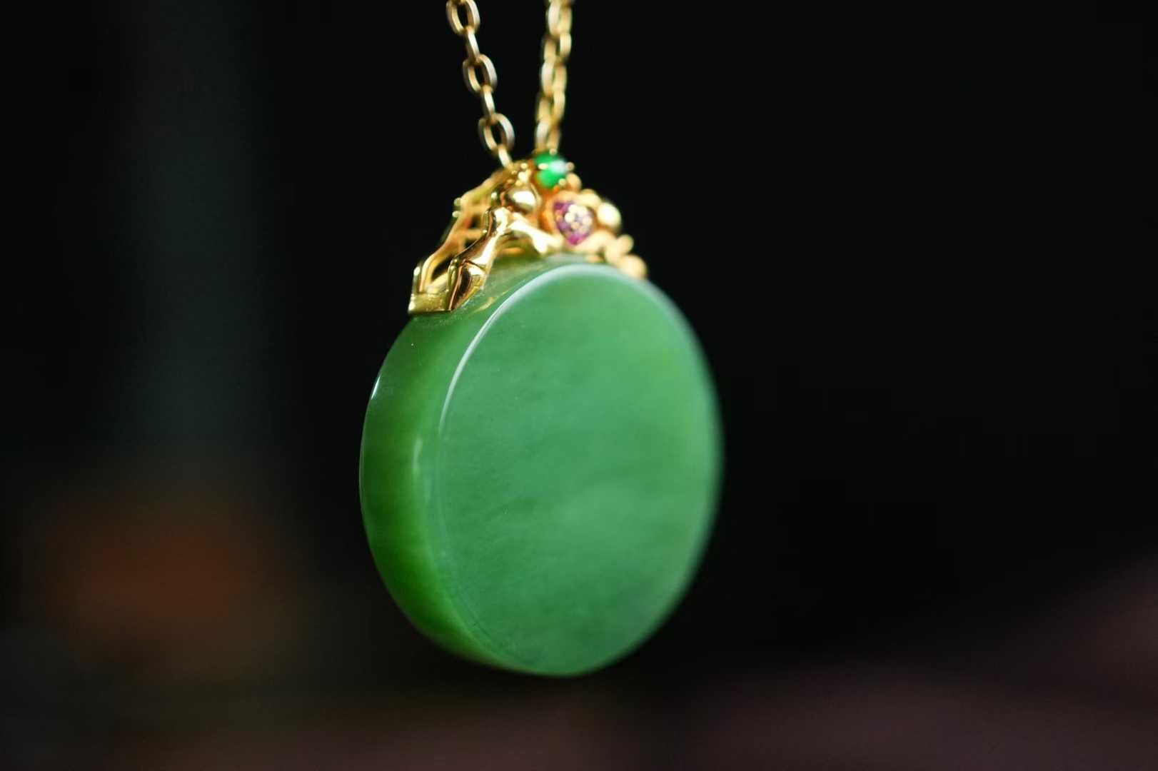 • 和田玉碧玉濃郁果綠圓牌吊墜 ( 20mm直徑),天然和田玉軟玉
