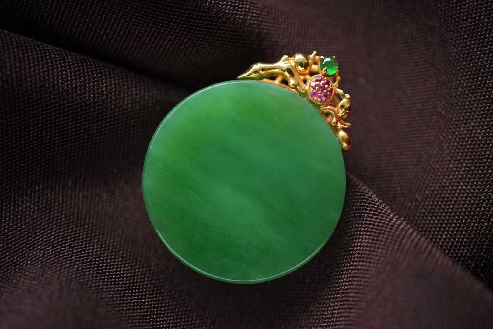 519424 和田玉碧玉濃郁果綠圓牌吊墜 ( 20mm直徑)