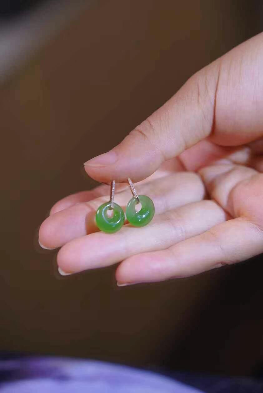 519711 和田玉碧玉公主扣耳釘