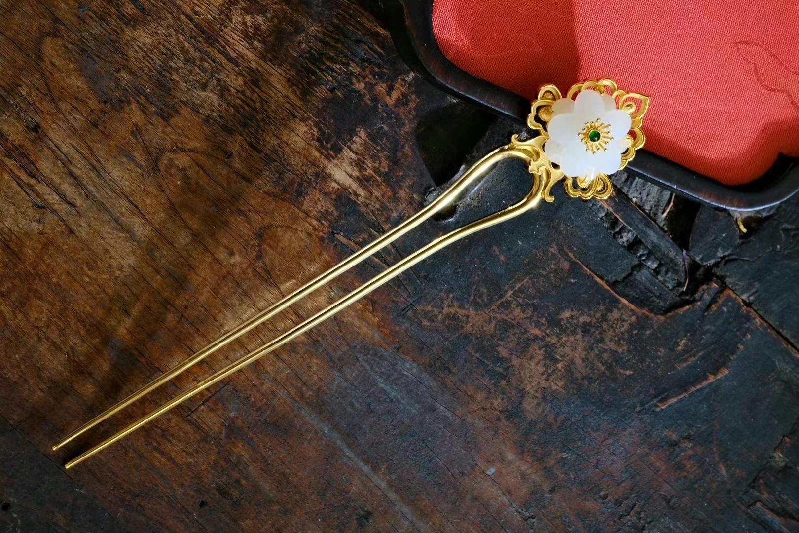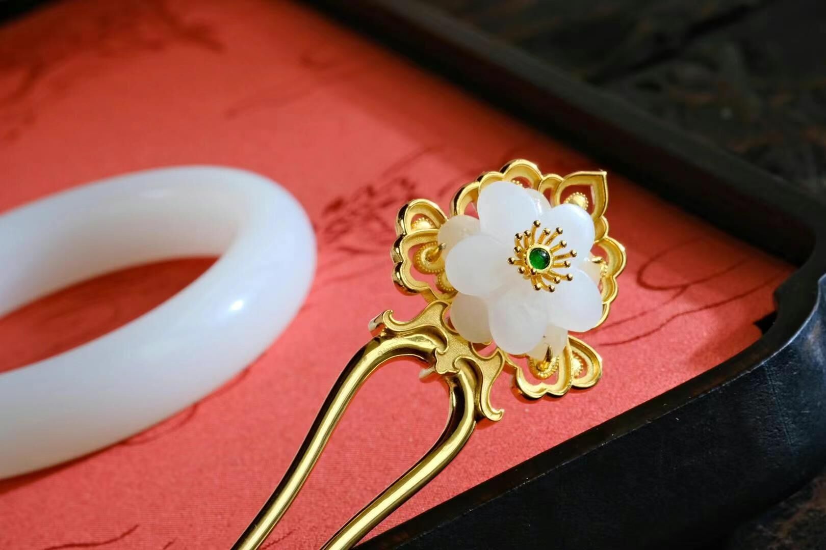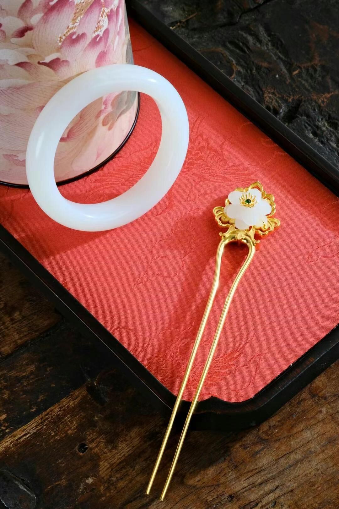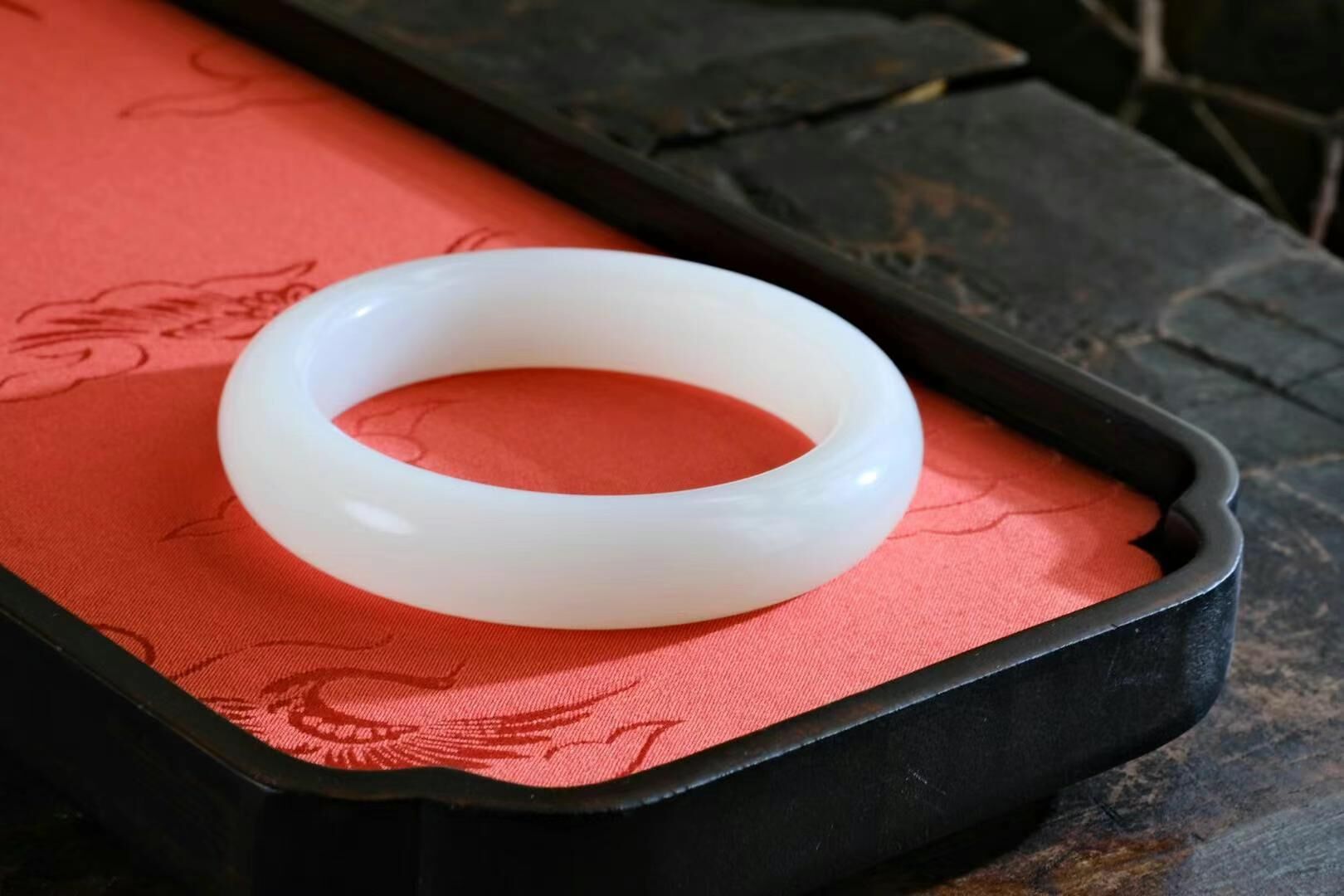• 56.6mm和田玉羊脂白玉手鐲+發釵,天然和田玉軟玉