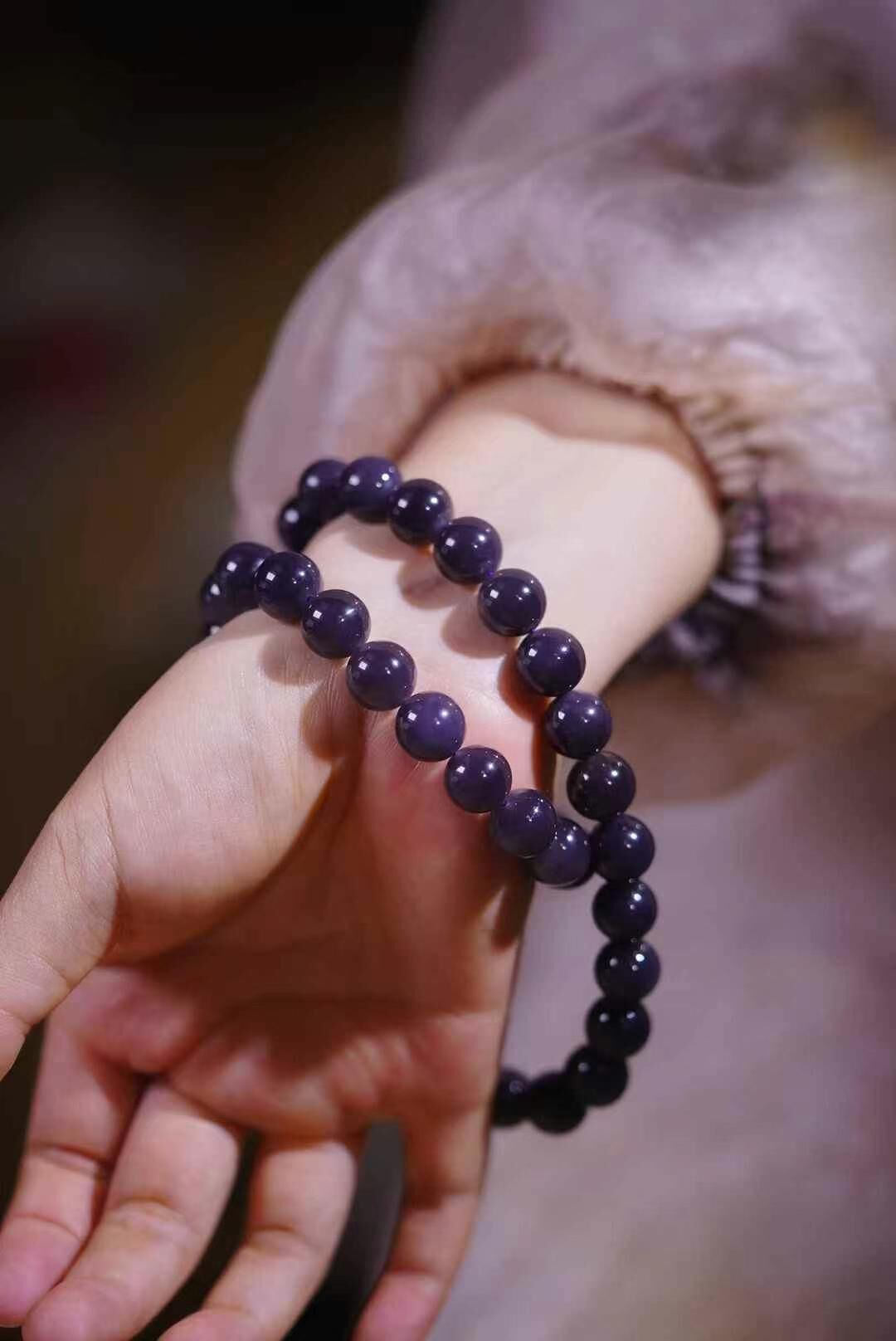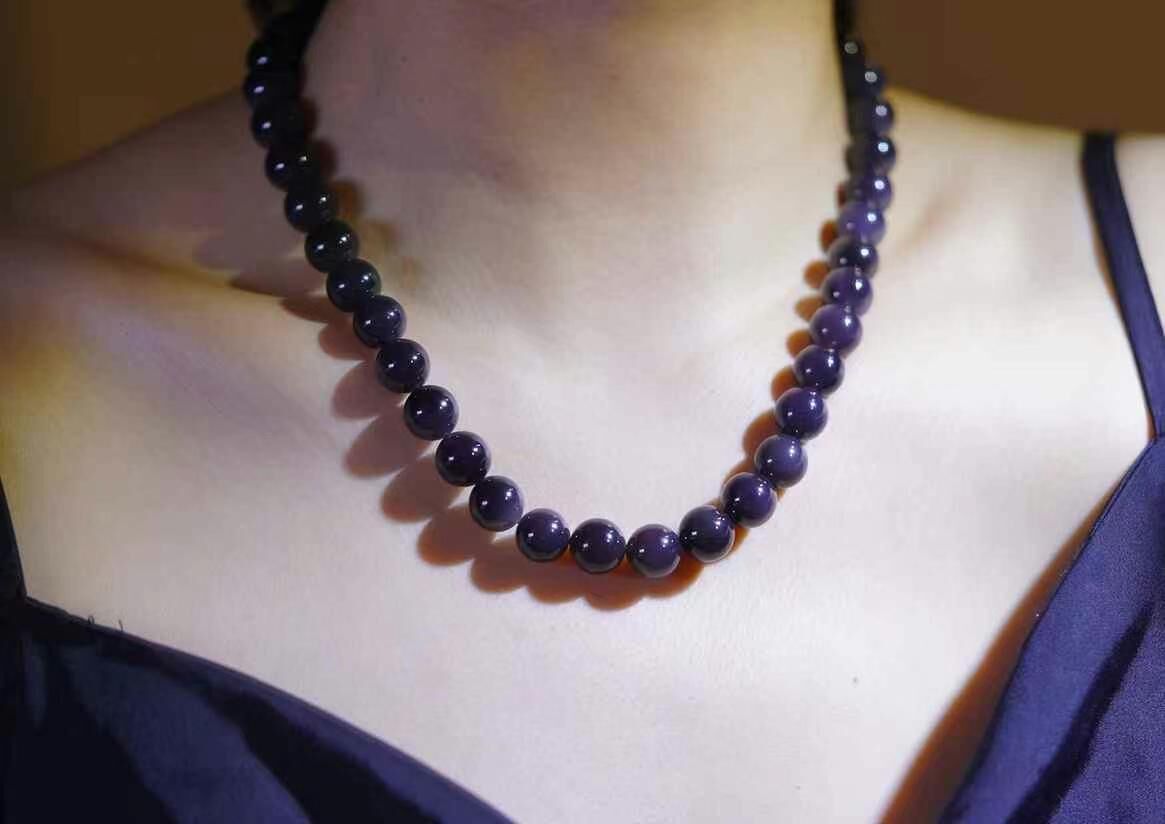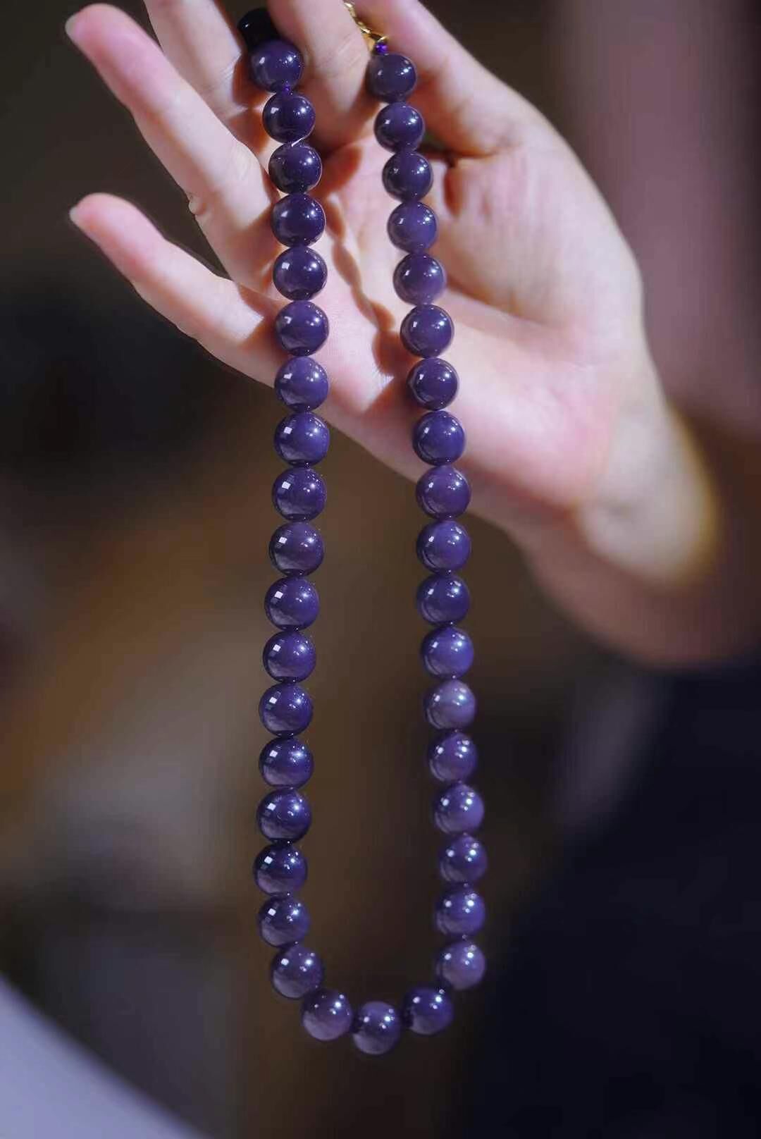 和田玉稀有彩玉“紫羅蘭”,顆顆飽滿,紫氣盈盈,純手工圓珠,如夢如煙,紫氣東來,祥瑞在手,俯瞰雲山有乾坤,大盡在這一泓紫氣中蔓延,超大氣尺寸!