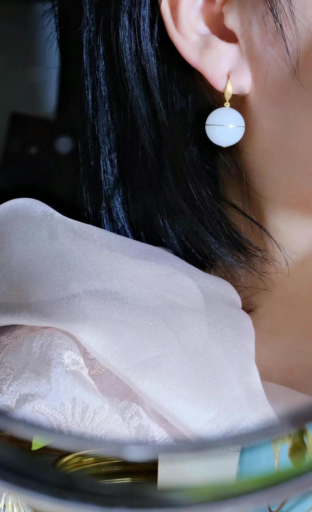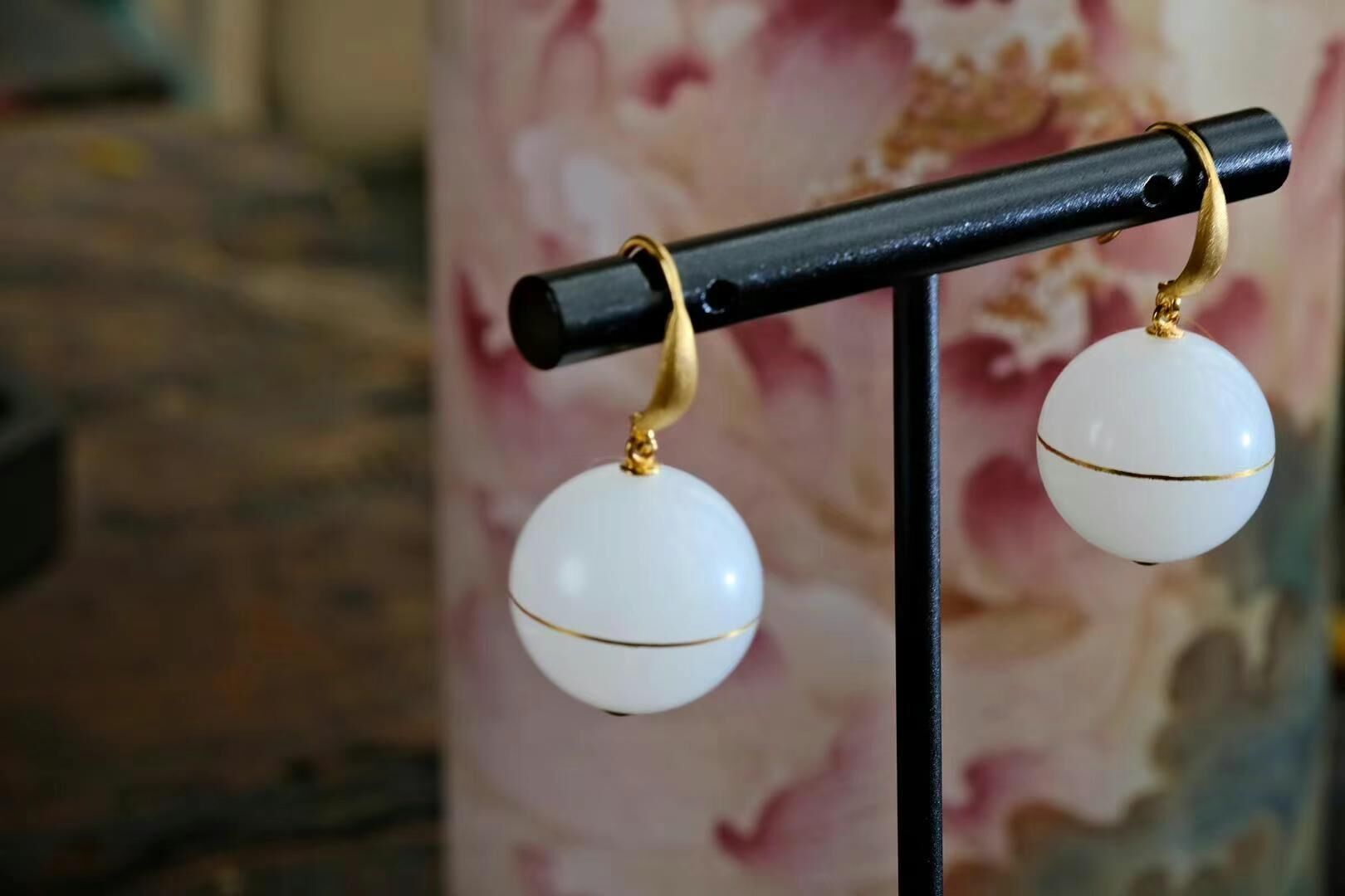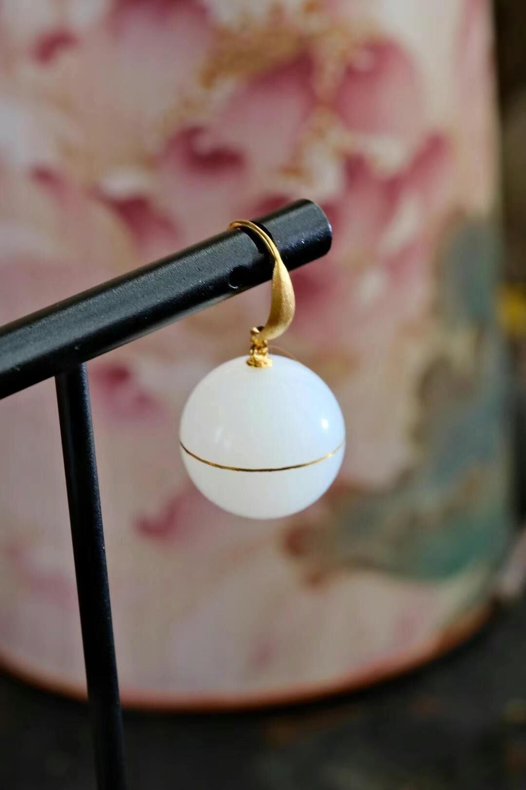 白雲生媚,人間良月。和田玉羊脂白玉,霸氣錯金大珠,18K金錯金工藝。