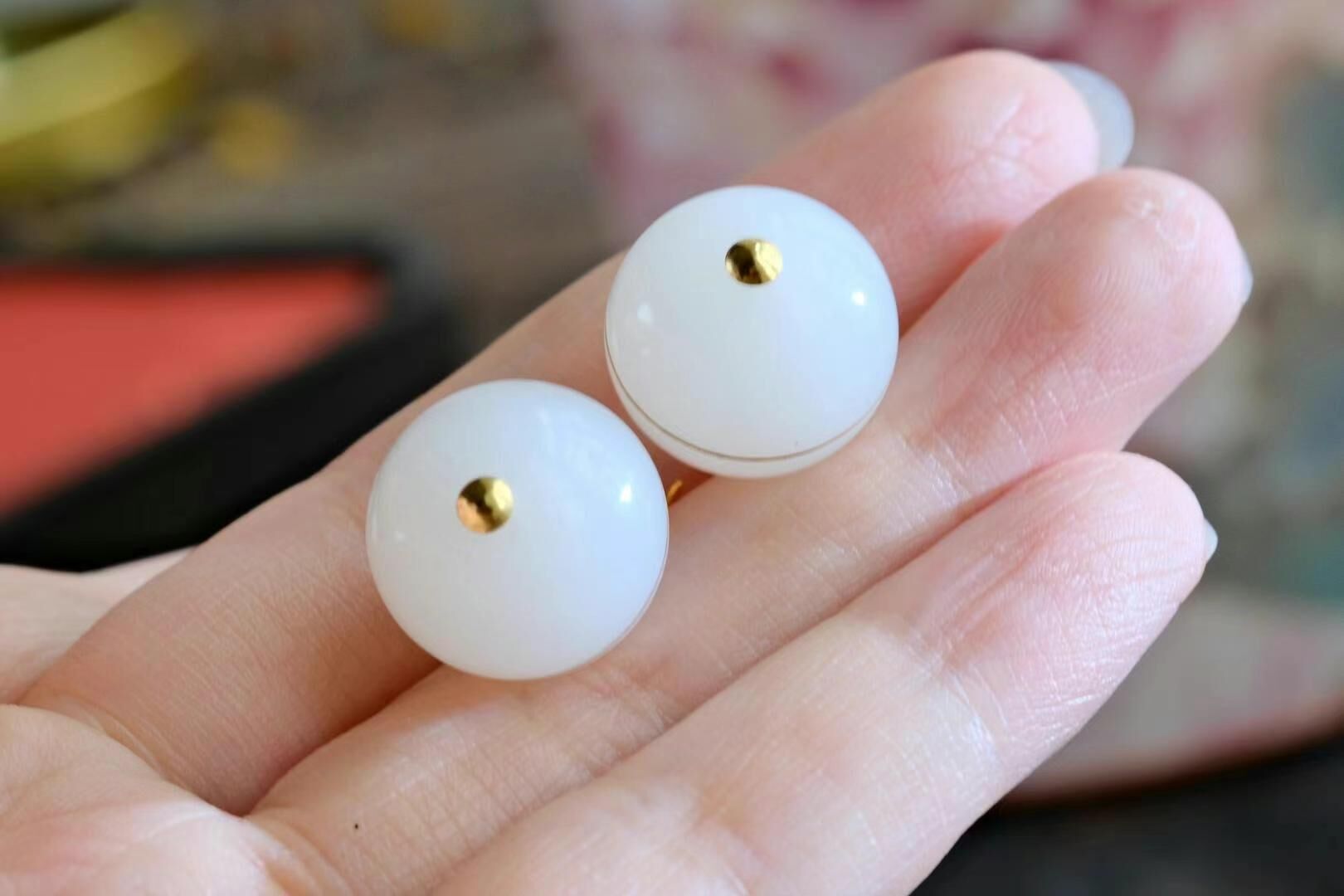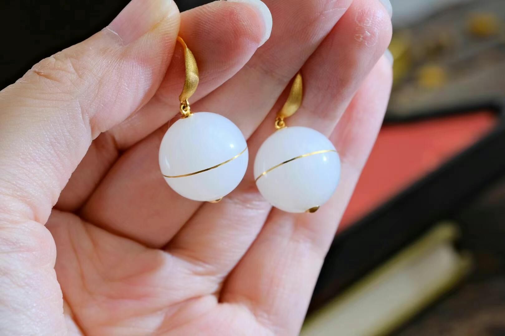 • 和田玉羊脂白玉耳墜 (16mm直徑),天然和田玉軟玉