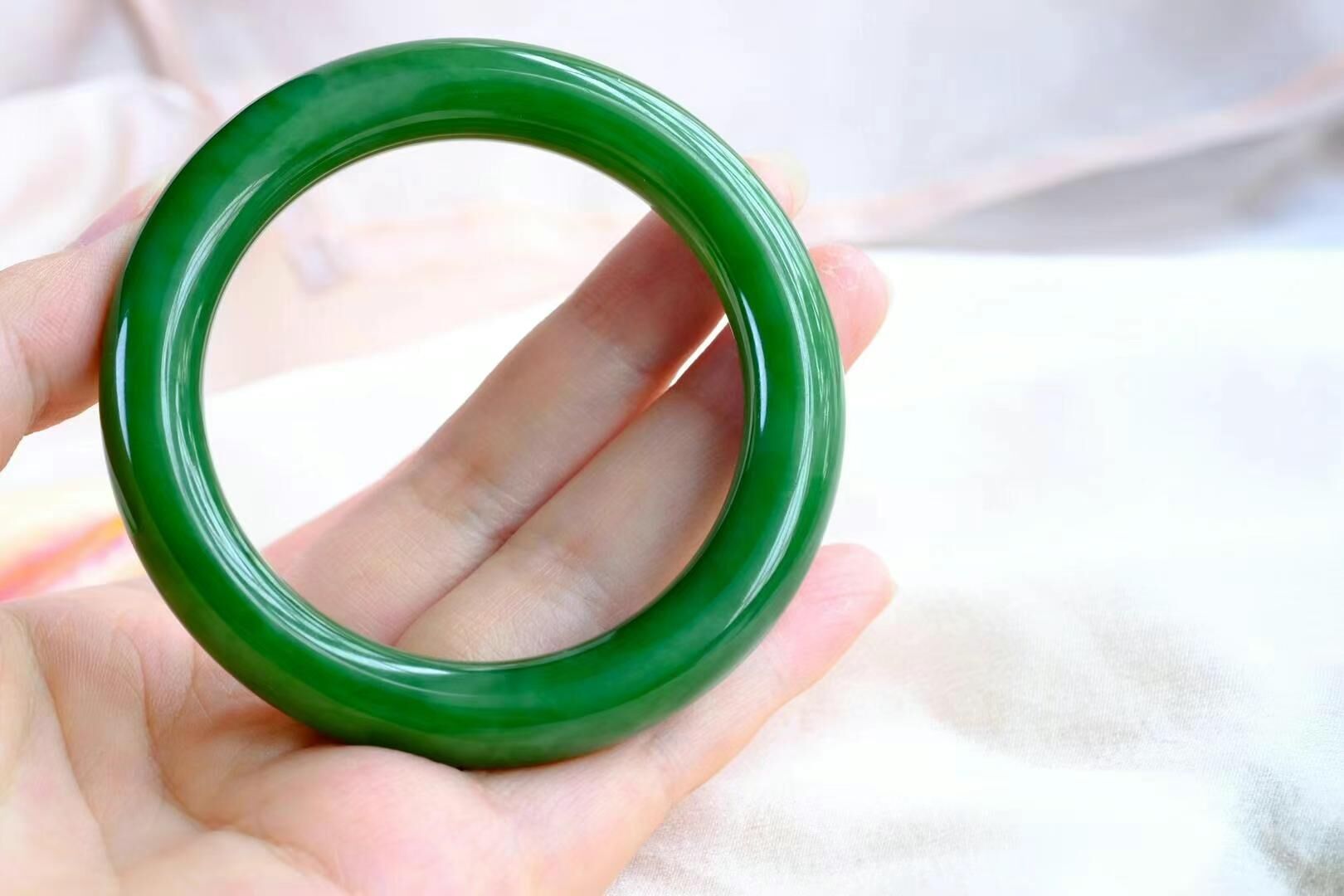 • 和田玉碧玉圓條手鐲,天然和田玉軟玉
