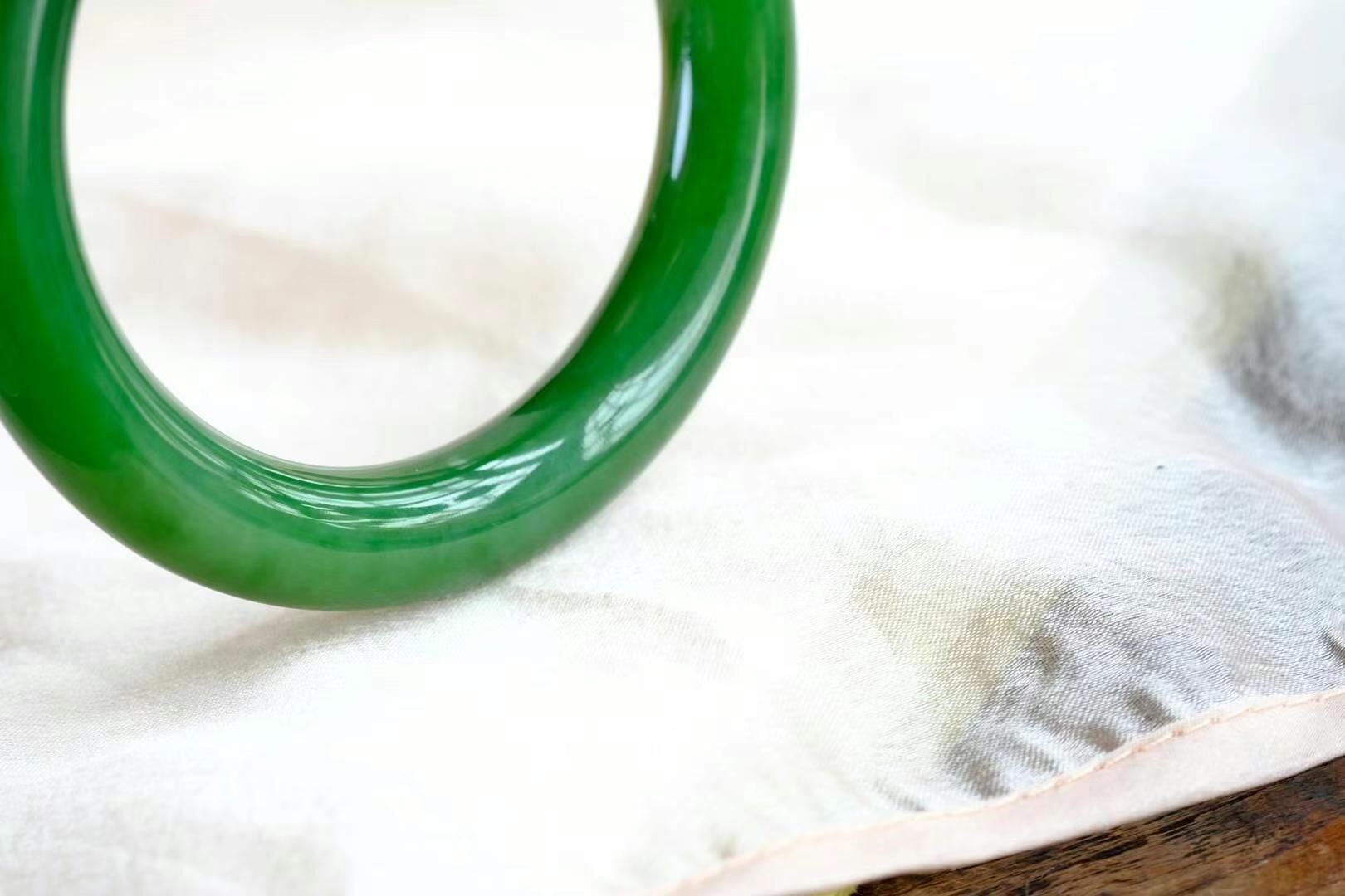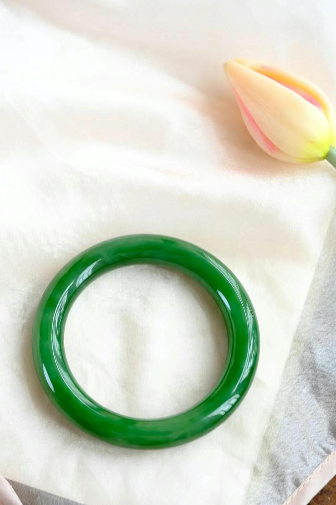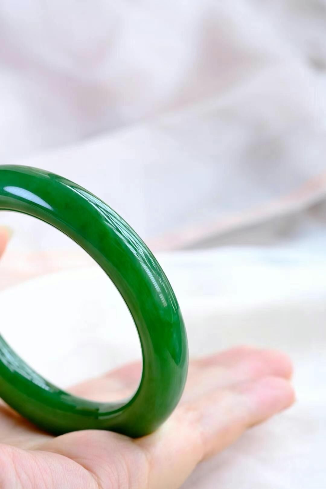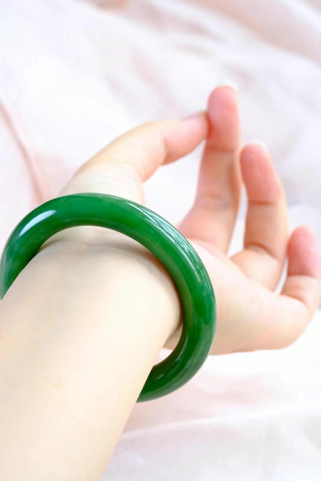 和田玉碧玉,腕間這一抹濃翠欲滴的陽綠,像把揉碎的盛夏綠葉凝成了永恆不是輕佻的嫩芽,也非暮色蒼苔,而是沉澱在昆崙山巔千年的碧色詩行。