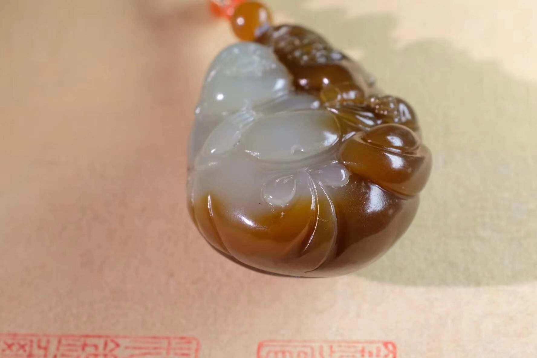 和田玉新疆且末金山礦糖白料,手工立體雕刻彌勒佛財神爺,招財進寶,福多財多。