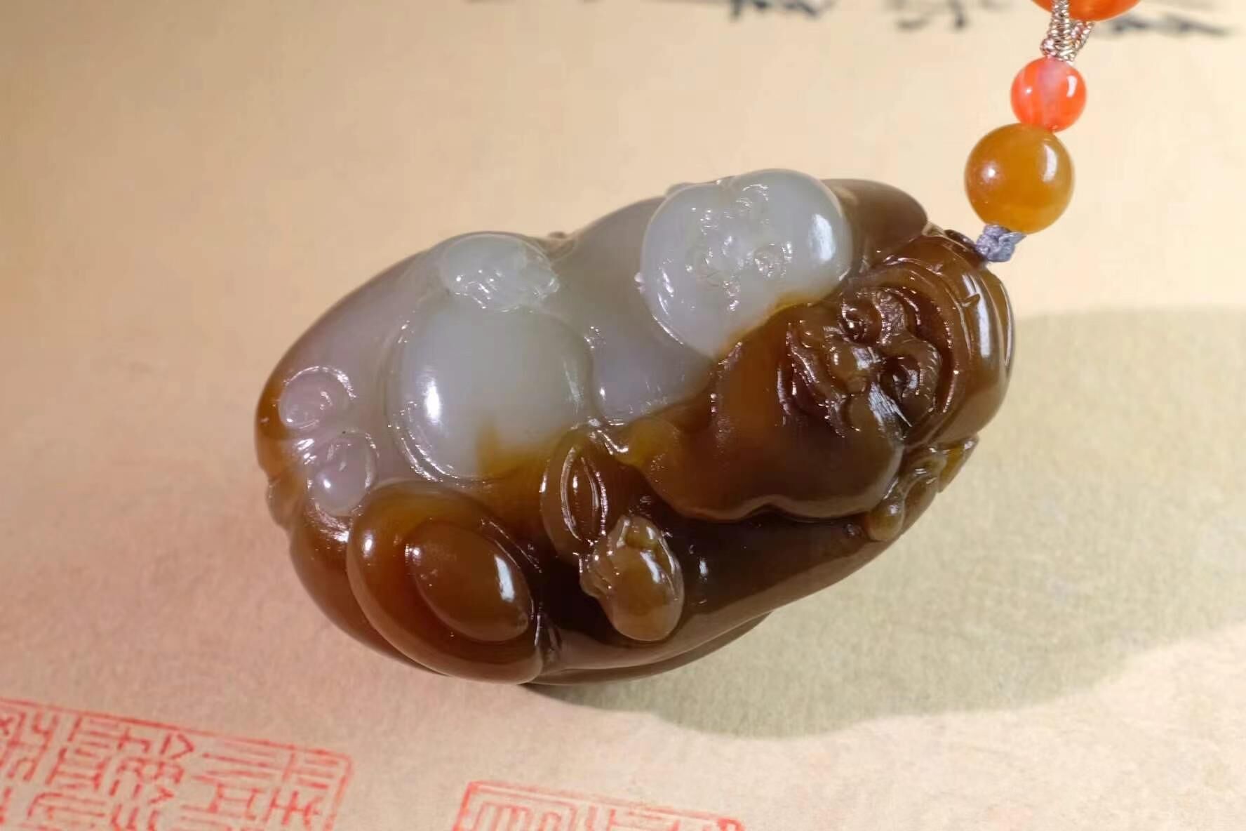 • 和田玉且末金山礦糖白福財掛件,天然和田玉軟玉