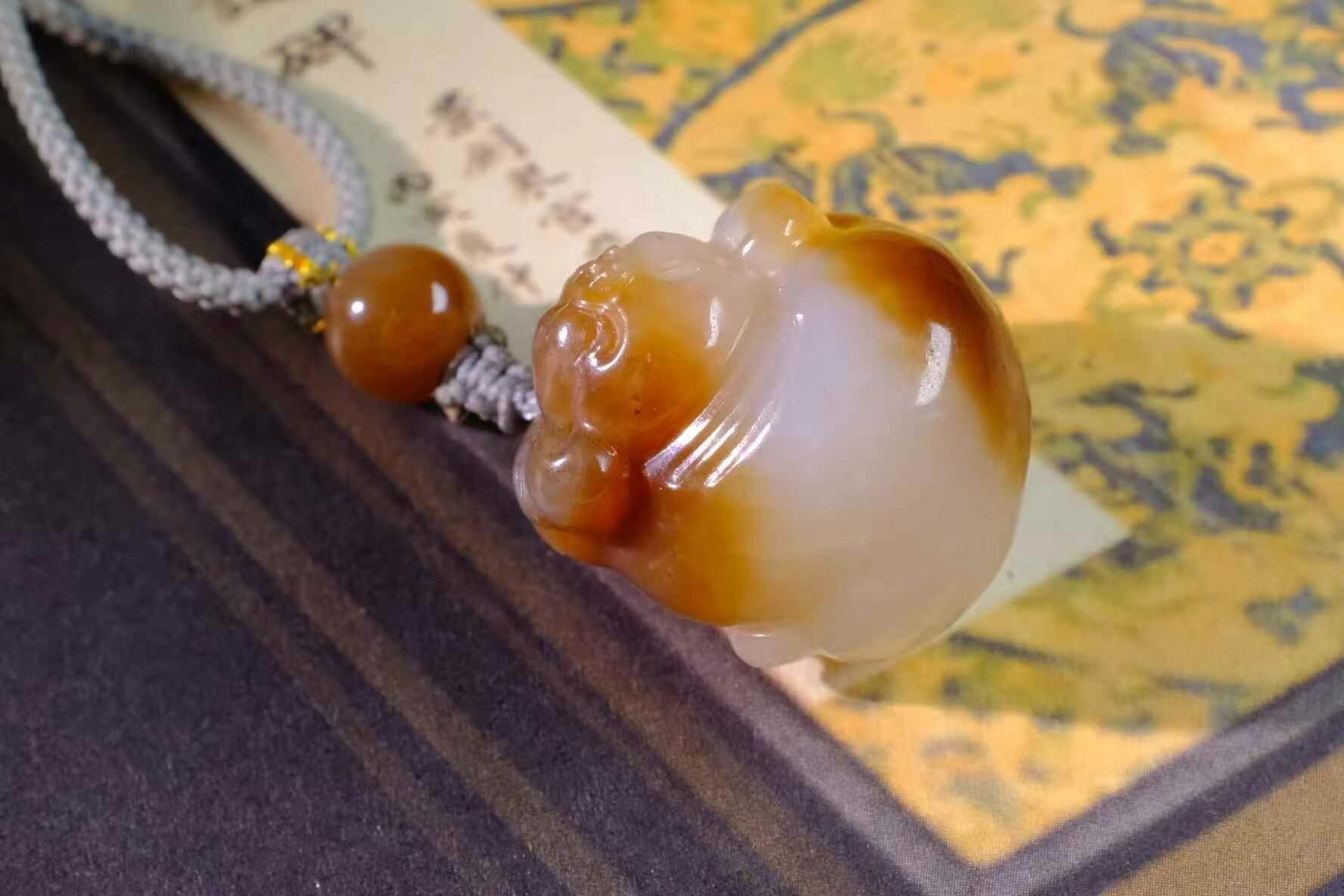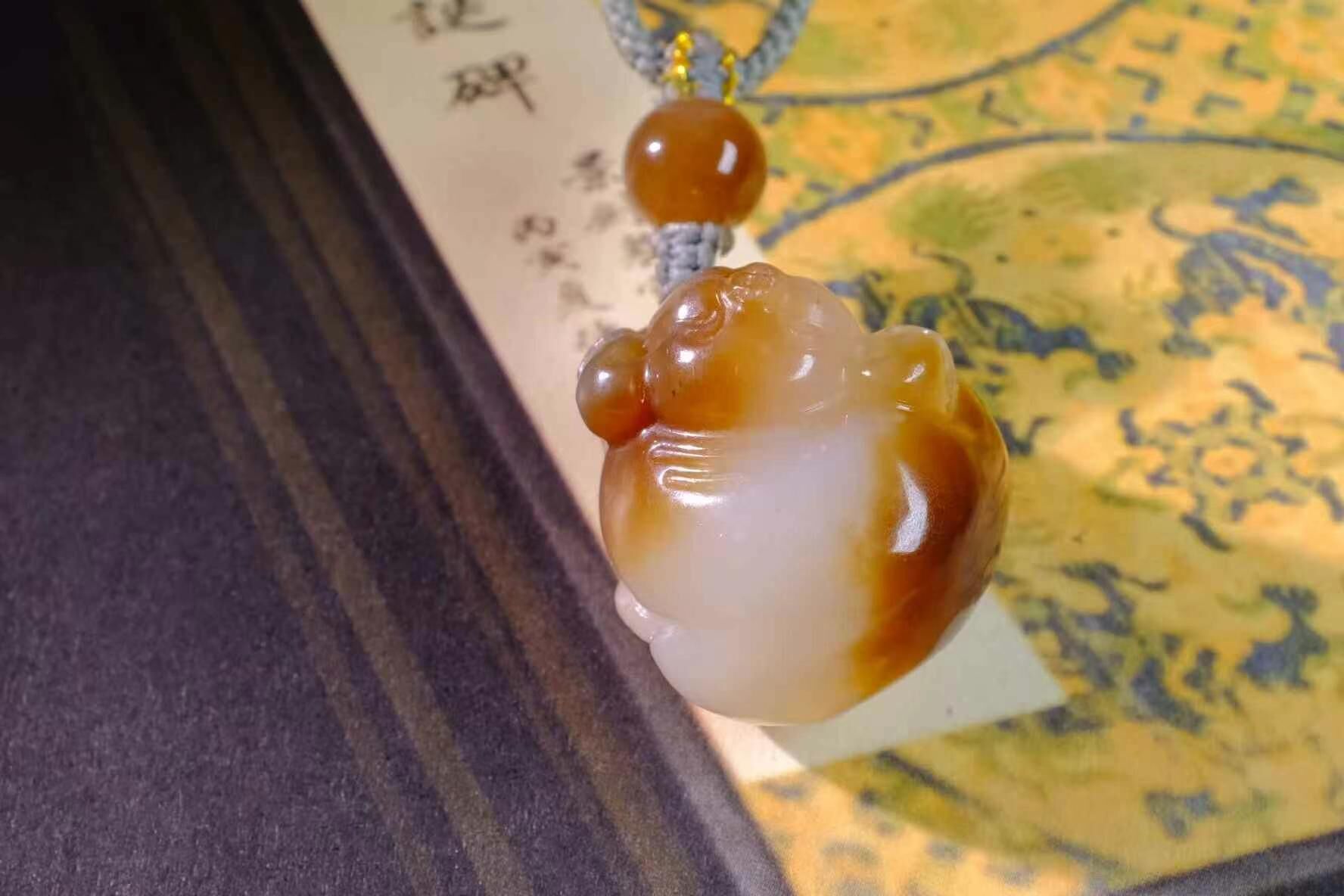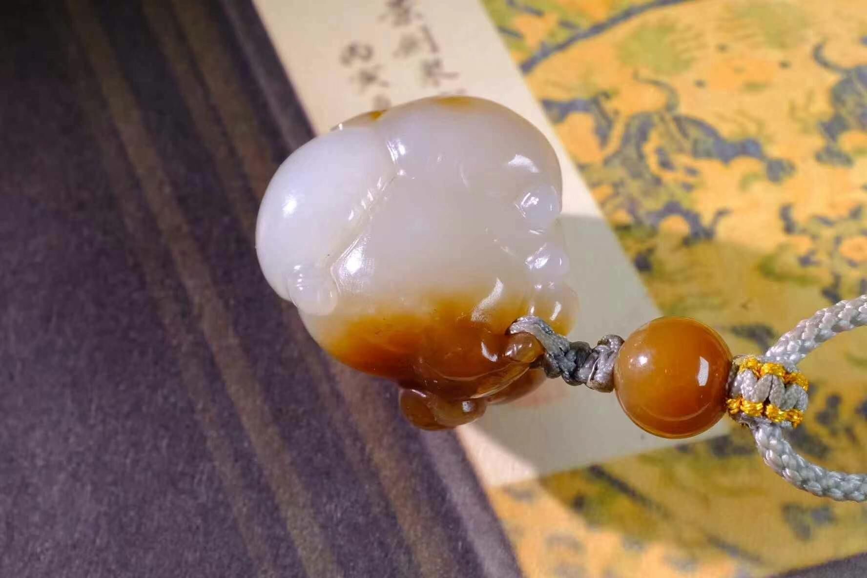 • 和田玉且末糖白福豬掛件,天然和田玉軟玉