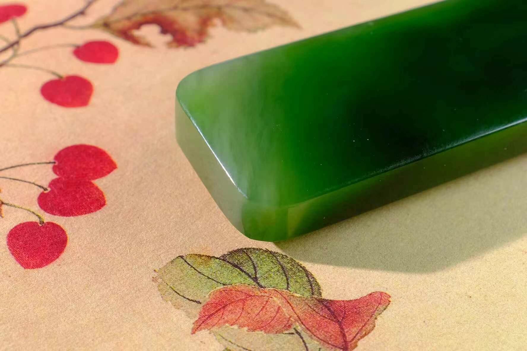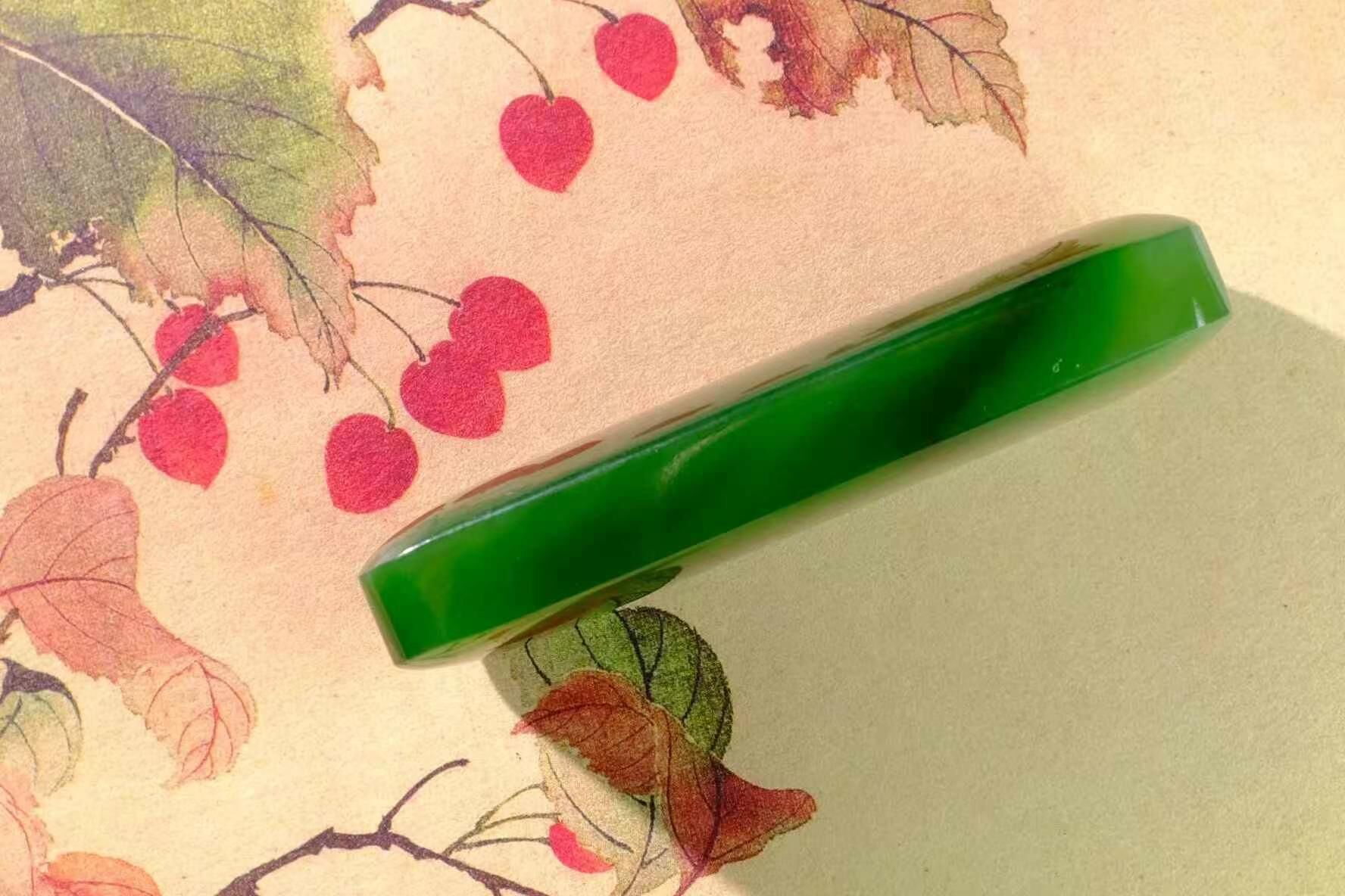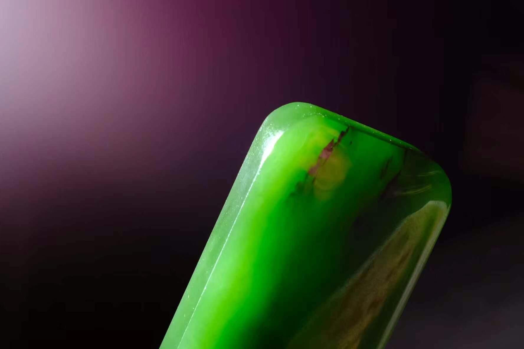 和田玉碧玉七號礦,可鑲嵌,未打孔,無棉絮,辣綠色。