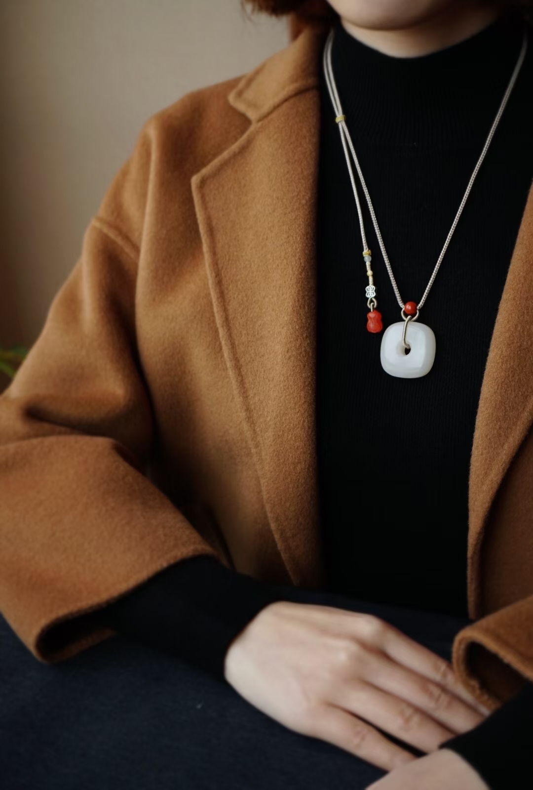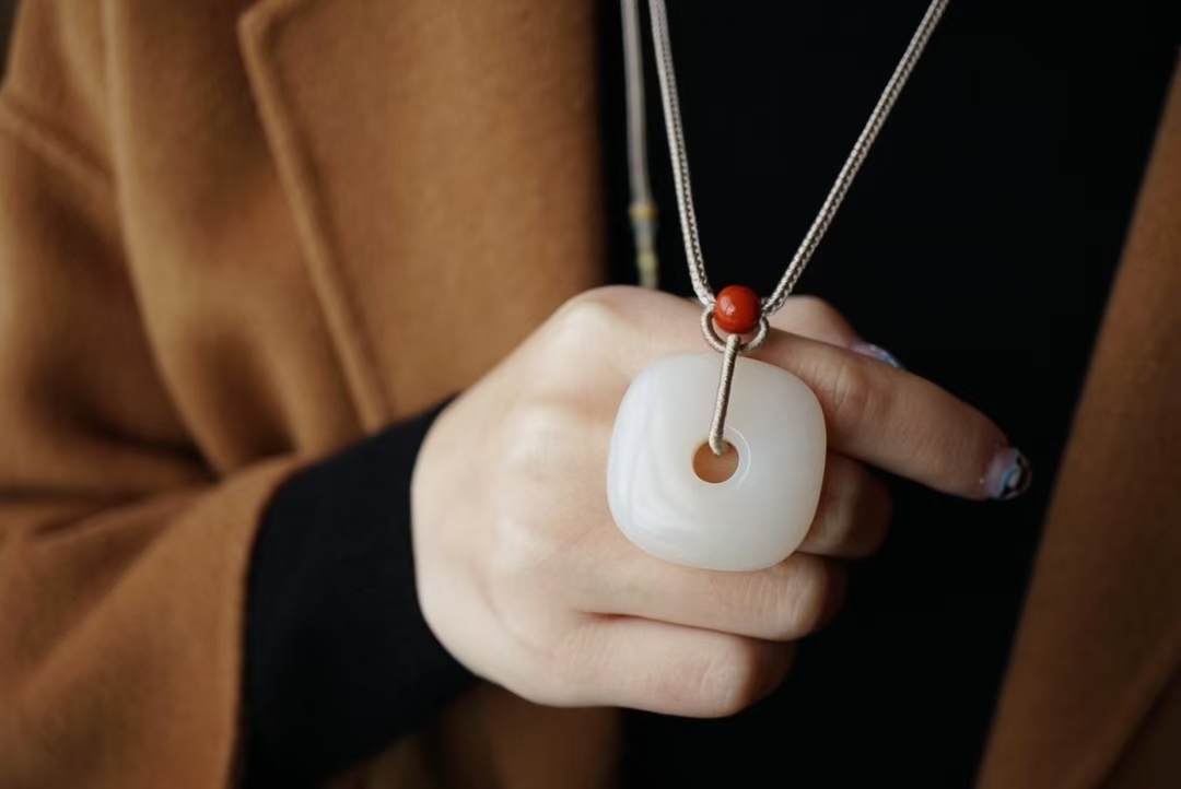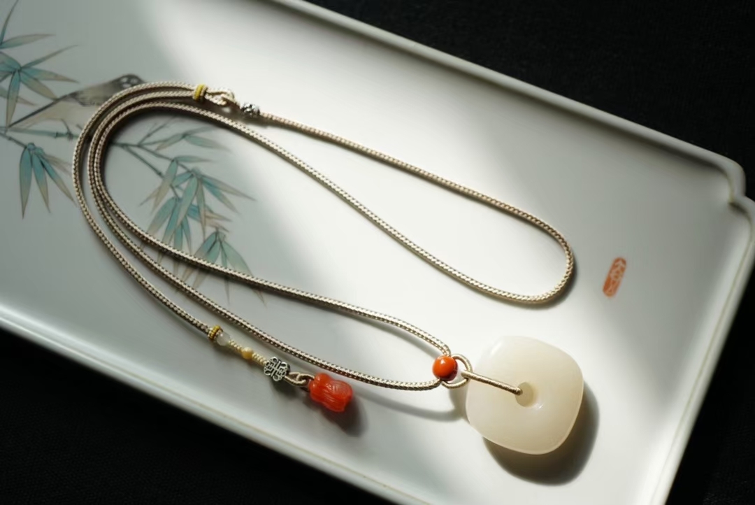 搭配純手工製作進口繩,繞線精緻牢固,南紅雕刻大白菜作尾墜,純銀復古雙面牌做背雲,蜜蠟小圓珠,白玉圓珠,滿肉南紅路路通點綴,佩戴典雅大方。