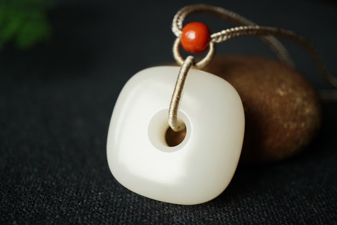 528441 和田玉濃鬱藕粉懷古方扣掛件