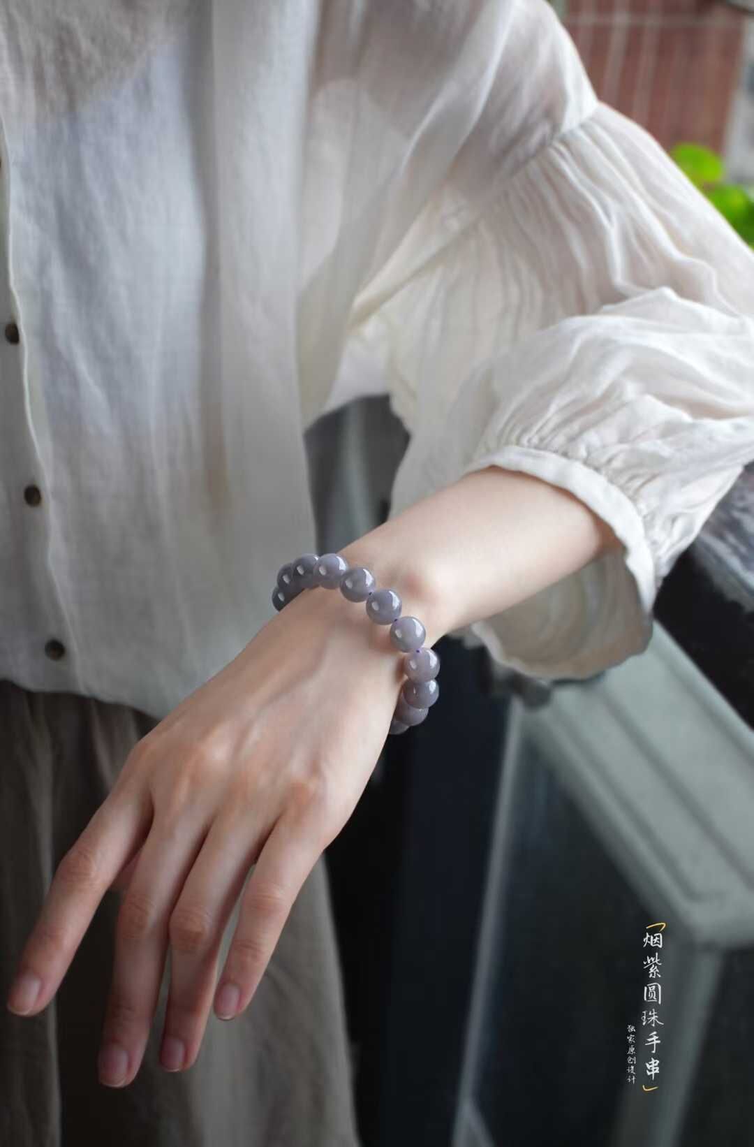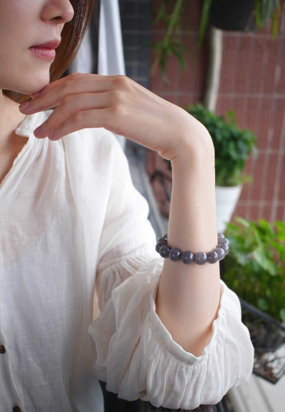 529438 和田玉高質濃郁煙紫圓珠手串 (12mm直徑)