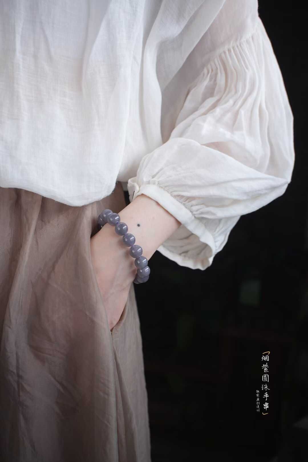 煙紫寓意也是極好的,有紫氣東來之意,自古一直被認為代表富貴吉祥的顏色,上身不僅能夠襯託膚色,還可以增添福氣和祥瑞之氣。