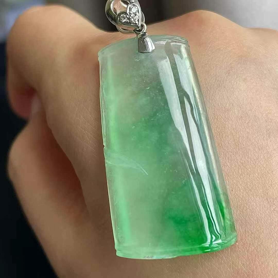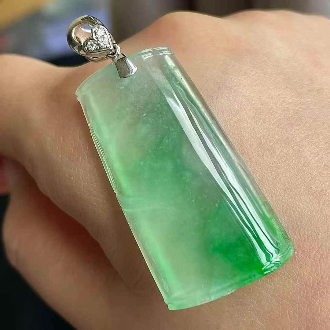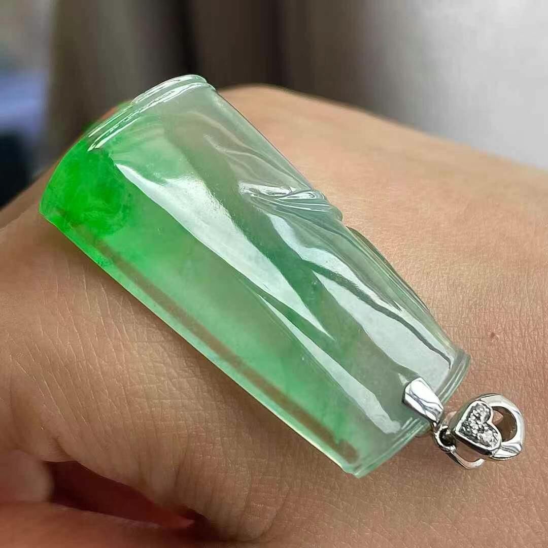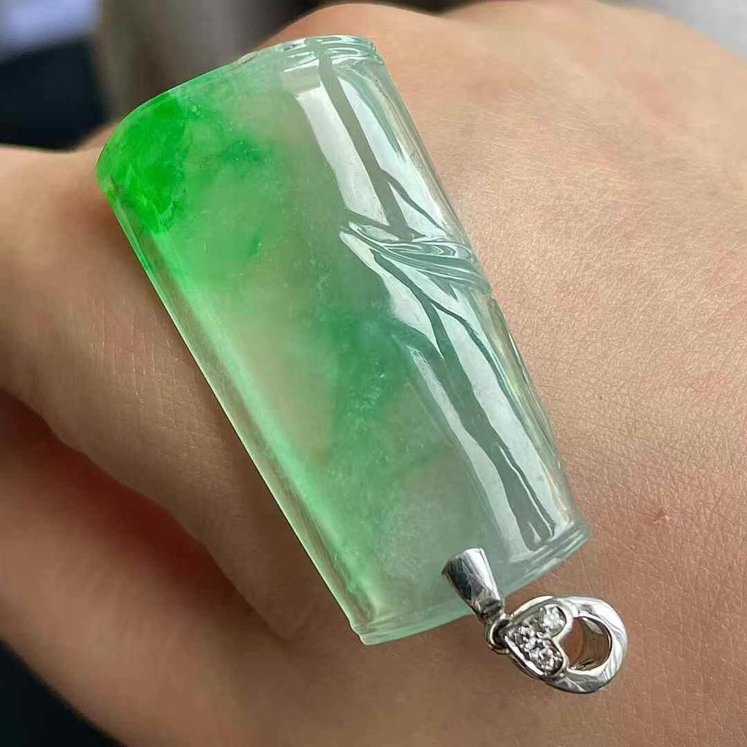• 翡翠高冰綠竹節吊墜,天然翡翠A玉, 緬甸玉, Jade, Jadeite