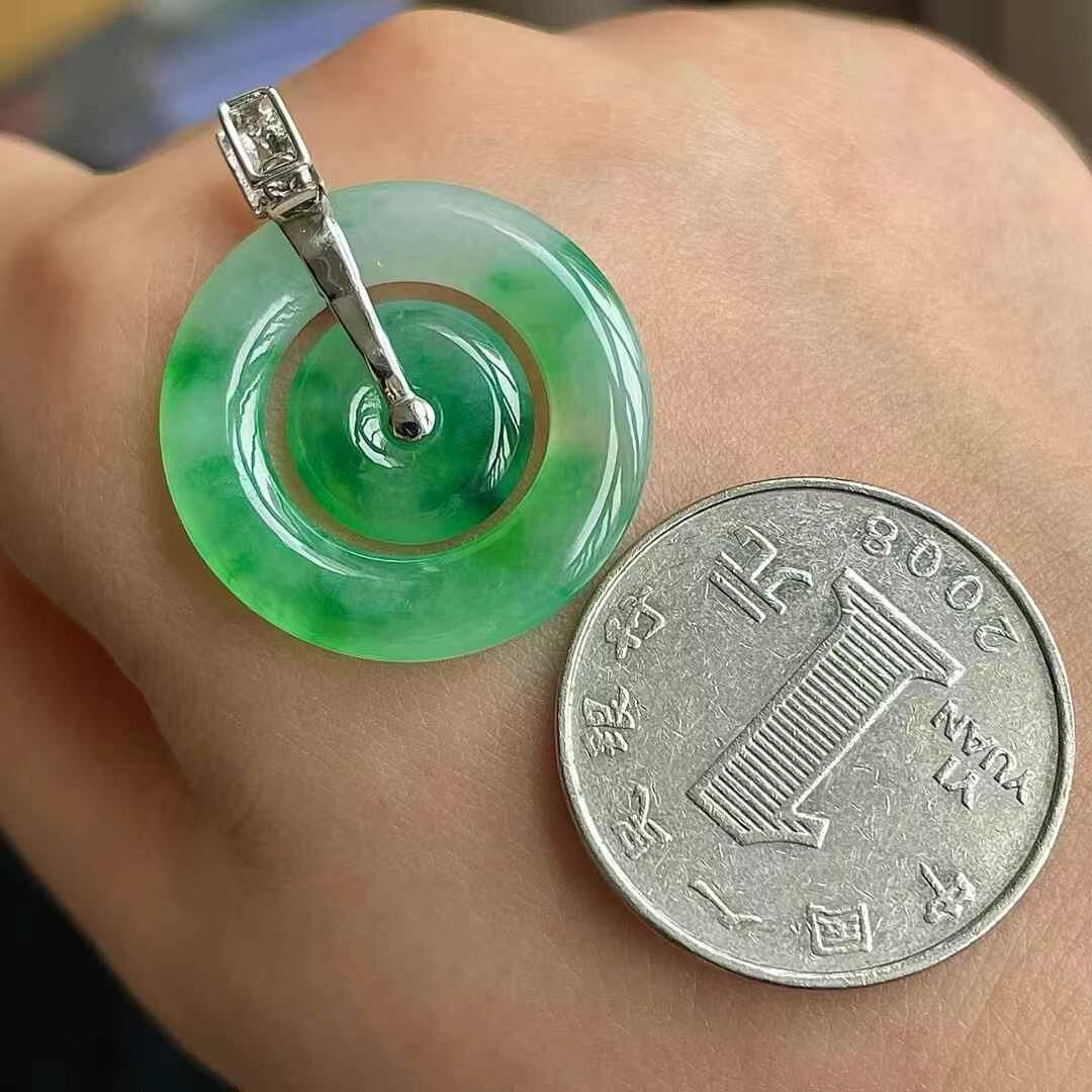 5295518 翡翠冰種辣綠母子扣吊墜 (24.2mm直徑)