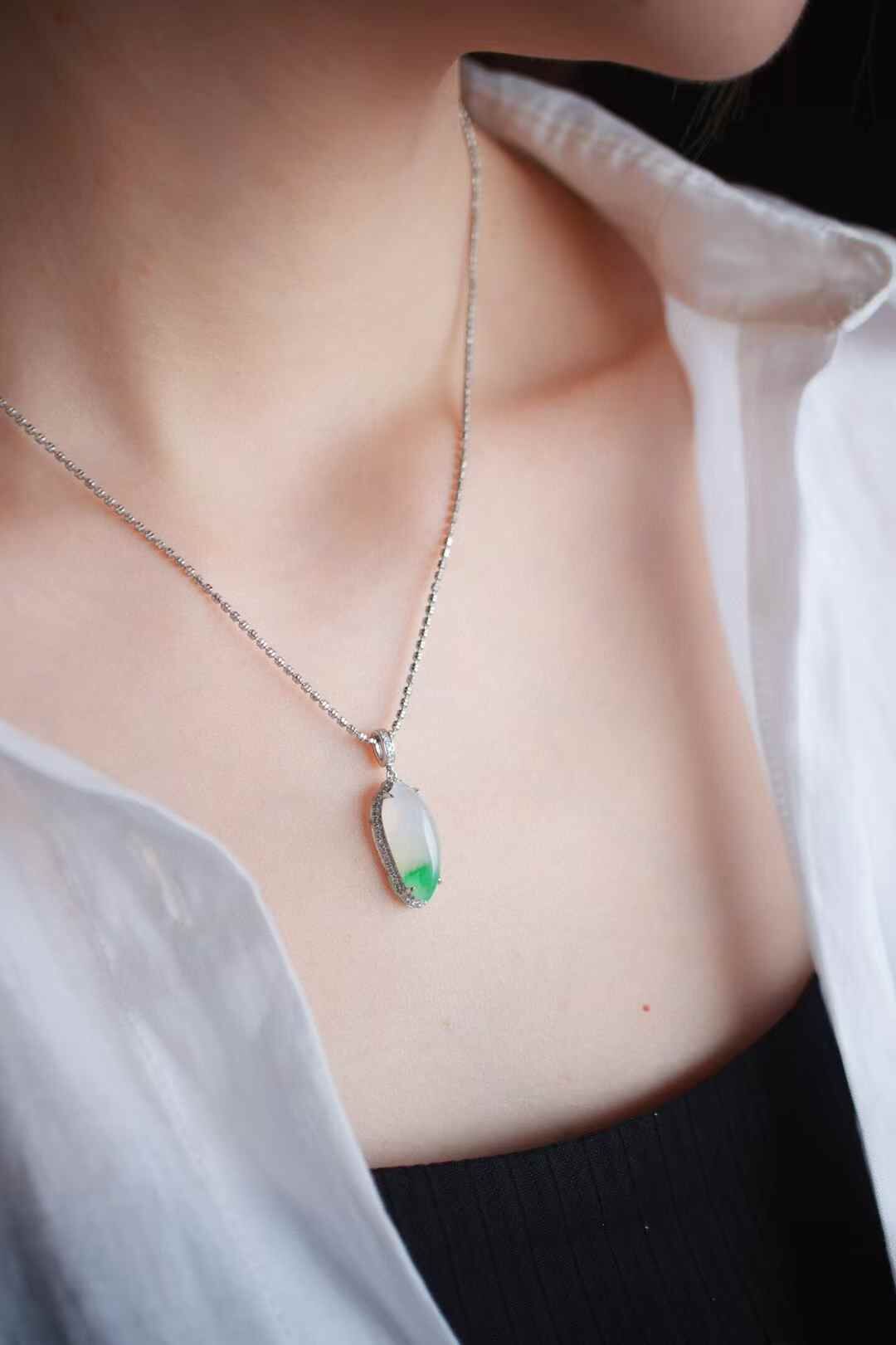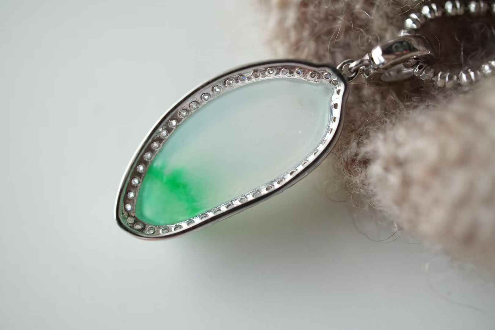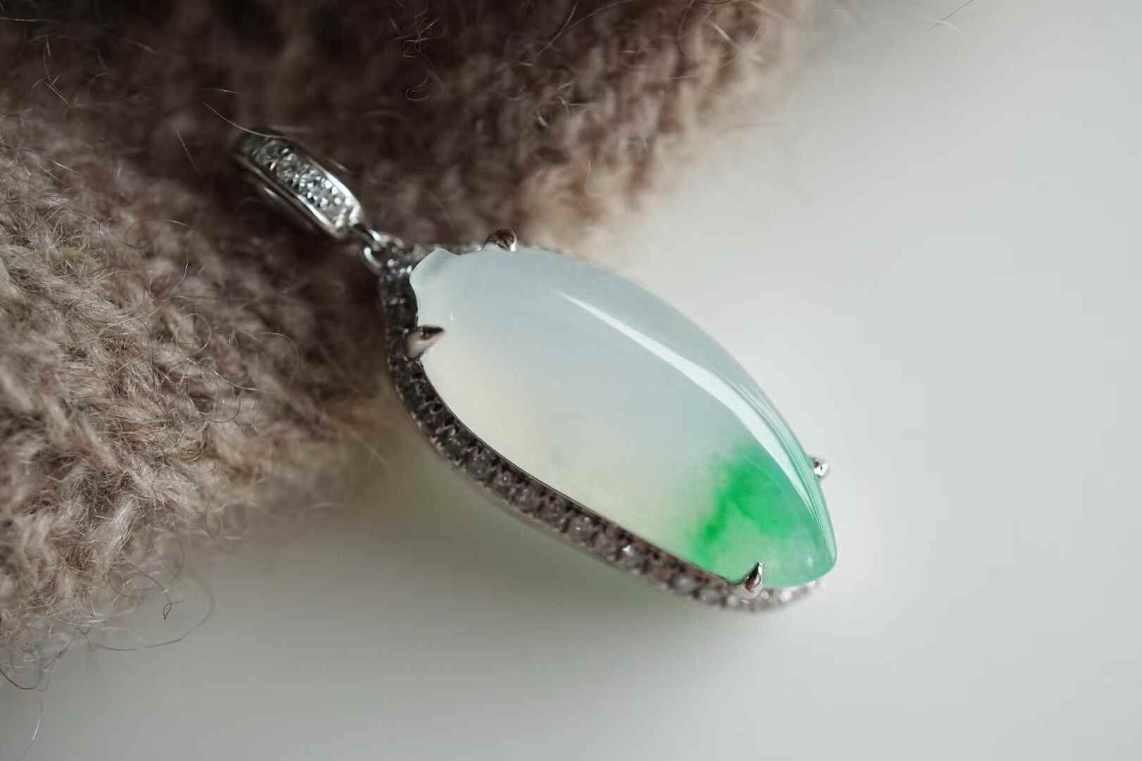 緬料,天然翡翠A玉,萬能扣設計,做吊墜/提溜都可以,高冰種飄陽綠,種水一流,起光感,一抹翠色明媚鮮陽,越看越靈動超漂亮!18K金鑽石鑲嵌,超值推薦。