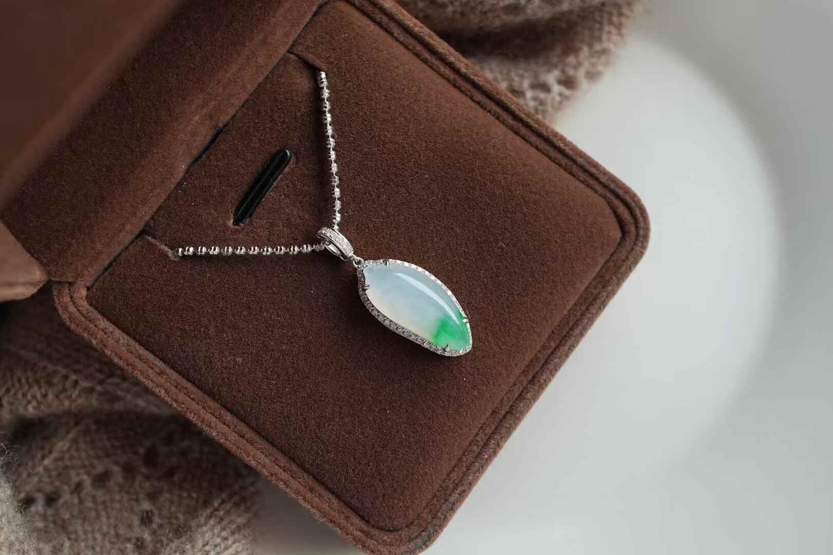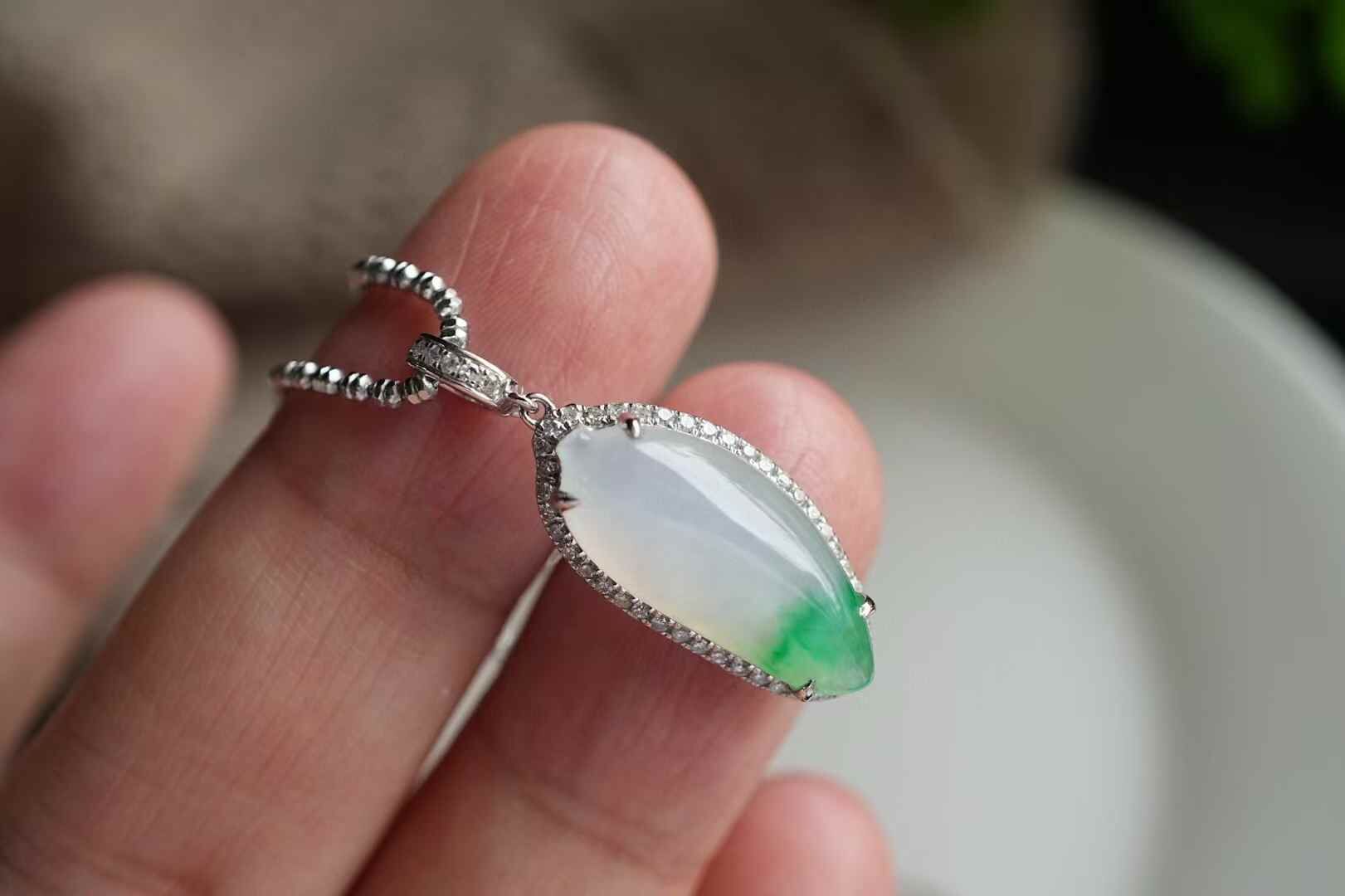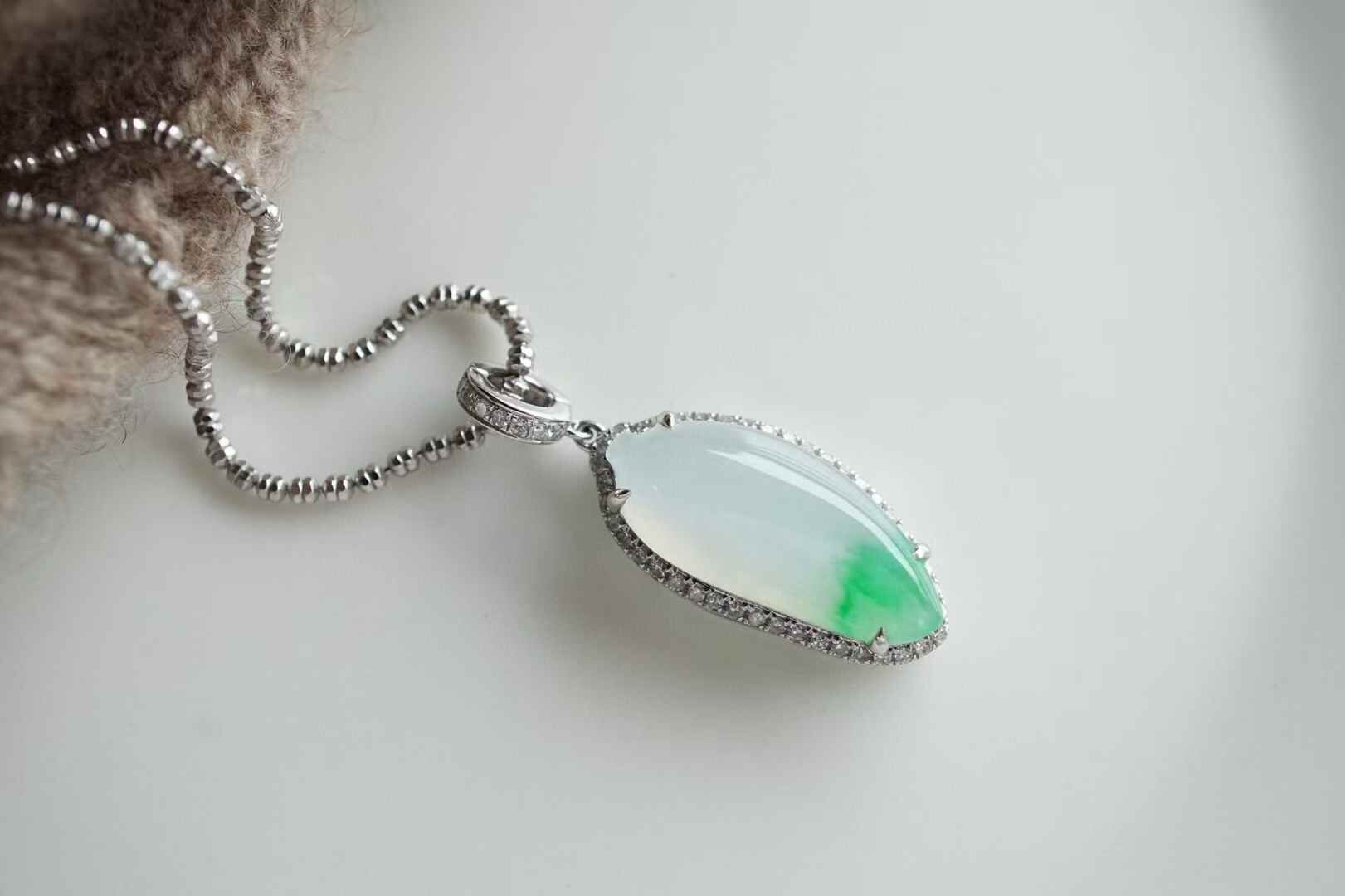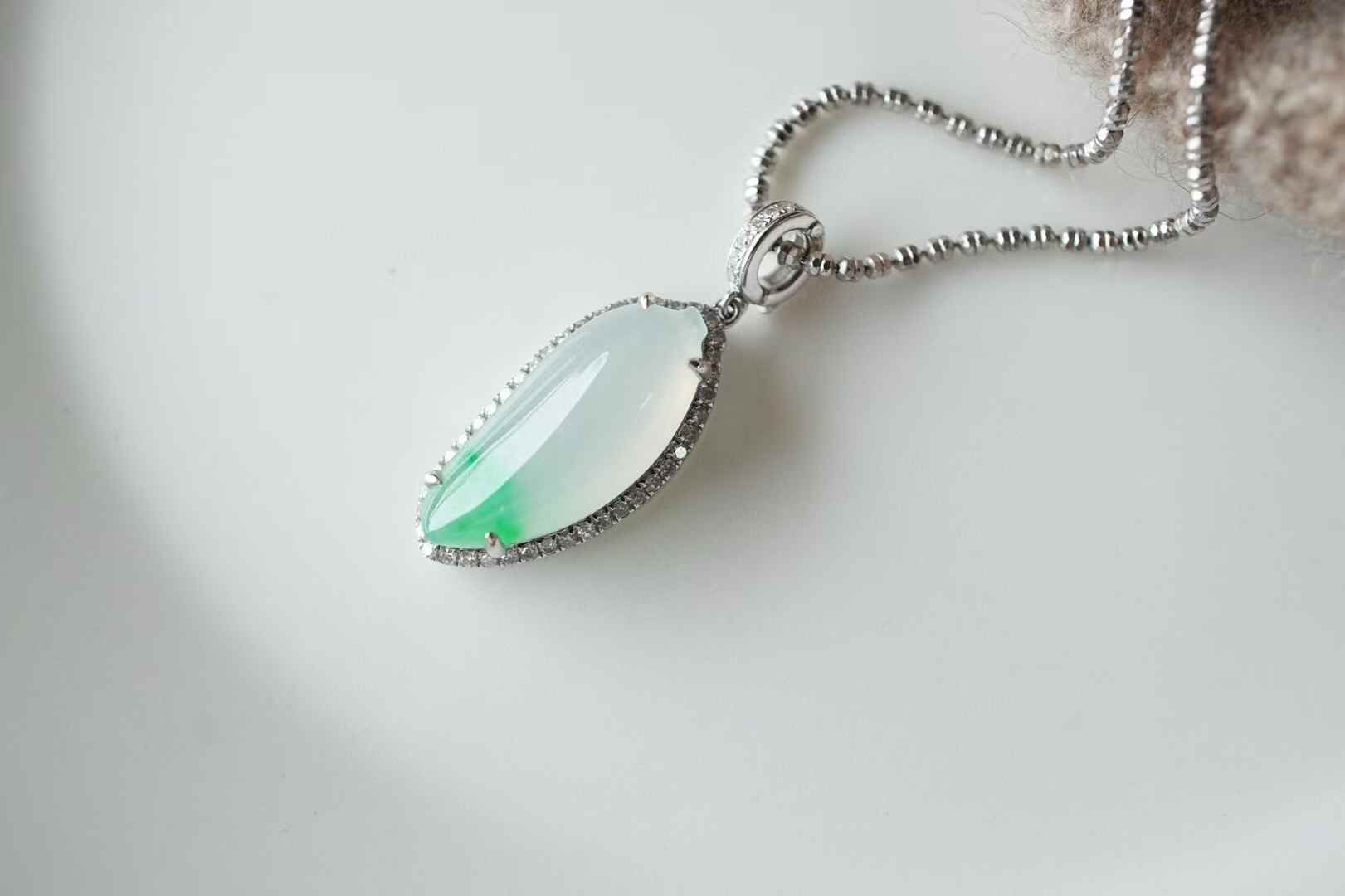 緬料,天然翡翠A玉,萬能扣設計,做吊墜/提溜都可以,高冰種飄陽綠,種水一流,起光感,一抹翠色明媚鮮陽,越看越靈動超漂亮!18K金鑽石鑲嵌,超值推薦。