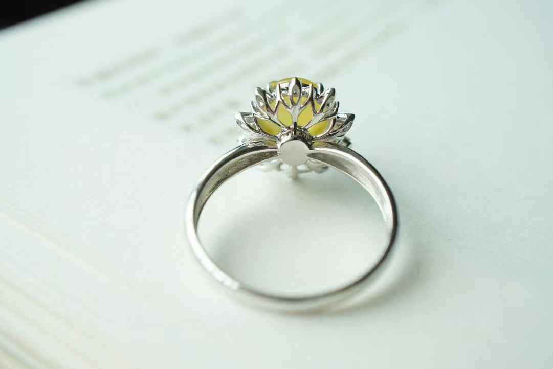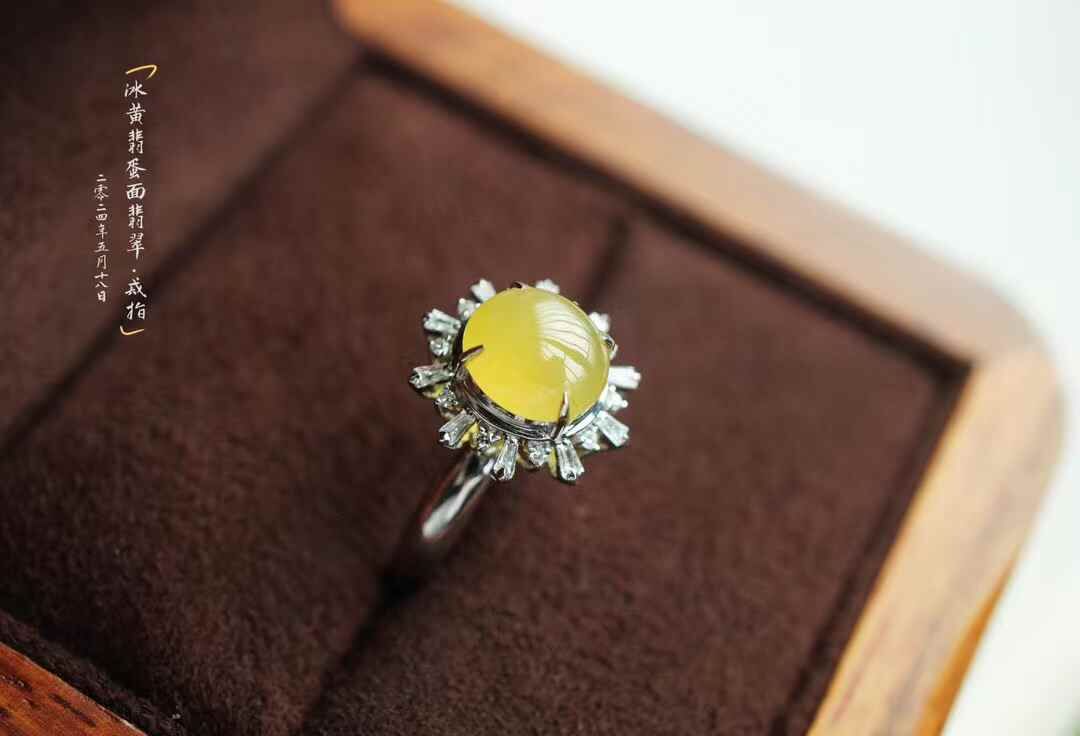 529830 翡翠冰黃翡蛋面戒指
