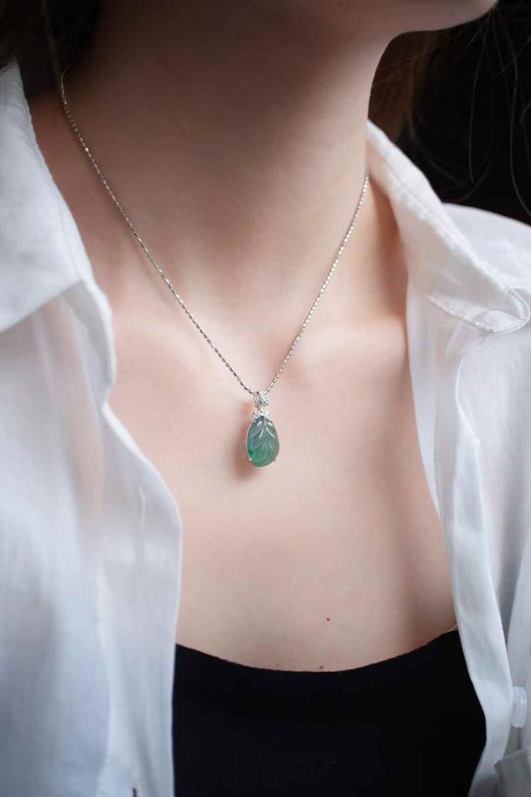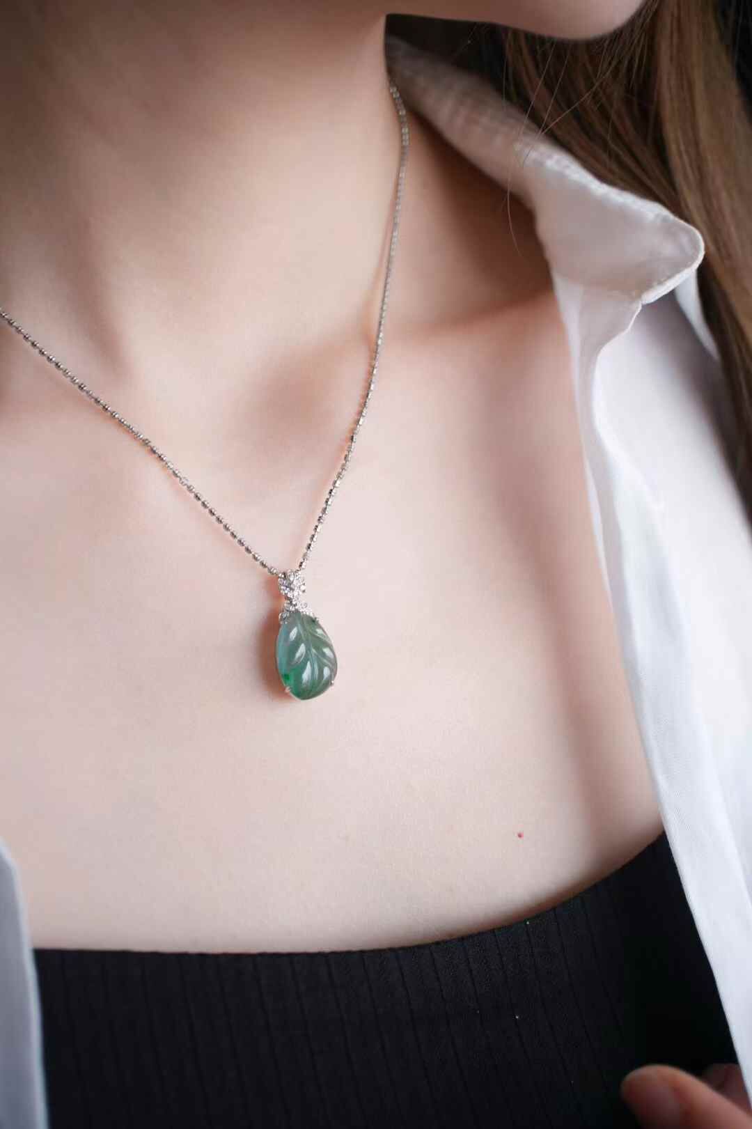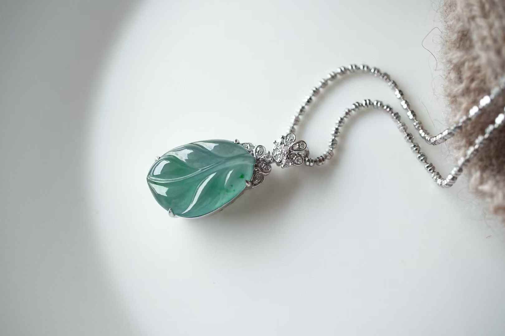 • 翡翠冰藍水飄花葉子吊墜,天然翡翠A玉, 緬甸玉, Jade, Jadeite