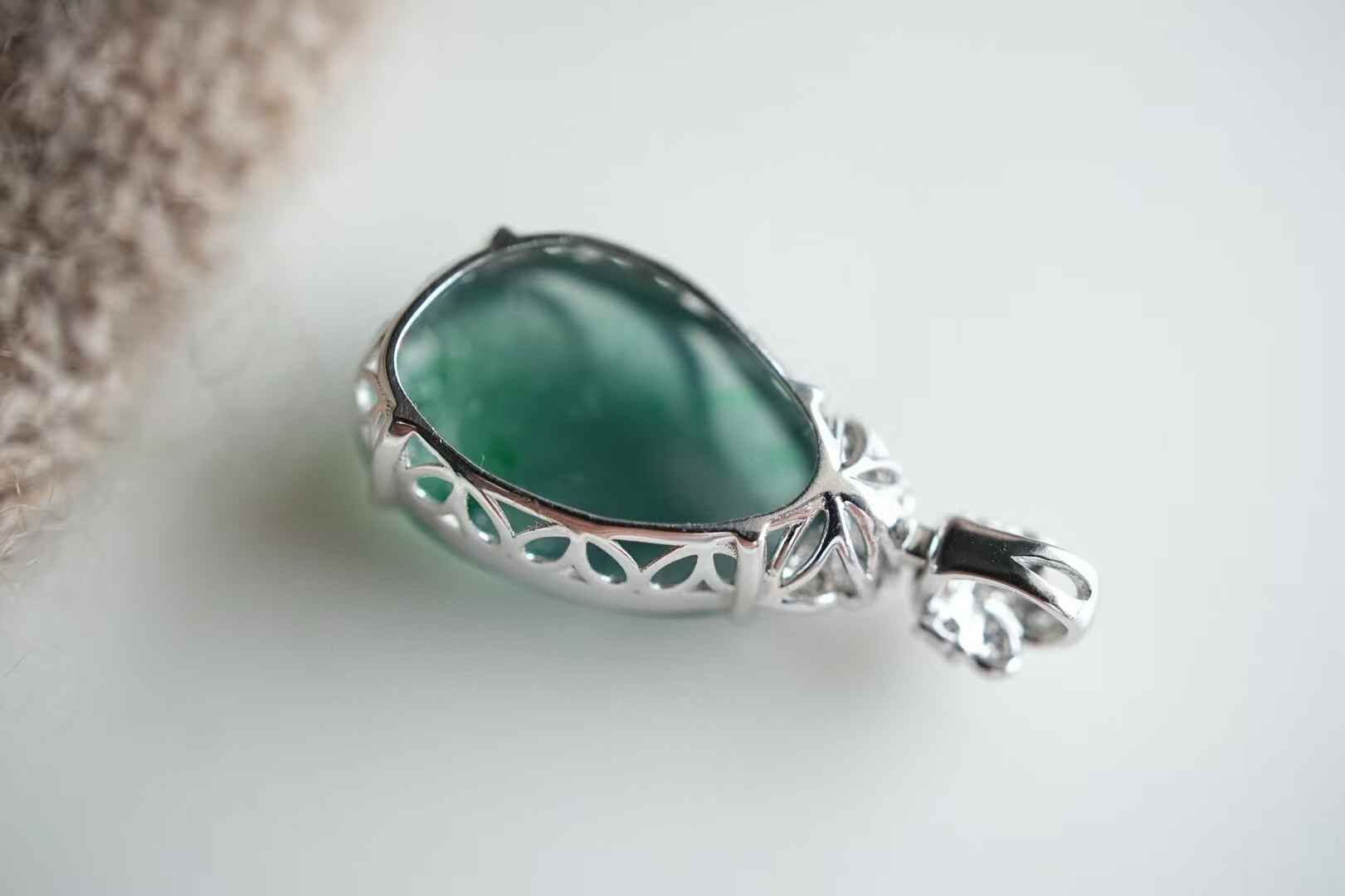 天然翡翠A玉,背面一刀切,實物種水極好,純淨剔透,像清澈的海水,品質很高,瑩光感極強。一抹飄花非常有靈氣,淡雅靜謐,太美了!