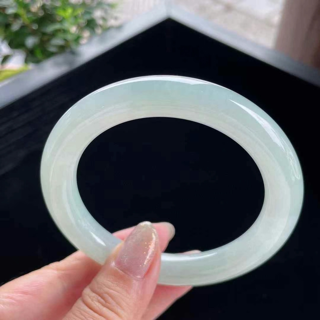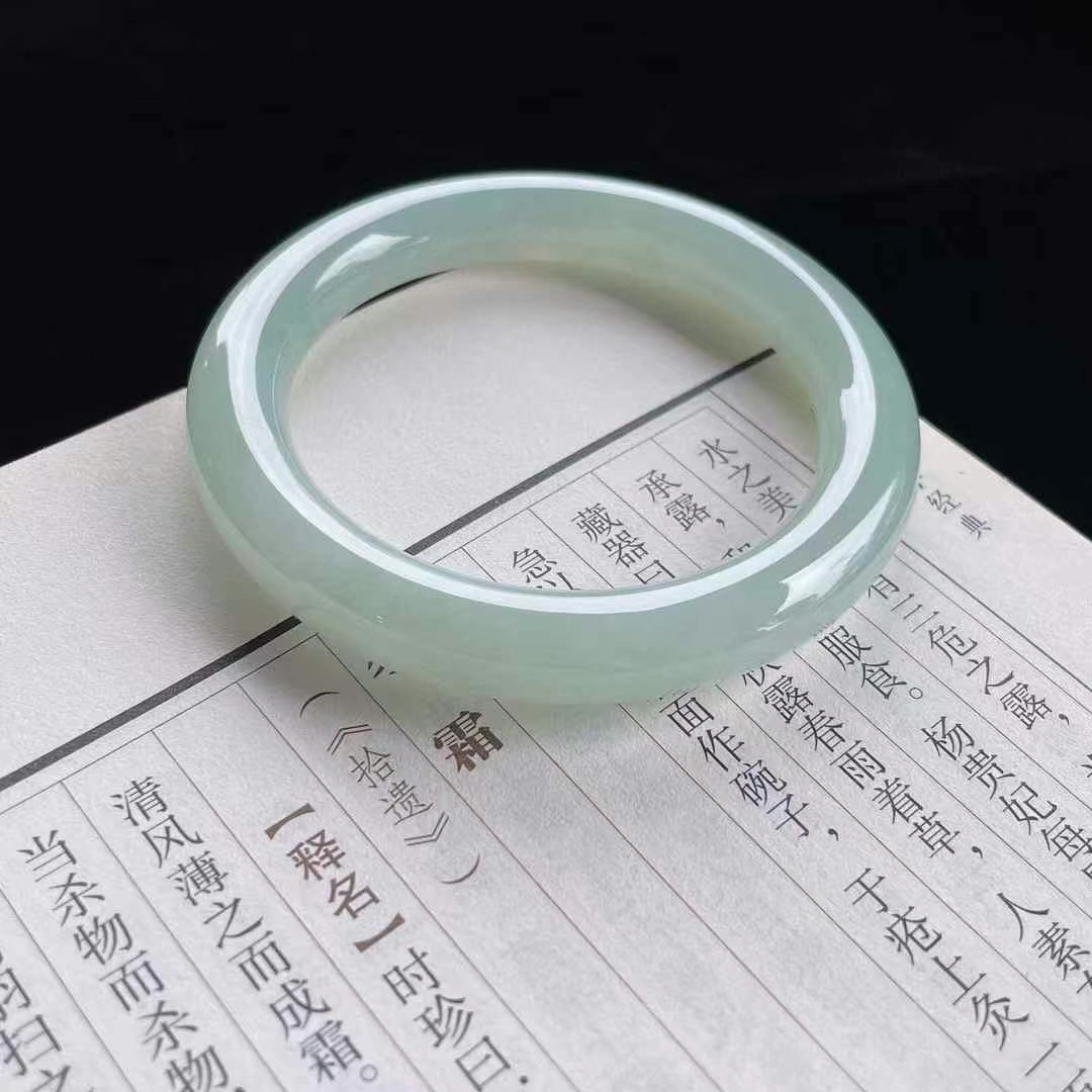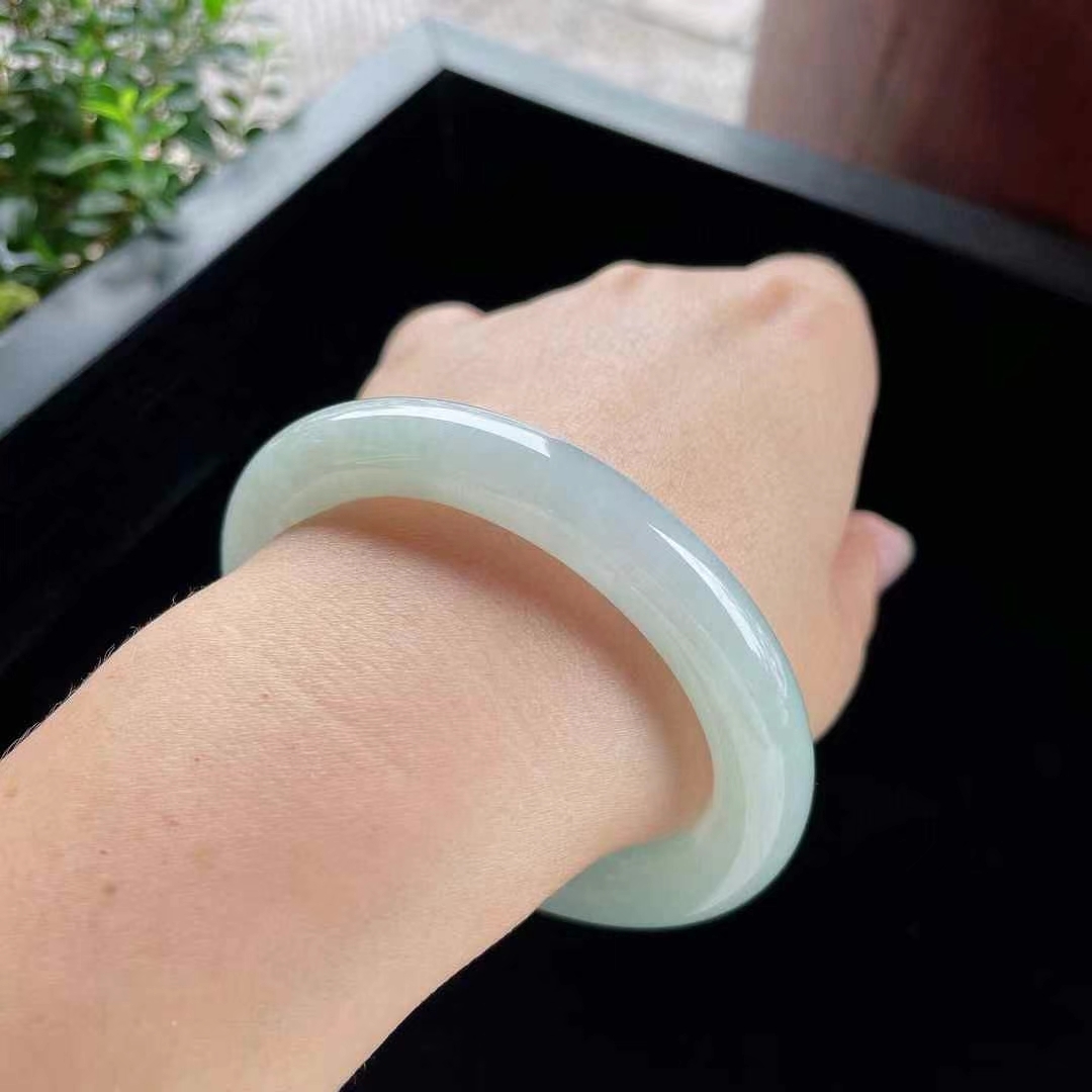 • 冰糯晴水翡翠圓條手鐲,天然翡翠A玉, 緬甸玉, Jade, Jadeite