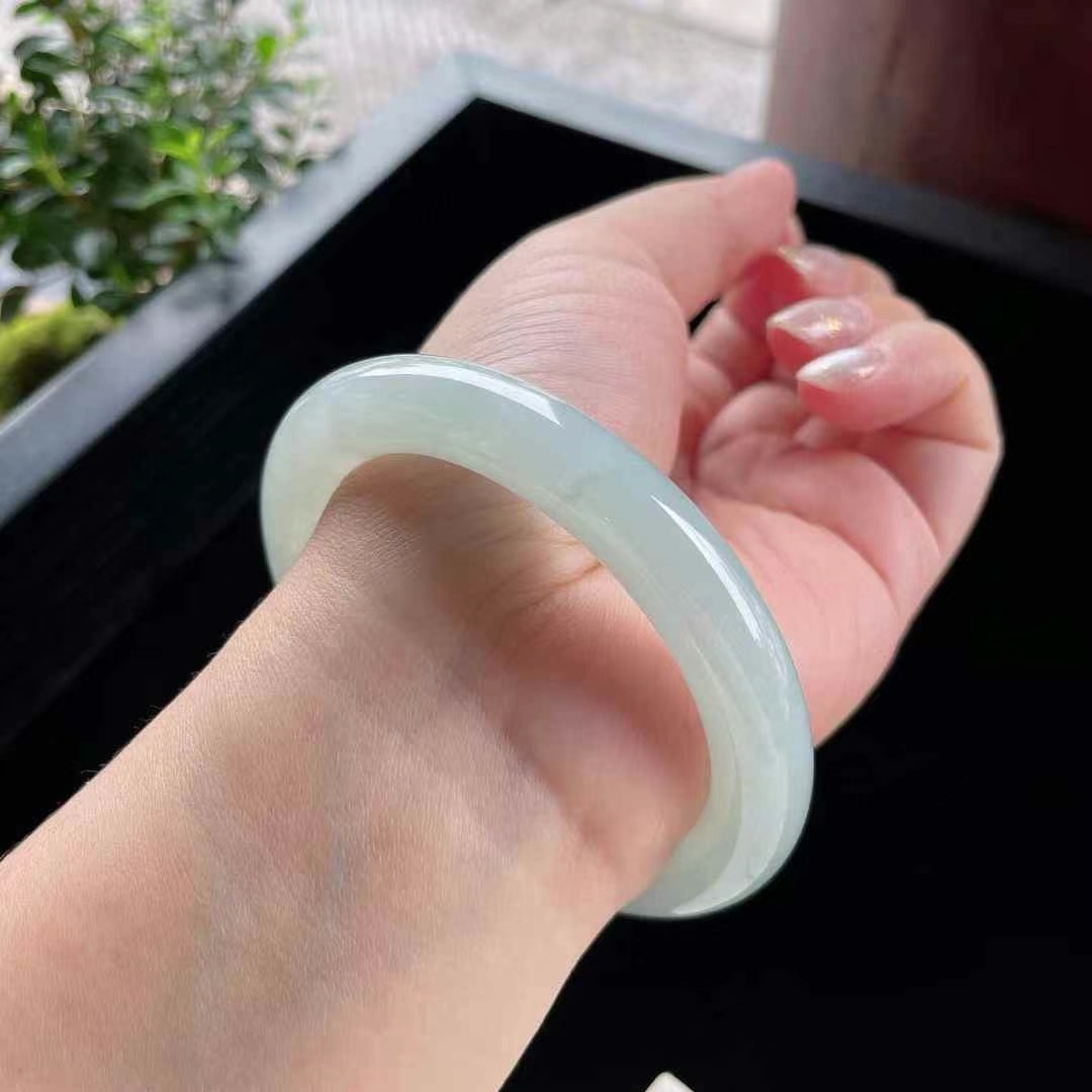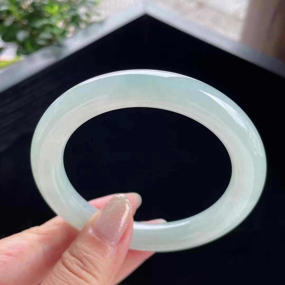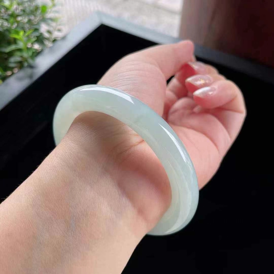 • 冰糯晴水翡翠圓條手鐲,天然翡翠A玉, 緬甸玉, Jade, Jadeite