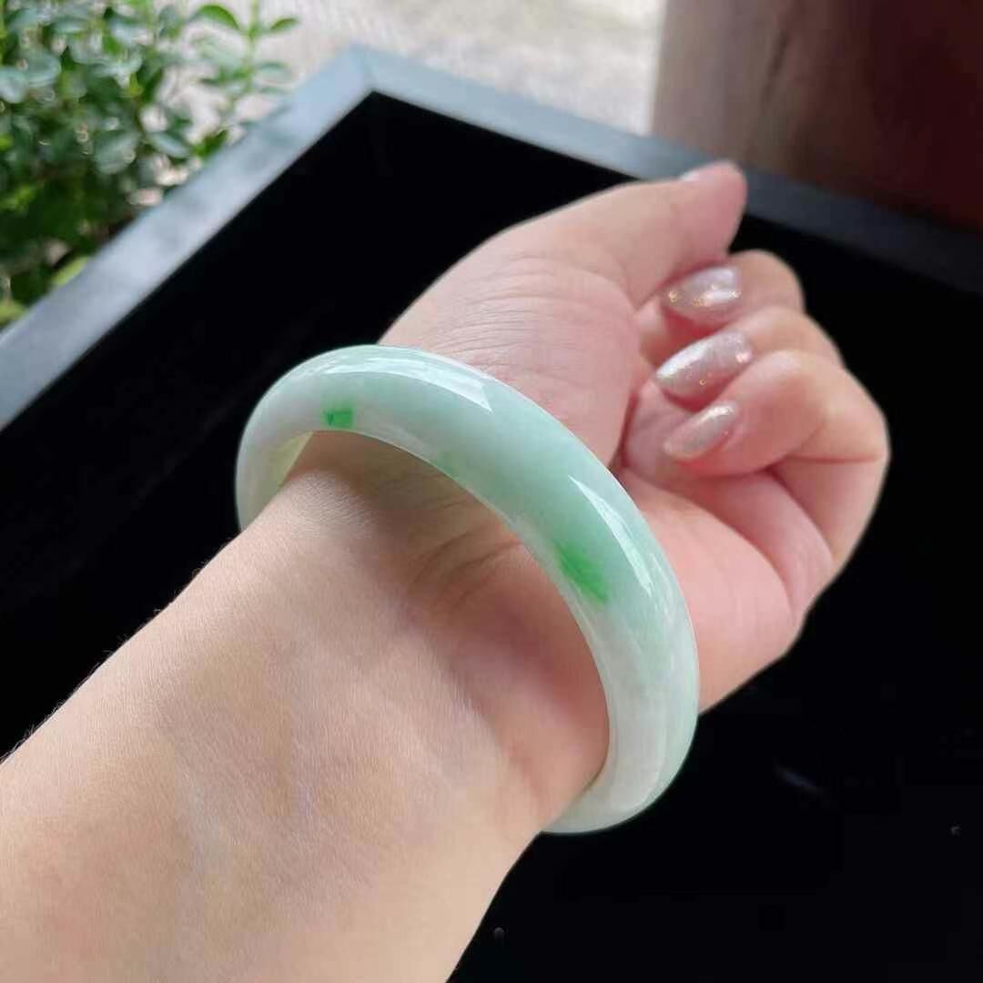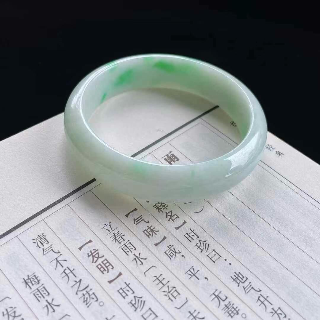 • 細糯飄綠翡翠手鐲,天然翡翠A玉, 緬甸玉, Jade, Jadeite