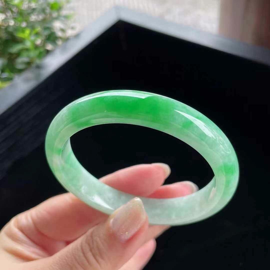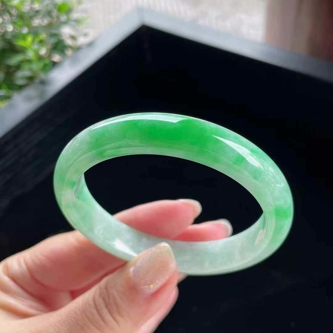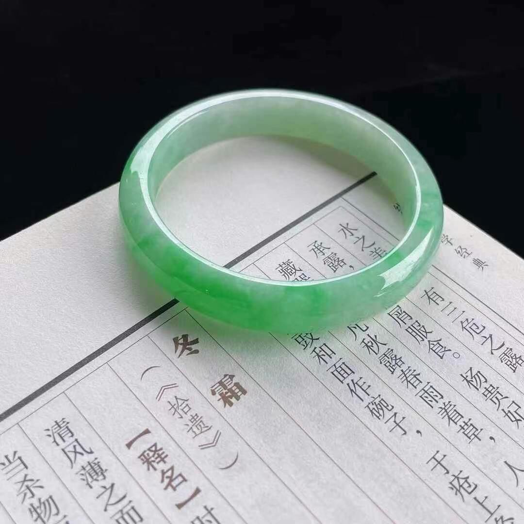 • 糯種陽綠翡翠手鐲,天然翡翠A玉, 緬甸玉, Jade, Jadeite