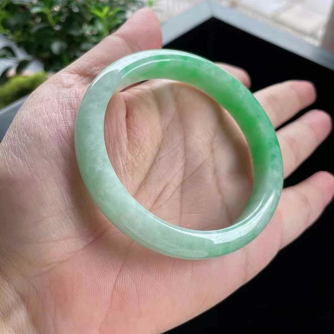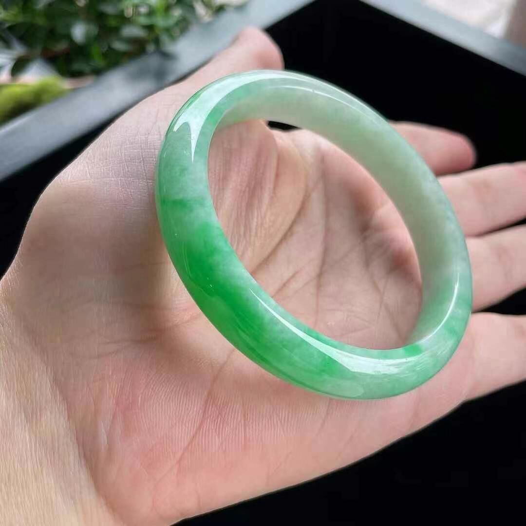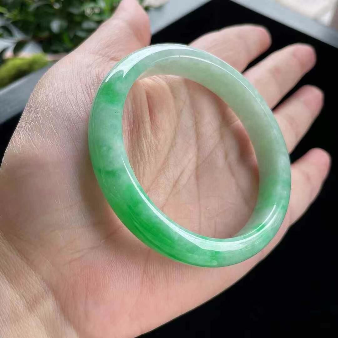 529962 53.5mm糯種陽綠翡翠手鐲 (52-54)