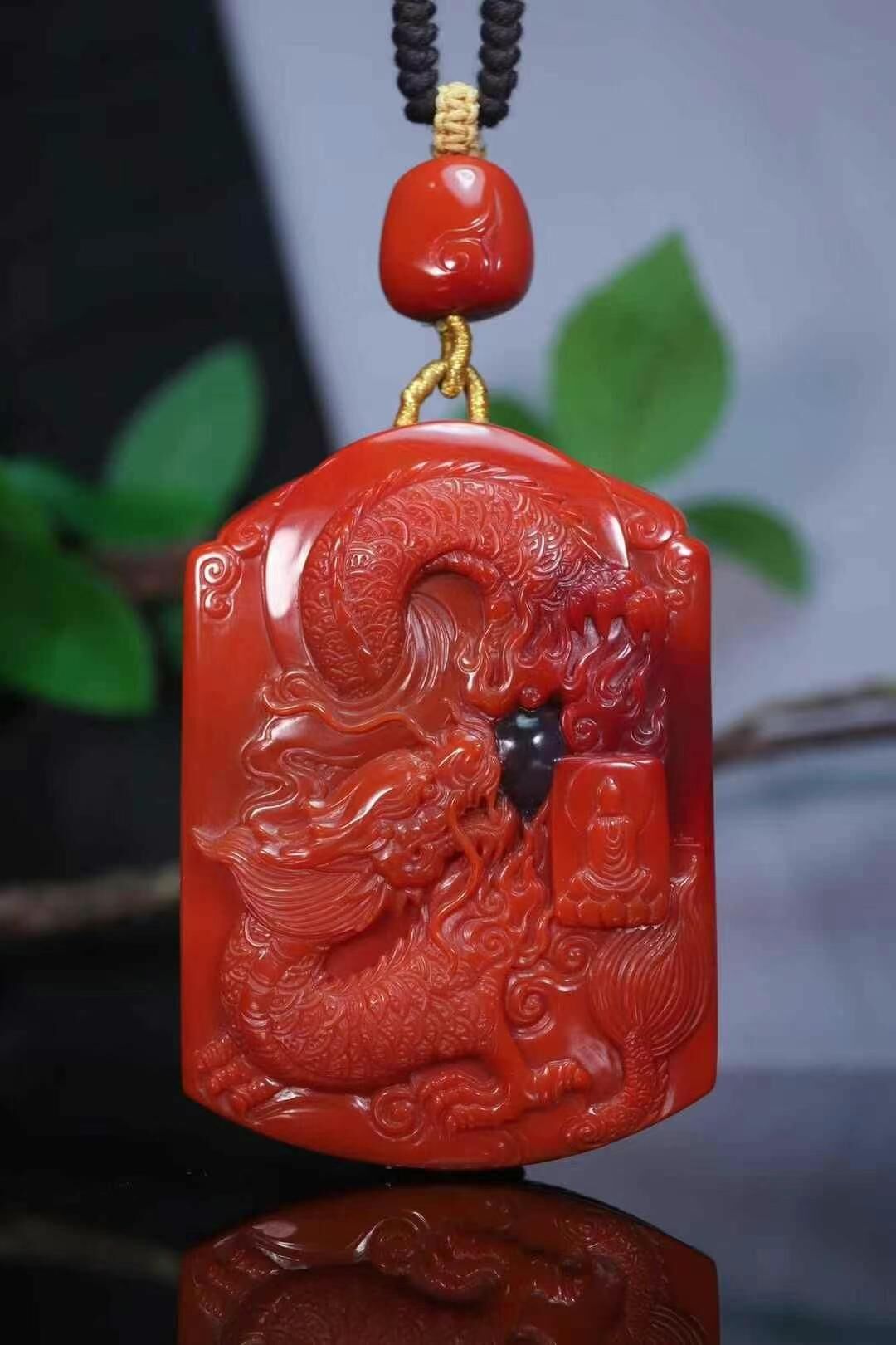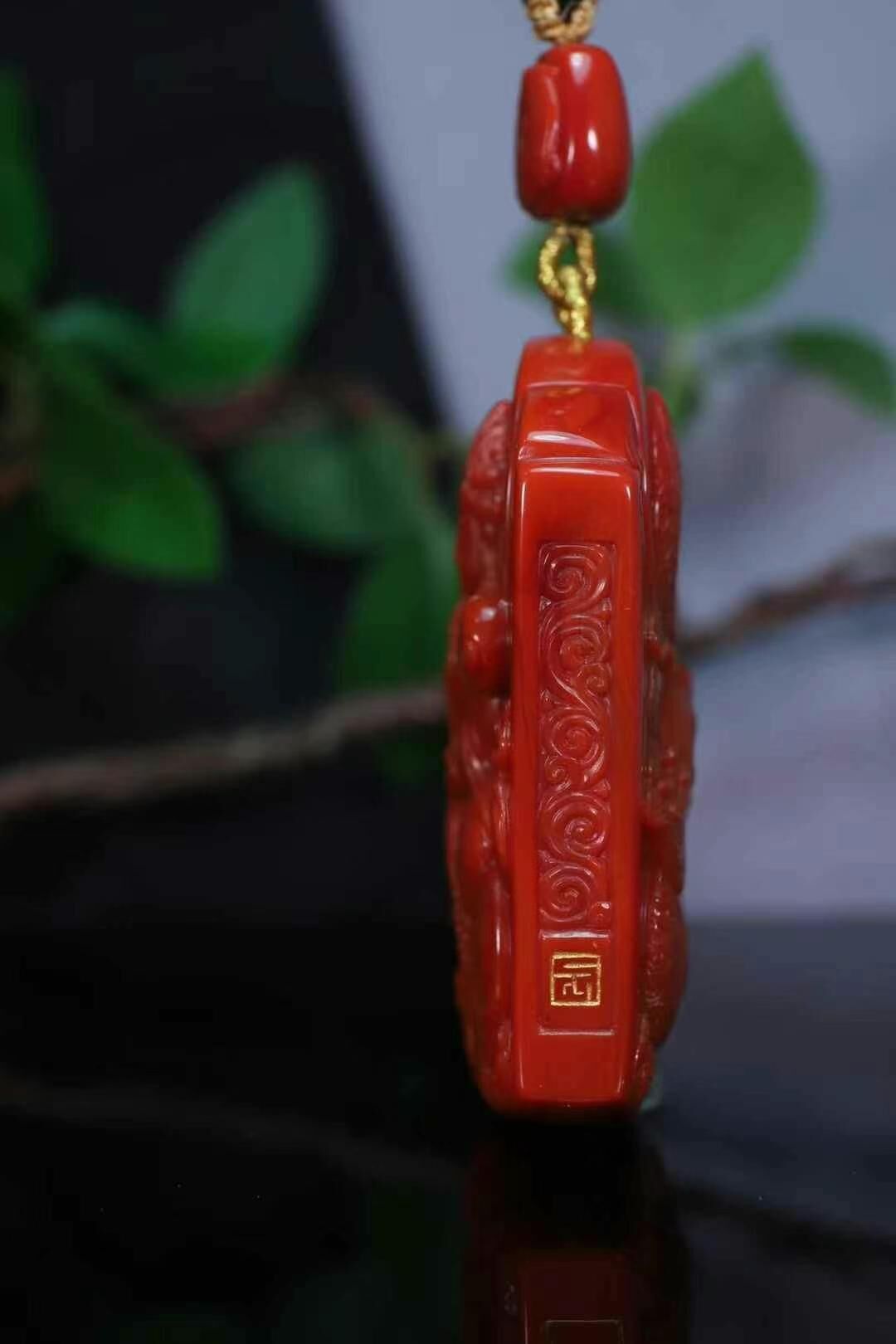 天然南紅瑪瑙,老坑老料子,顏色極度紅潤。全品柿子紅加玫瑰紅,背面凍料俏色龍珠,高端豪華作品,現階段肉料少有的成色,頂級人物刻畫工藝,名師親工力作。
