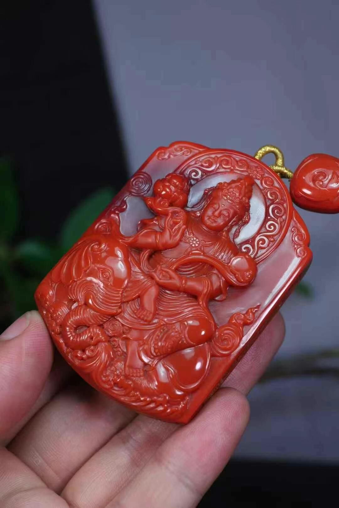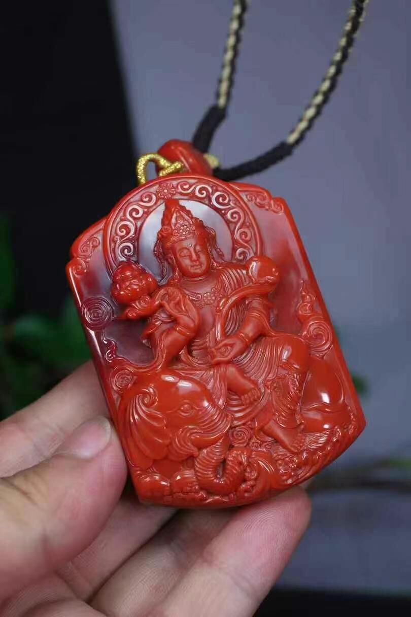 • 南紅普賢菩薩,天然南紅瑪瑙
