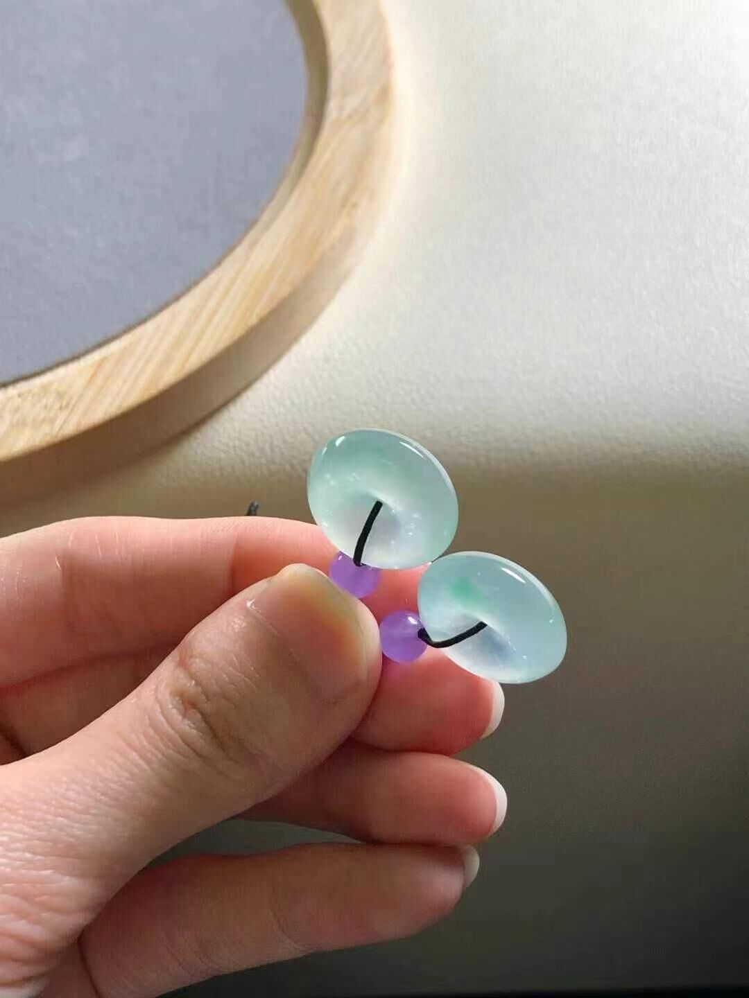 • 翡翠平安扣一對,天然翡翠A玉, 緬甸玉, Jade, Jadeite