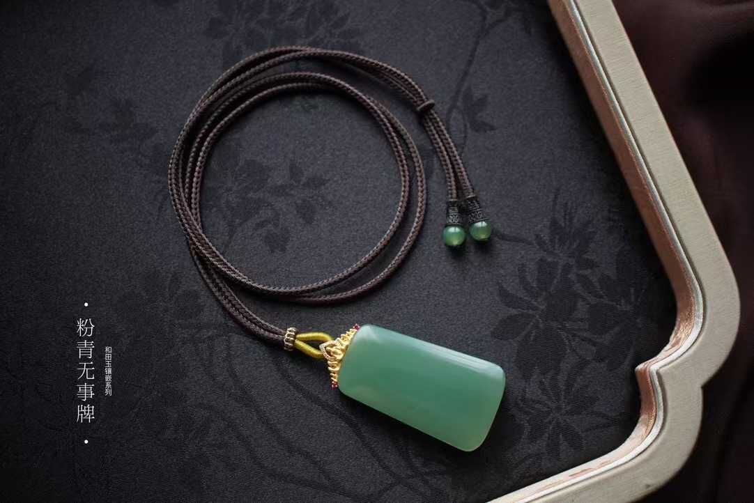 • 和田玉碧玉冰底粉青平安無事牌掛件,天然和田玉軟玉