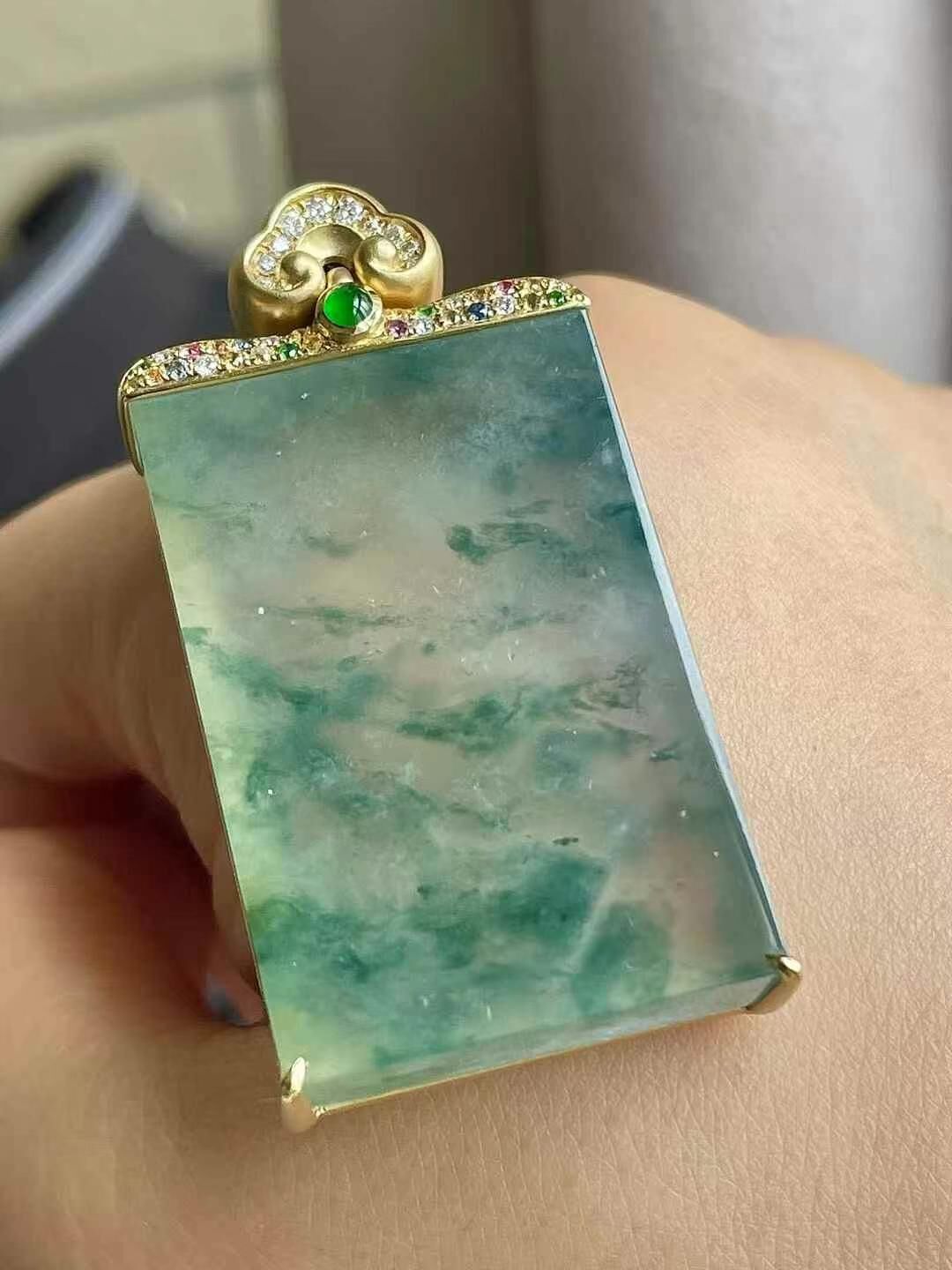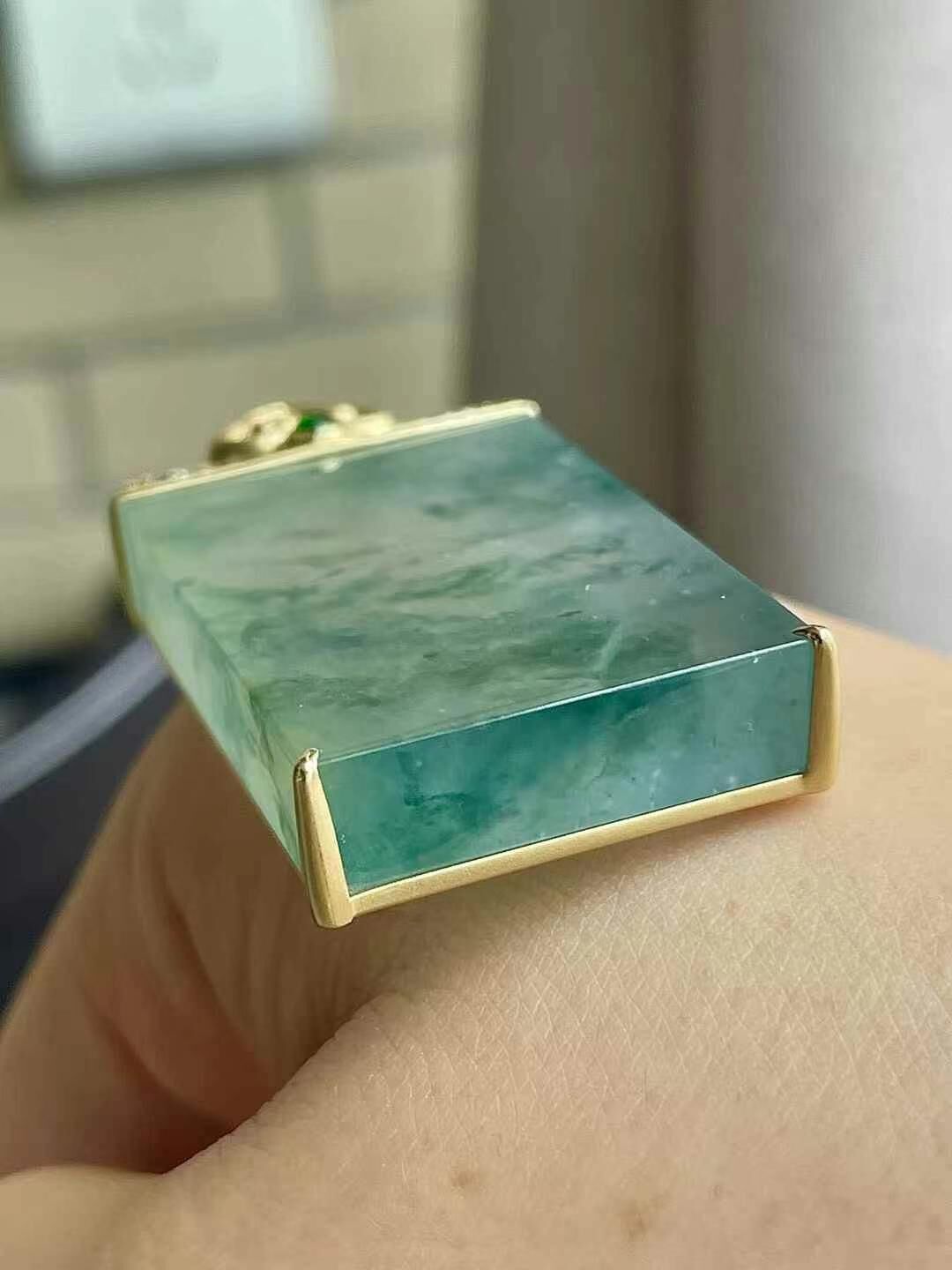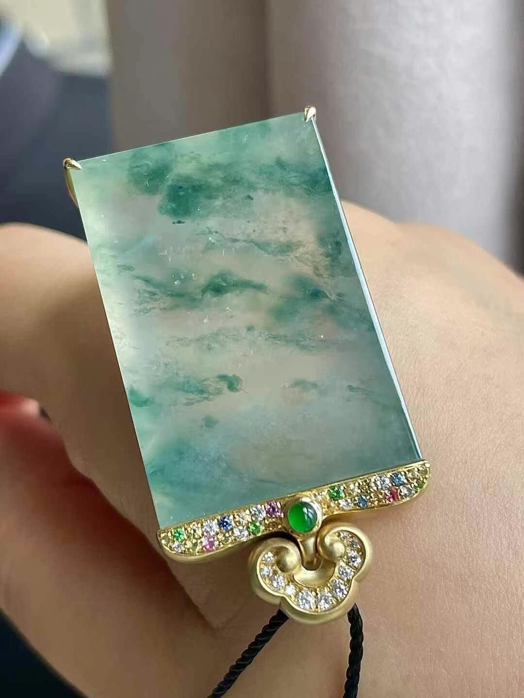 • 翡翠高冰飄花無事牌吊墜,天然翡翠A玉, 緬甸玉, Jade, Jadeite