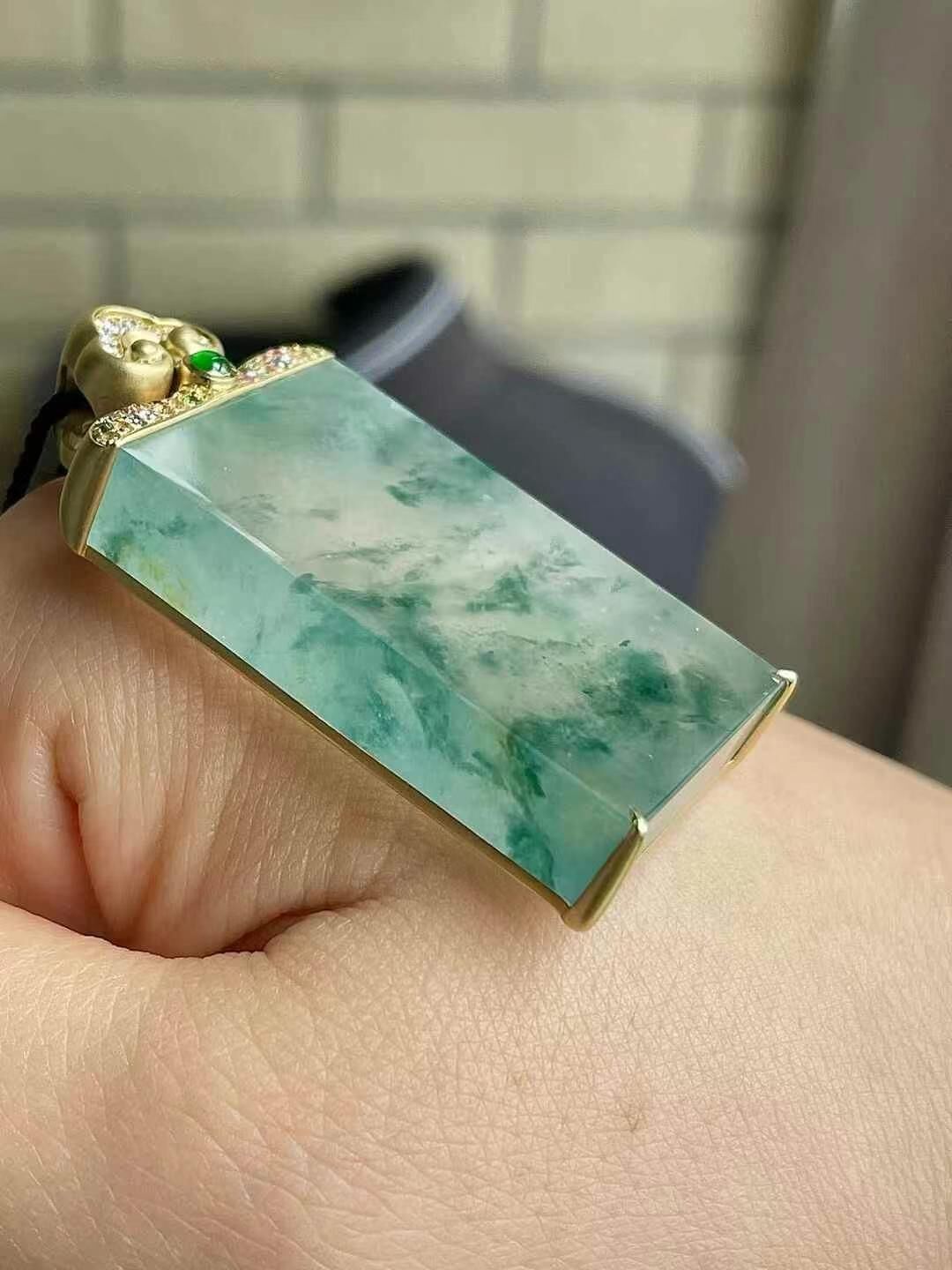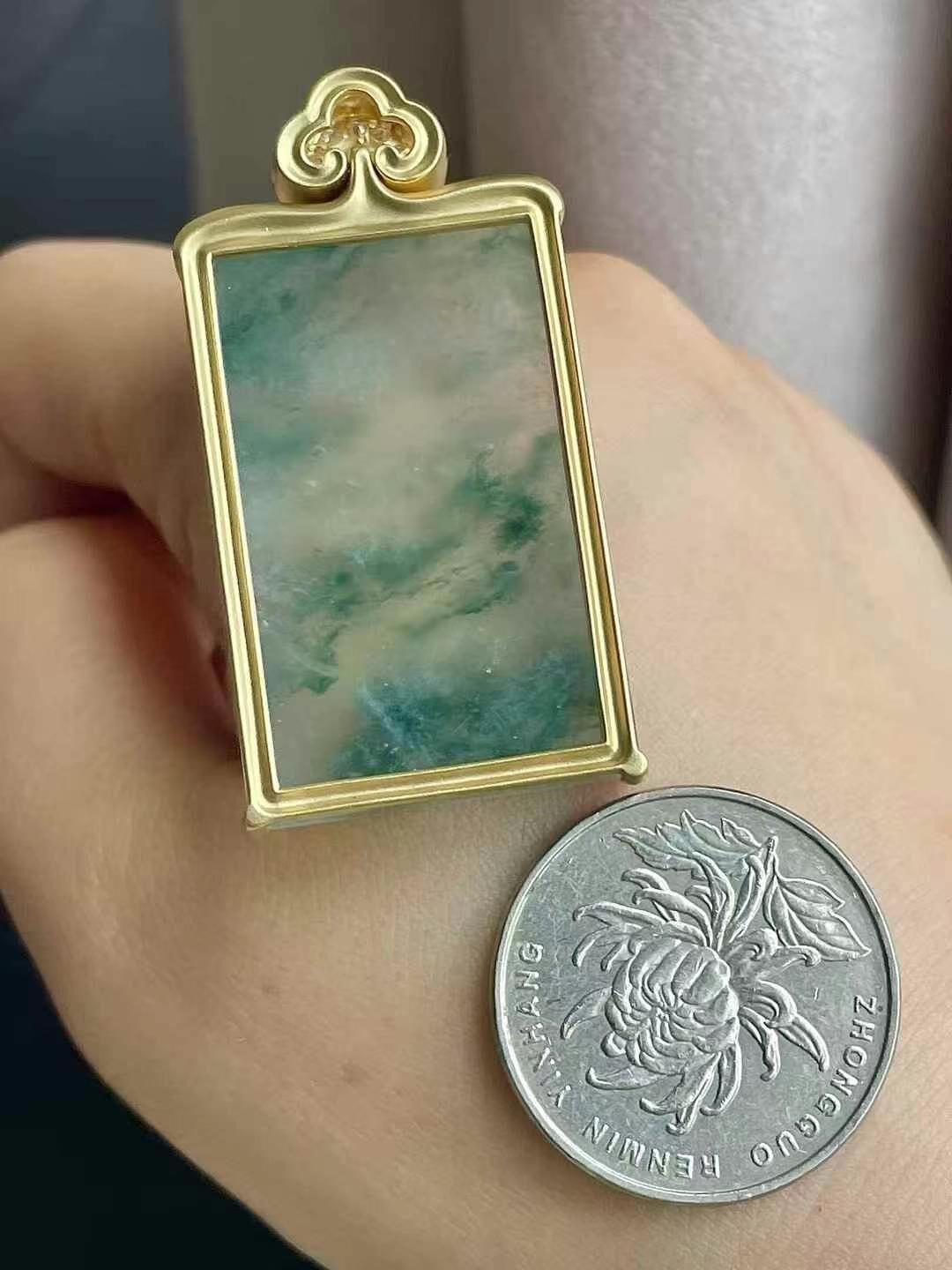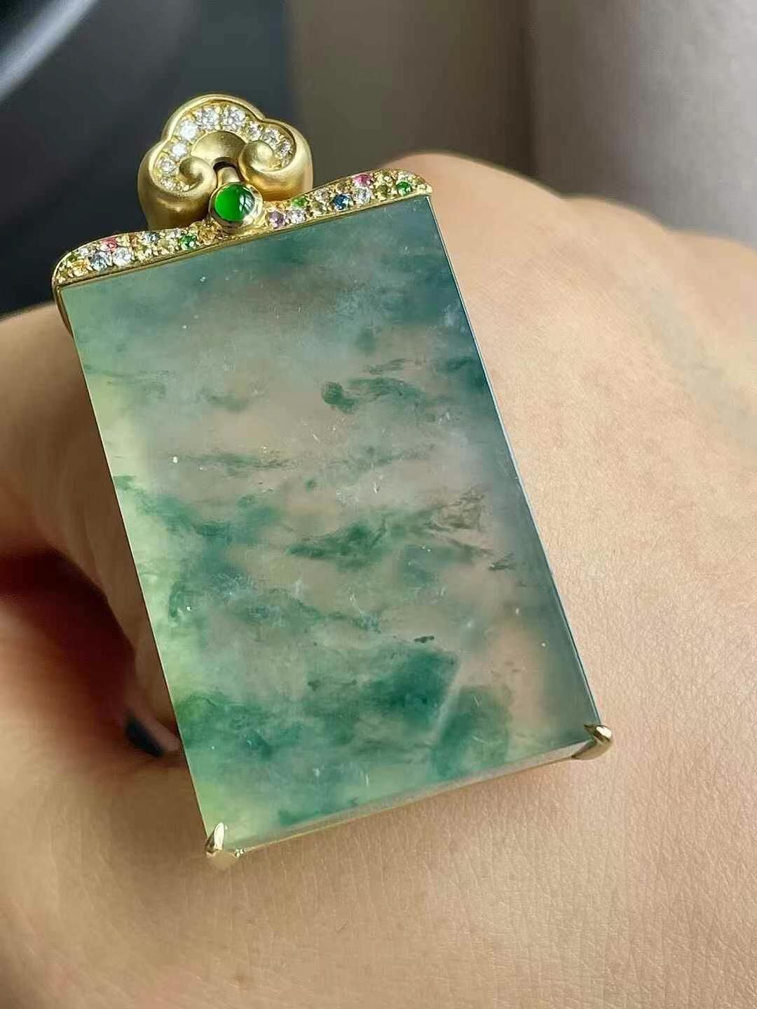 • 翡翠高冰飄花無事牌吊墜,天然翡翠A玉, 緬甸玉, Jade, Jadeite