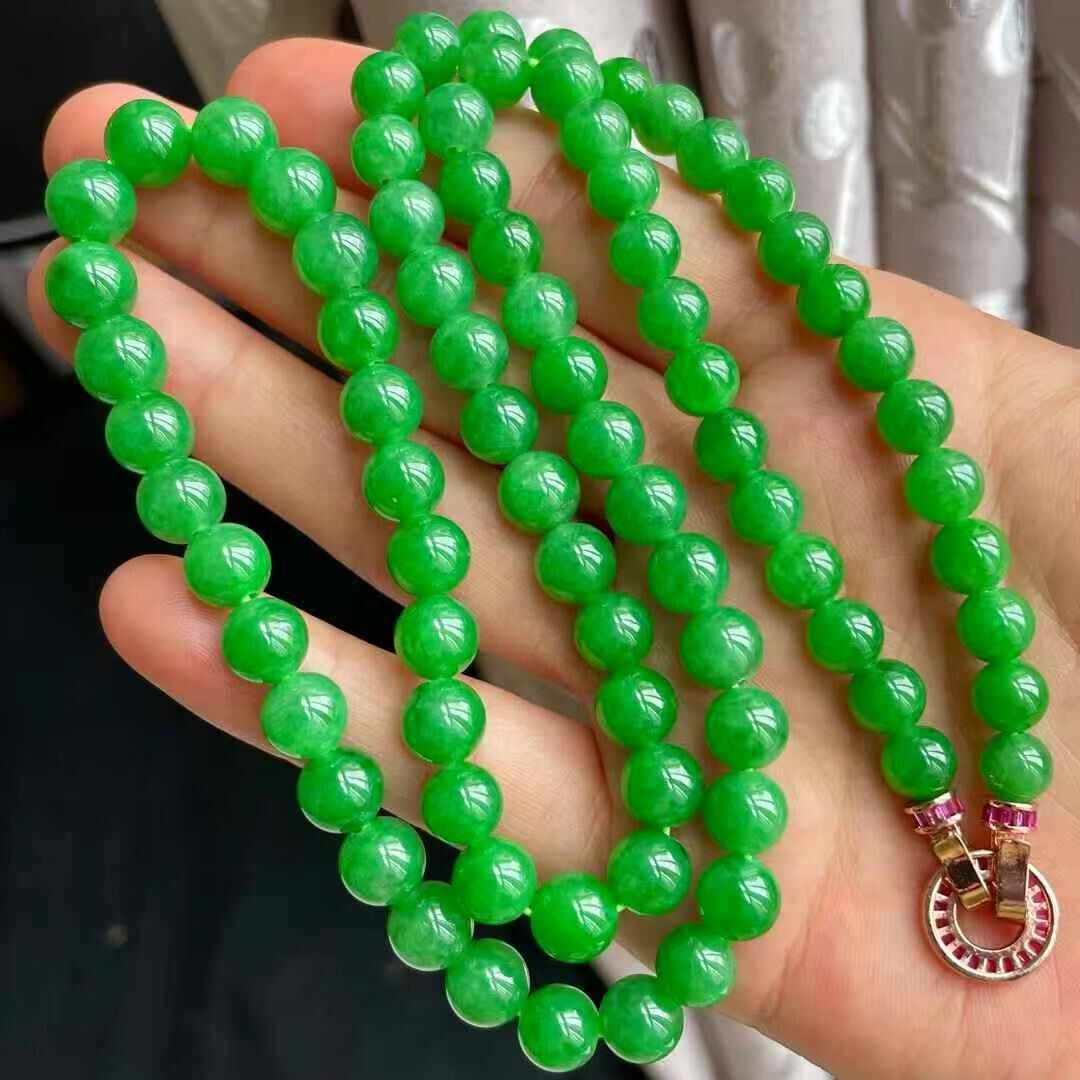 595571 翡翠冰種陽綠珠鏈 (6.1-8.1mm直徑)