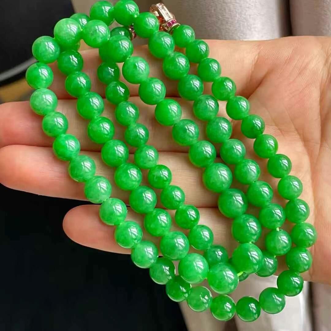 • 翡翠冰種陽綠珠鏈 (6.1-8.1mm直徑),天然翡翠A玉, 緬甸玉, Jade, Jadeite