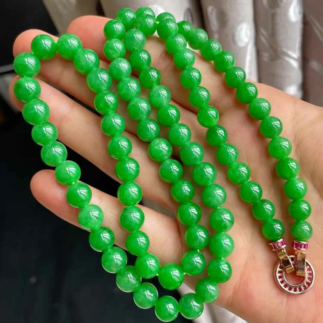 595571 翡翠冰種陽綠珠鏈