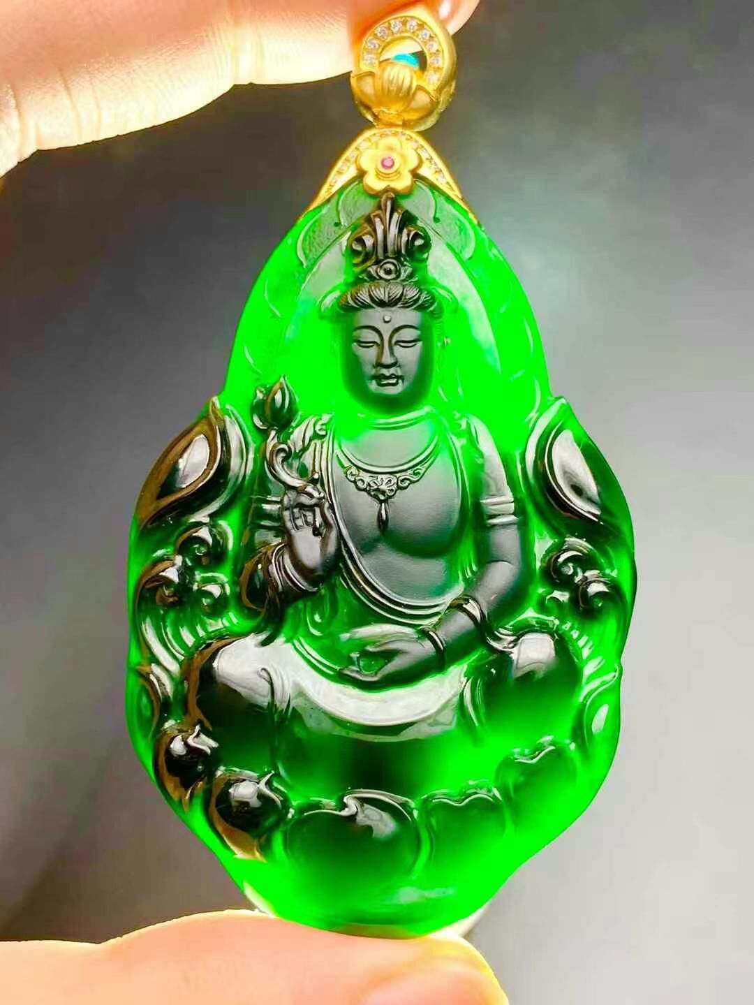 天然翡翠A玉,燈照透綠,雕工精美,完美無紋裂滿滿一整件起冰起膠罕見品質