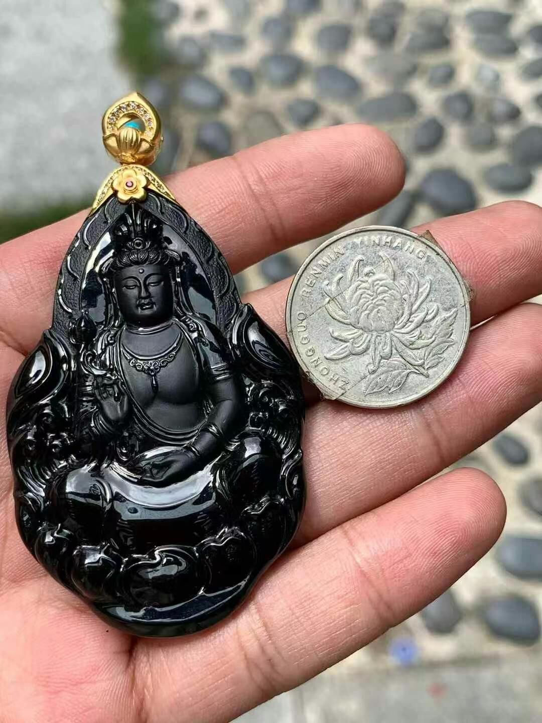 • 翡翠墨翠正裝觀音,天然翡翠A玉, 緬甸玉, Jade, Jadeite