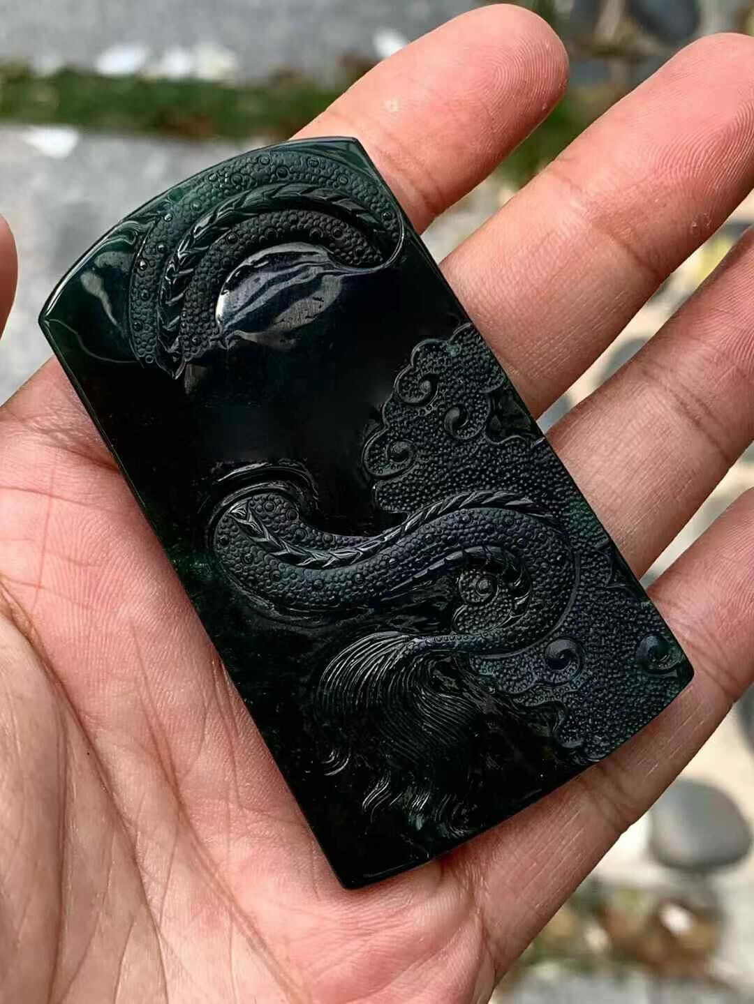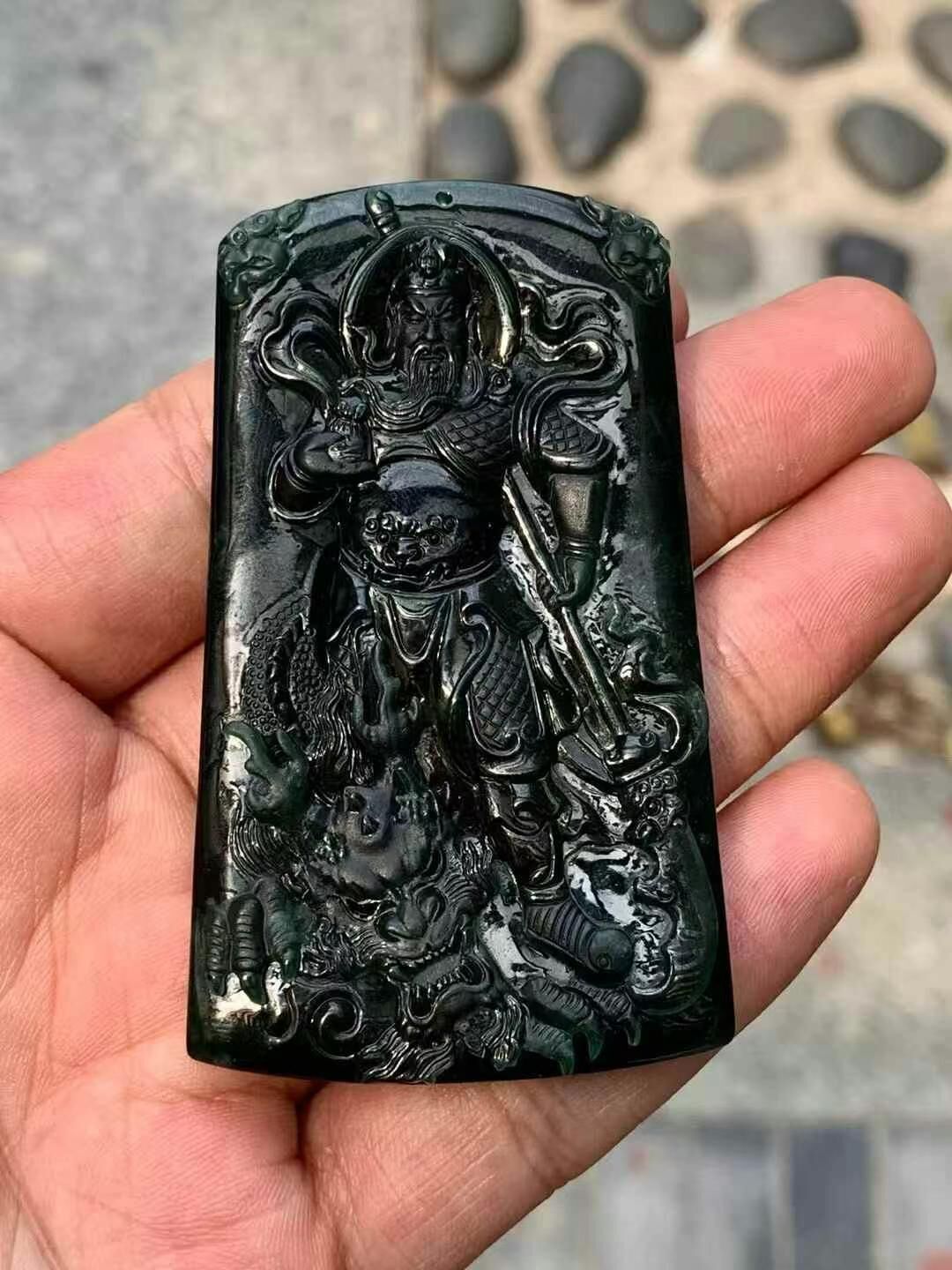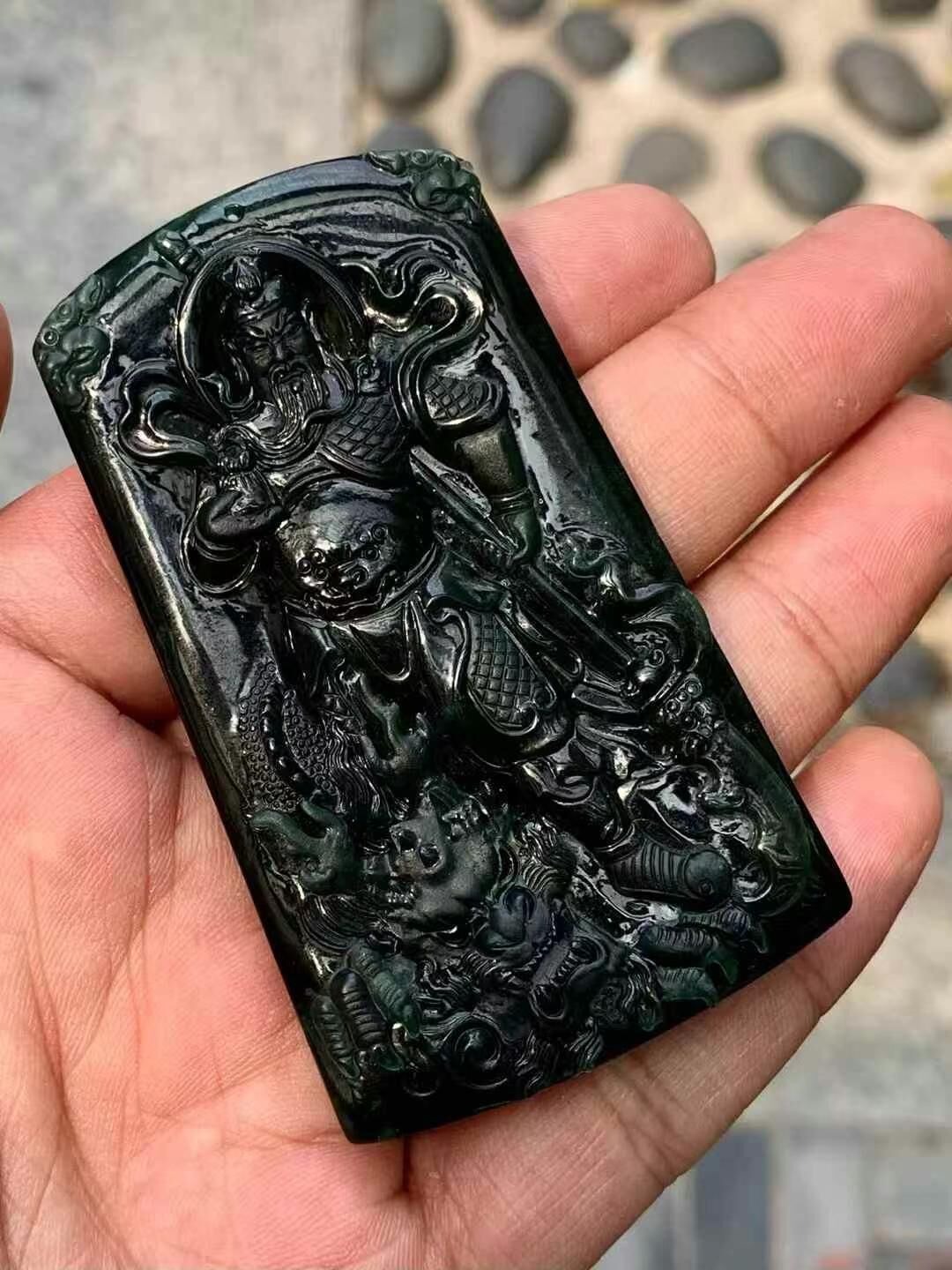 • 翡翠墨翠騎龍關公,天然翡翠A玉, 緬甸玉, Jade, Jadeite