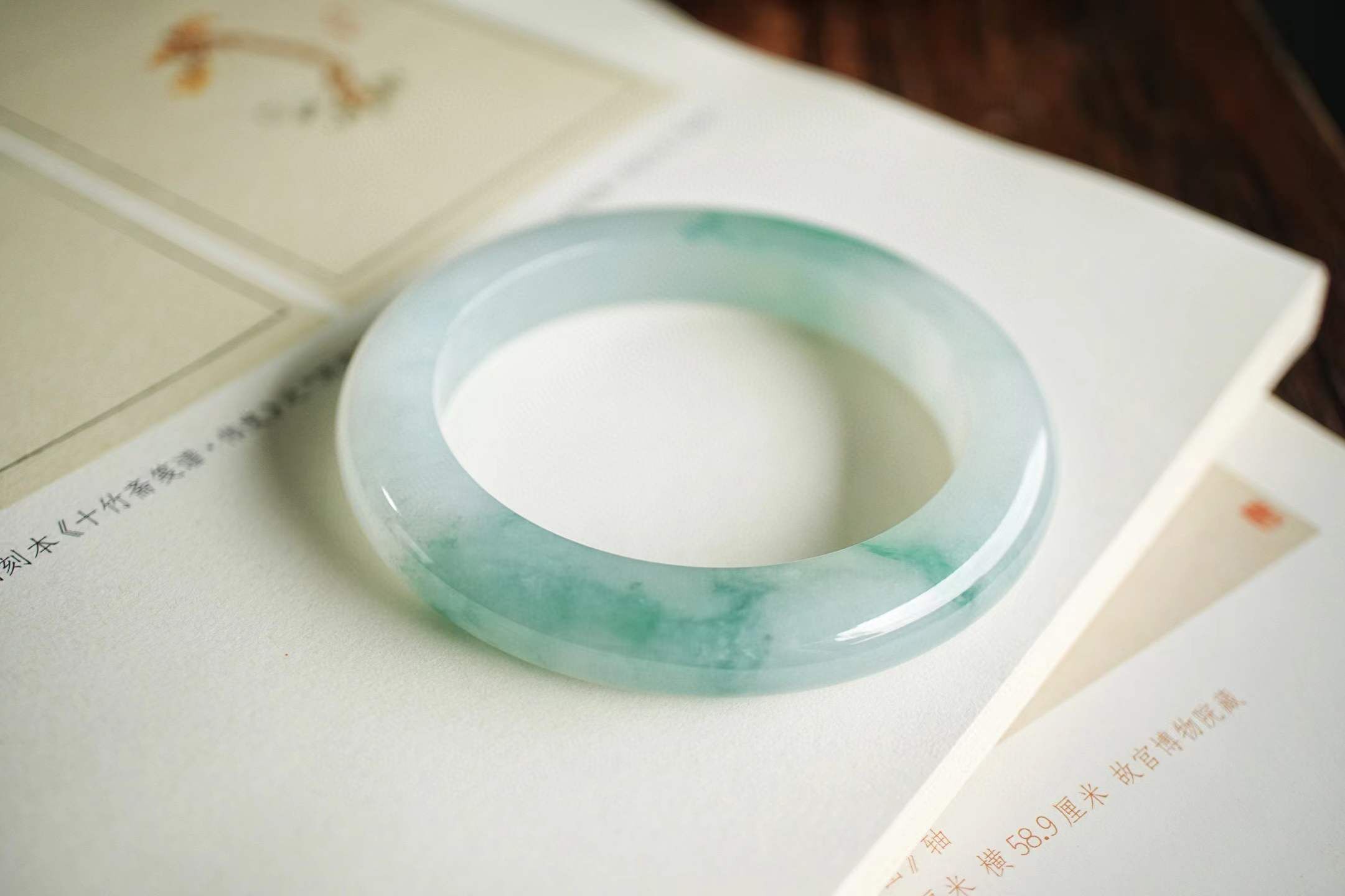 • 高冰飄花翡翠正圈手鐲,天然翡翠A玉, 緬甸玉, Jade, Jadeite