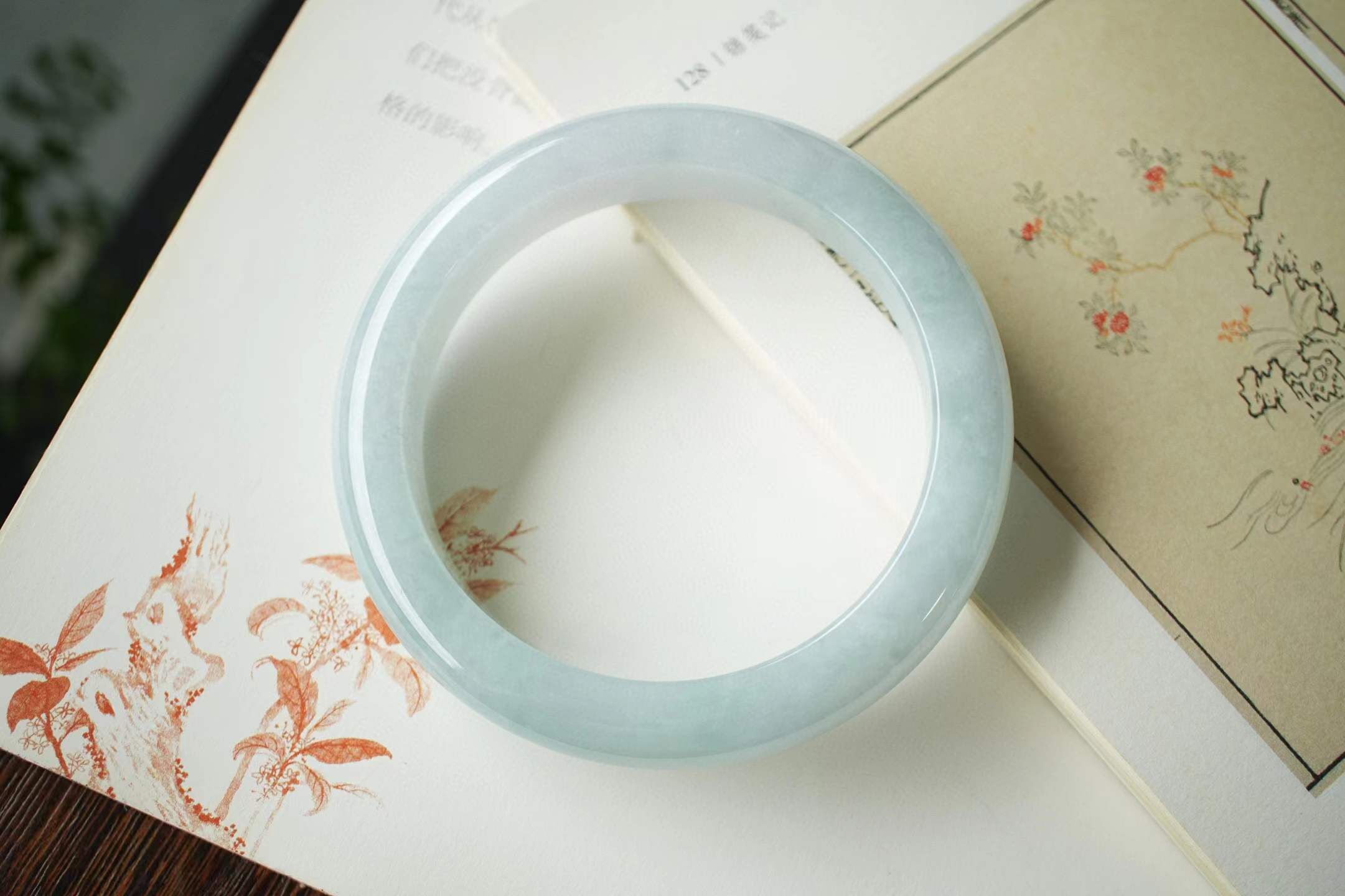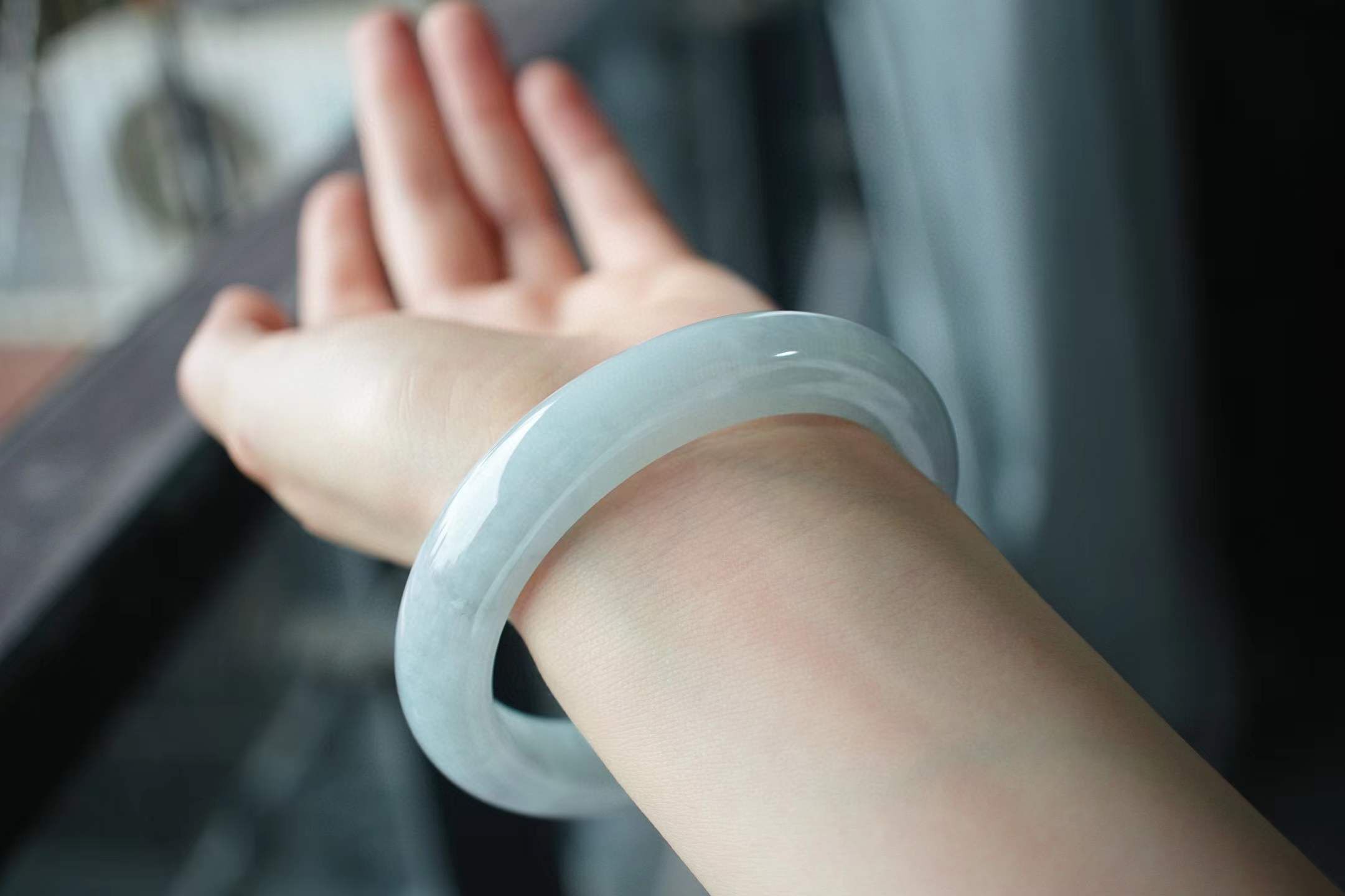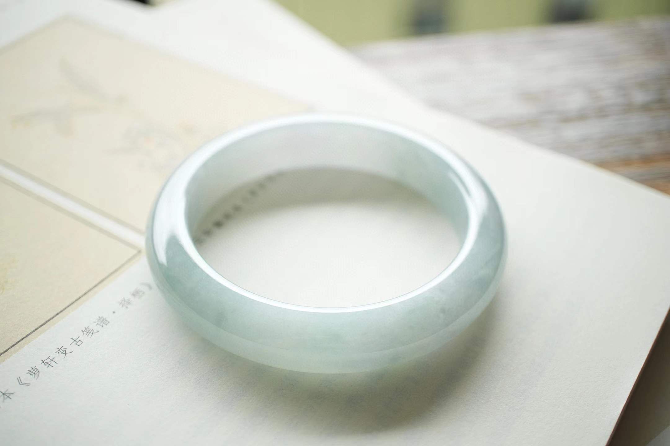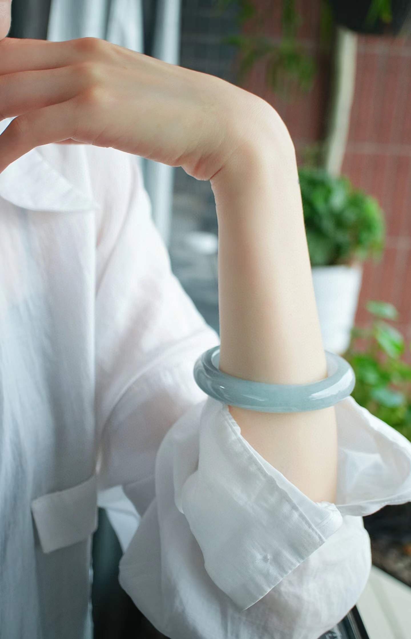 天然翡翠A玉,難得大圈口60、61的朋友都可以戴,溫柔冰純的白月光,冰潤細膩,種水佳,純粹的美。佩戴時尚簡單,也有東方古典之美。