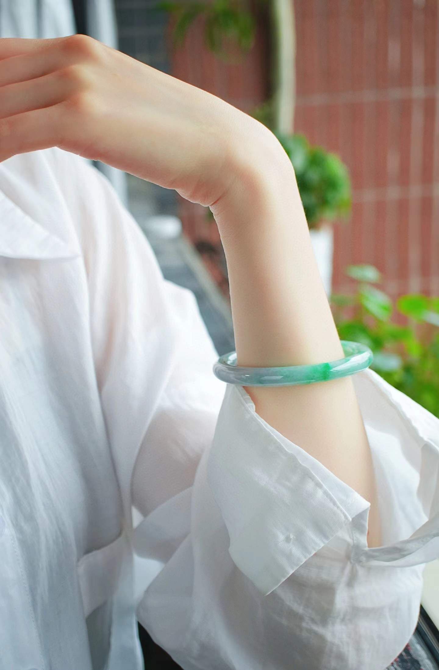 圓條57黃金圈口,58-59都可以戴。天然翡翠A玉,緬料老坑種,種老水足,色辣陽綠,底子冰潤細膩。飄一點濃翠,完美品相,性價比絕高!