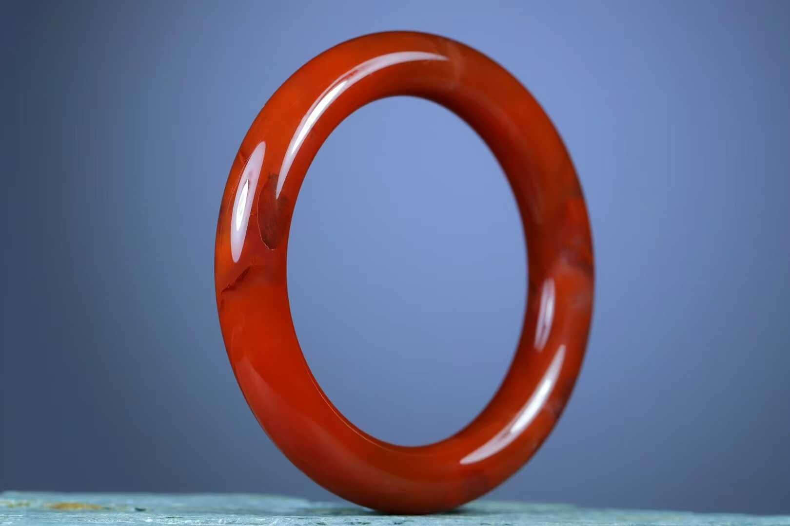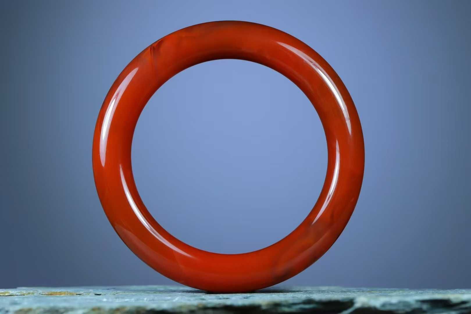 • 南紅圓條玉鐲,天然南紅瑪瑙